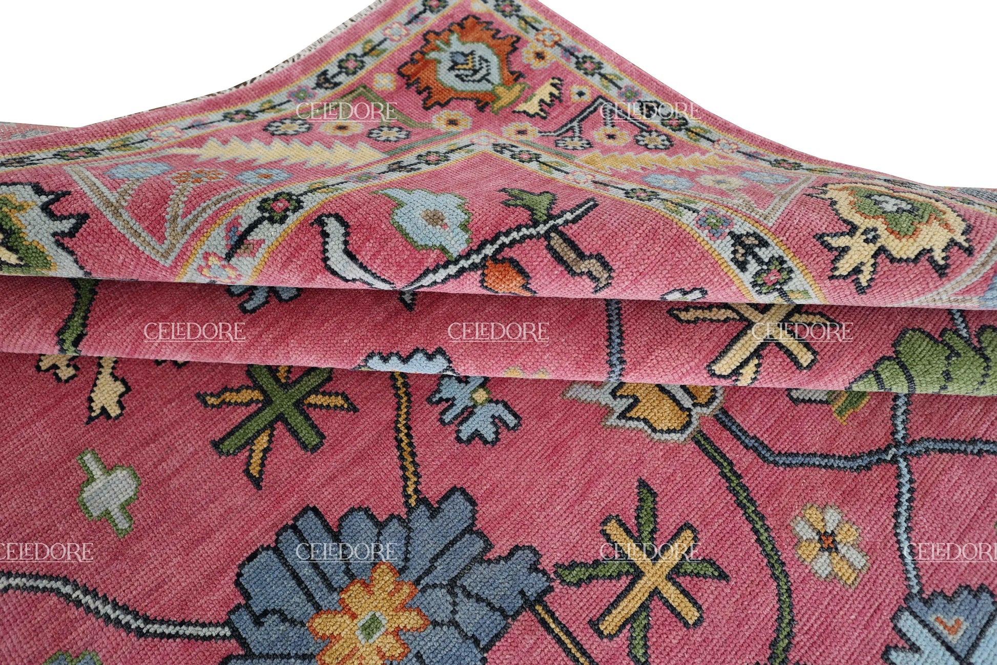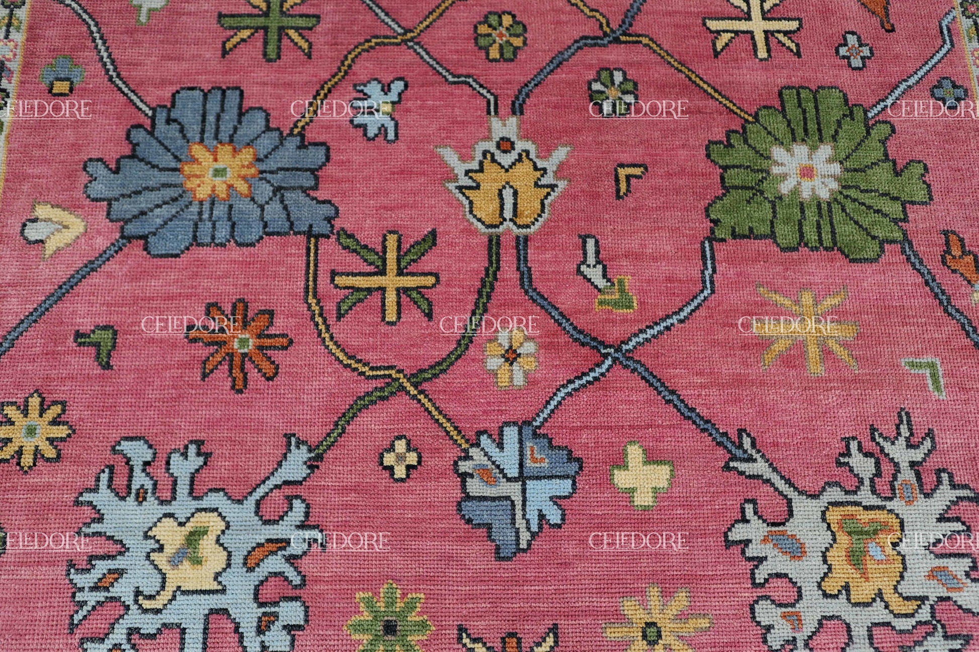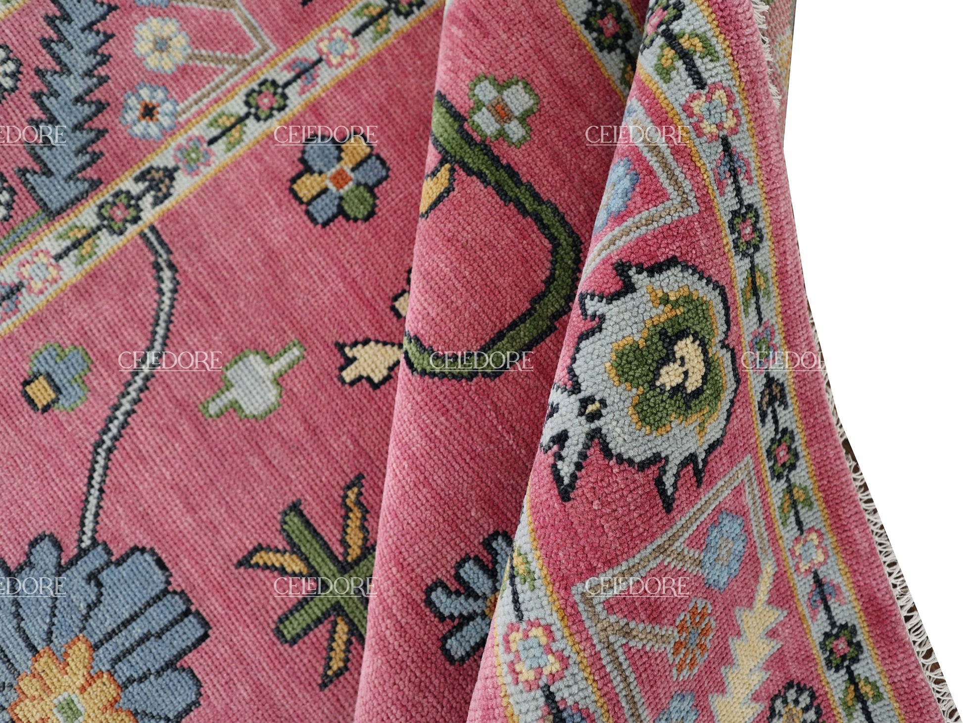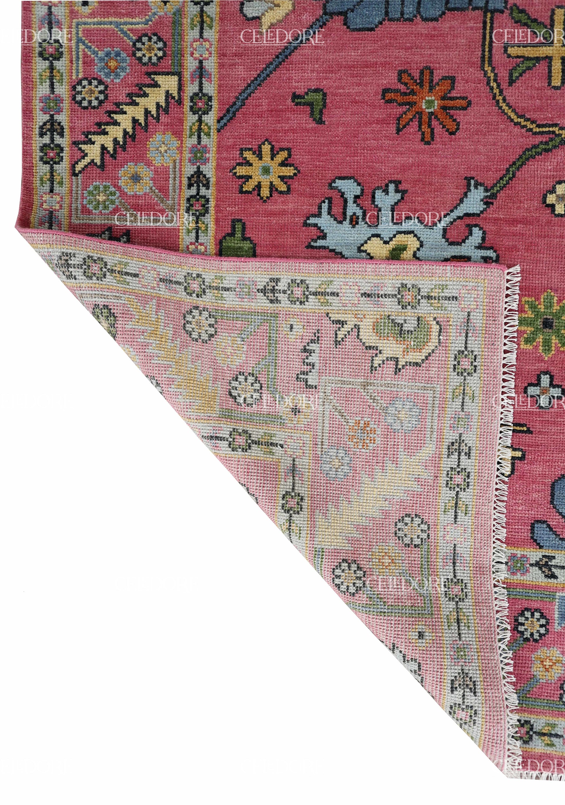 Hand-Knotted Oushak Rug, meticulously crafted with the finest quality wool. This rug embodies the rich tapestry of Indian craftsmanship, blending traditional design with a contemporary twist, reminiscent of the vibrant villages of India.