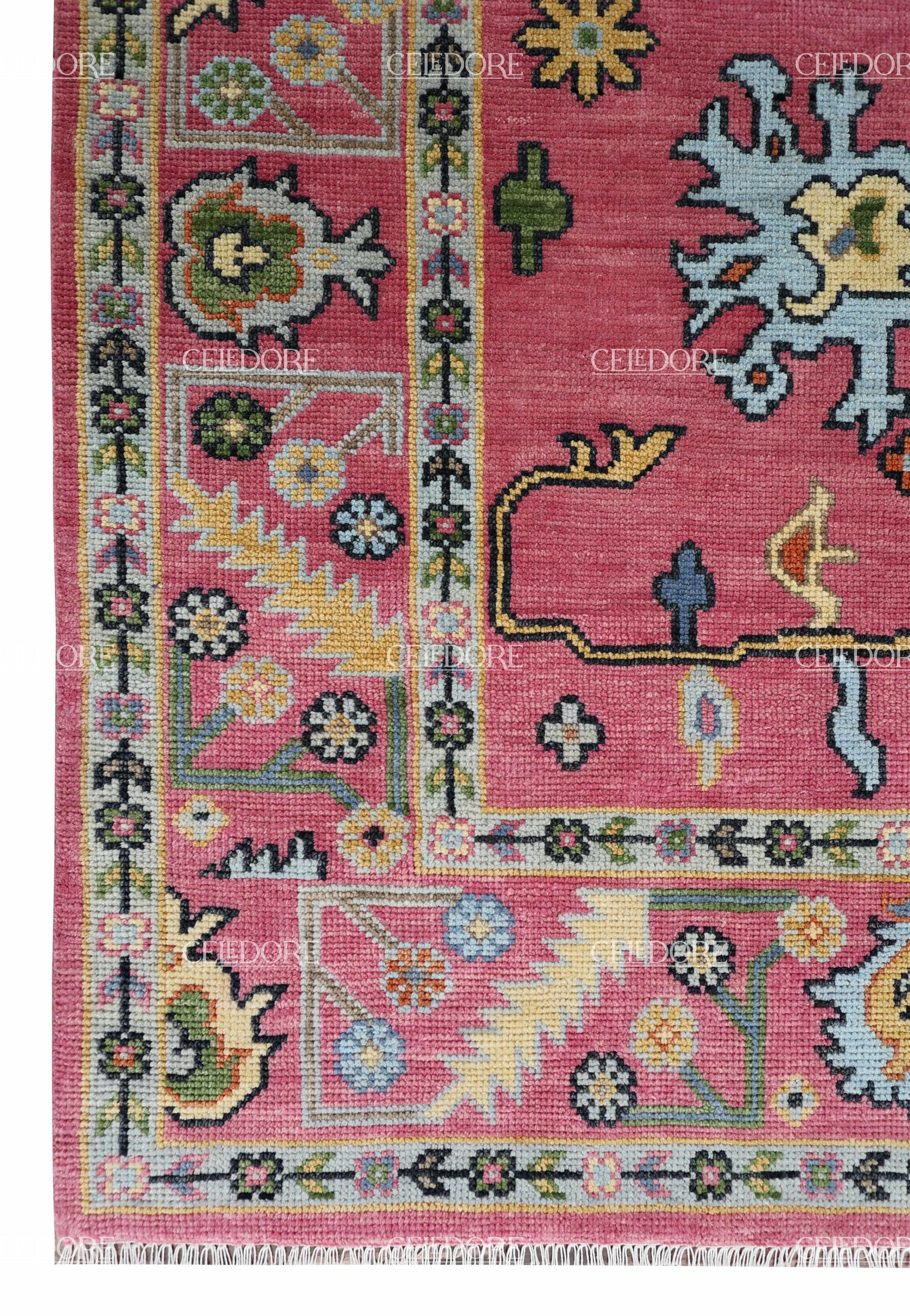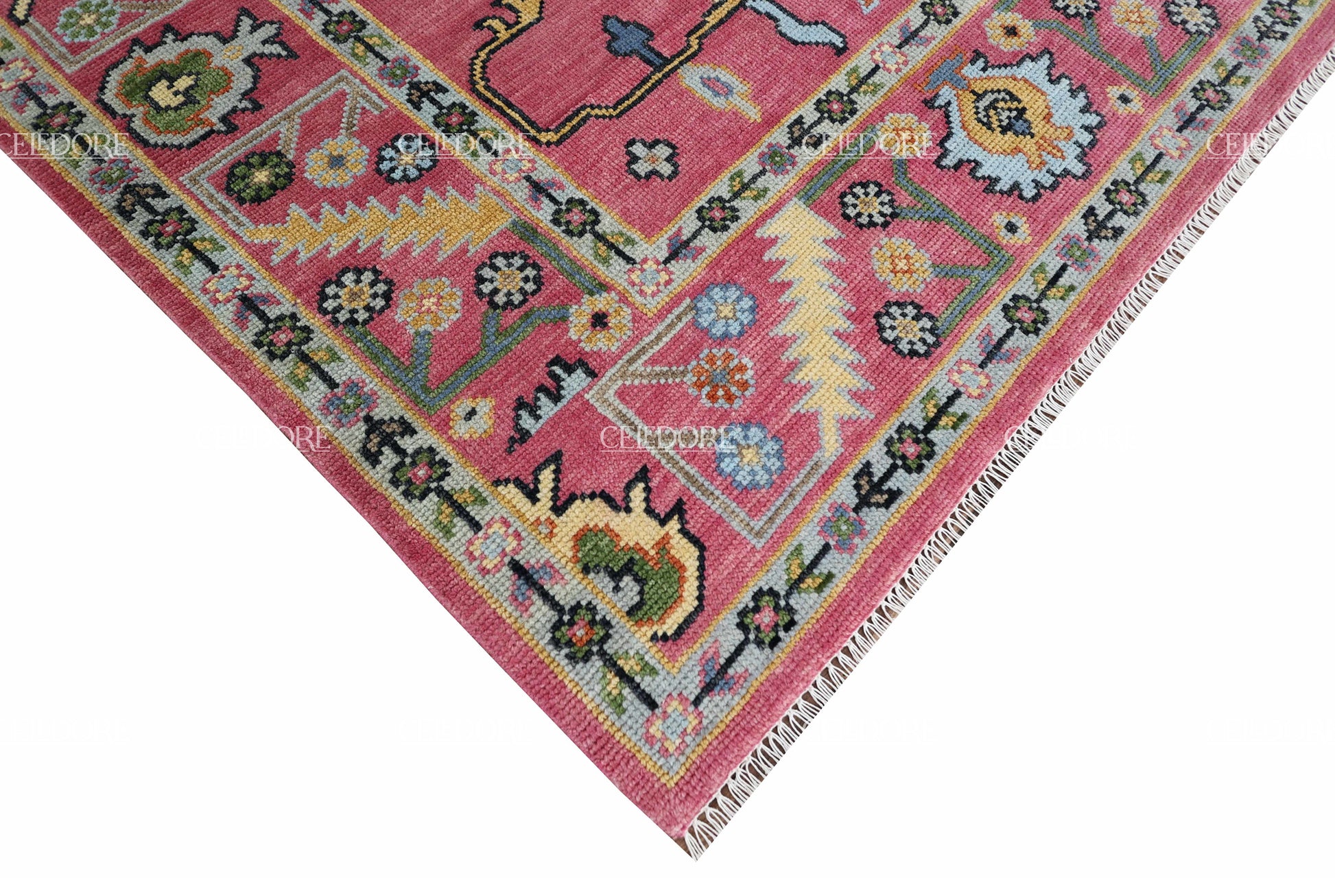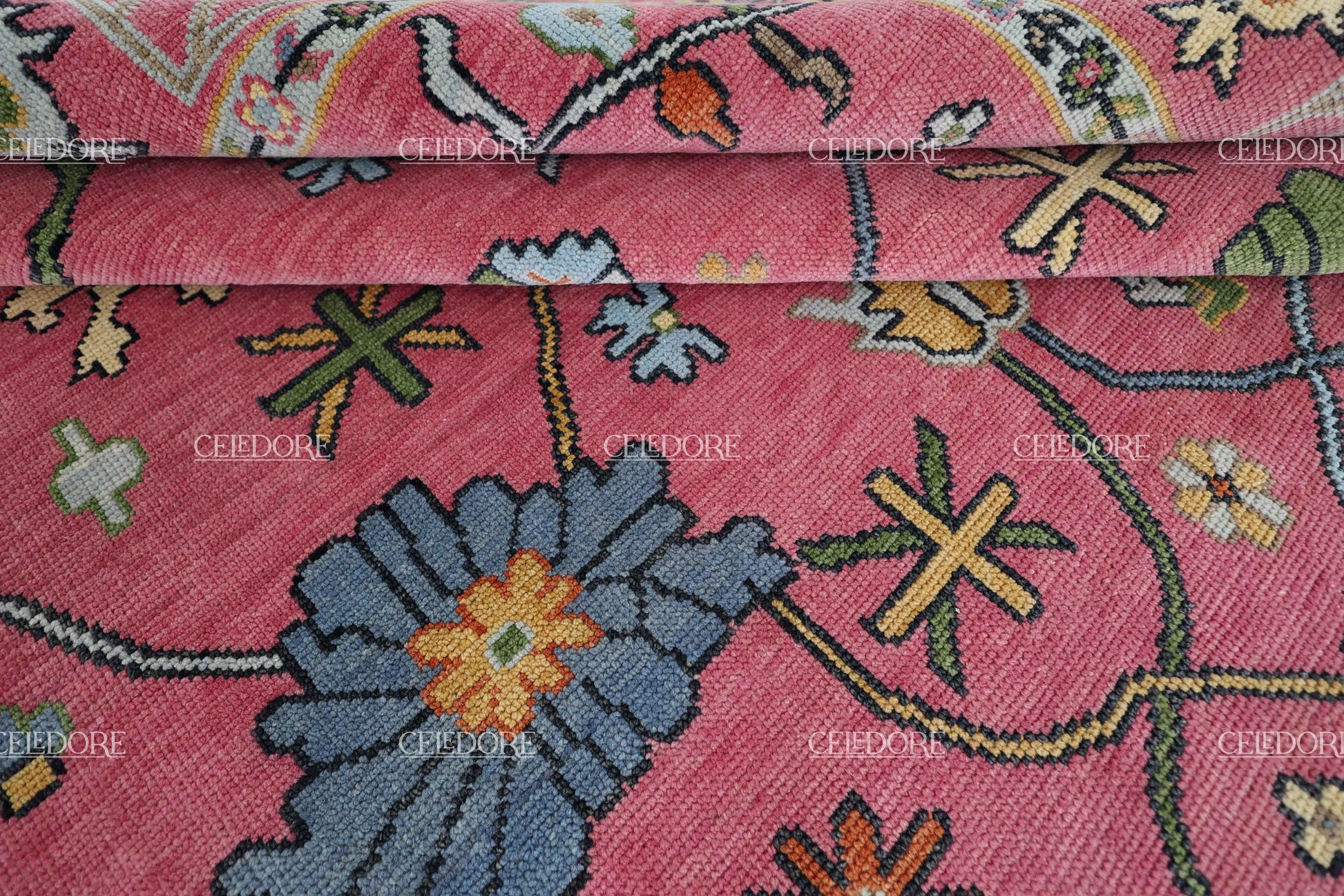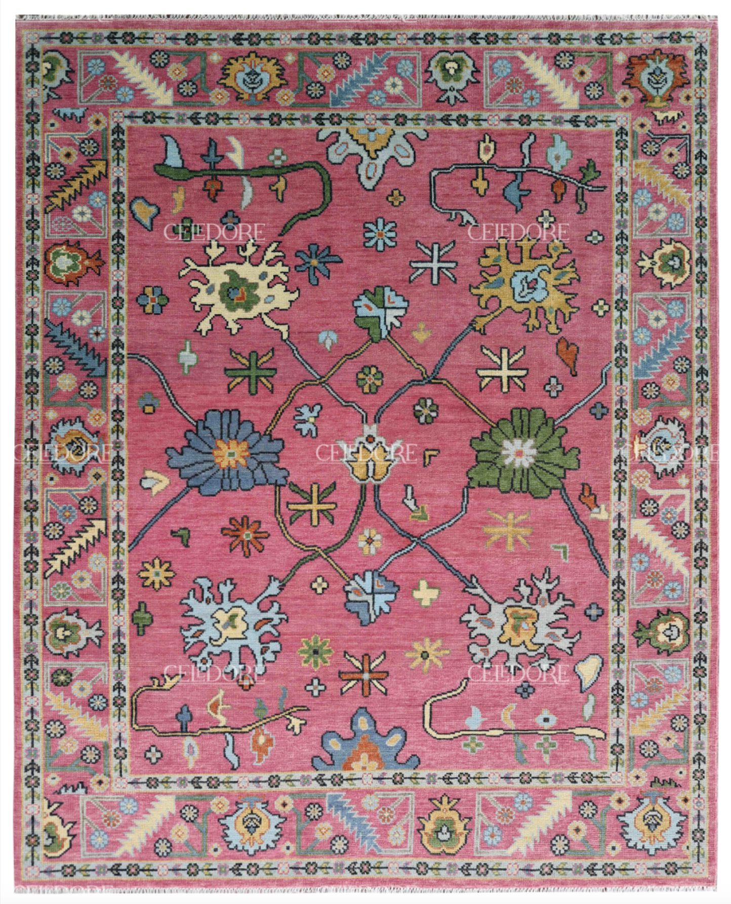 Hand-Knotted Oushak Rug, meticulously crafted with the finest quality wool. This rug embodies the rich tapestry of Indian craftsmanship, blending traditional design with a contemporary twist, reminiscent of the vibrant villages of India.