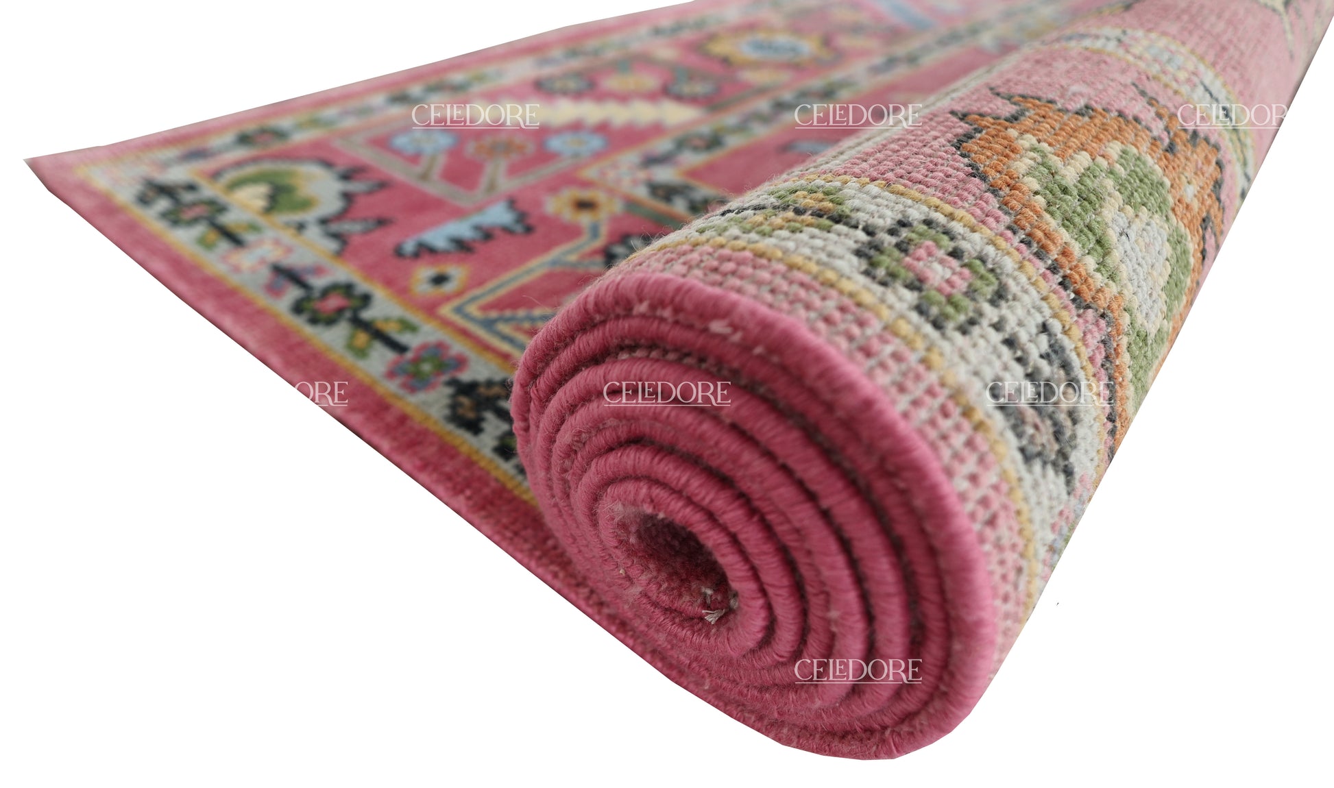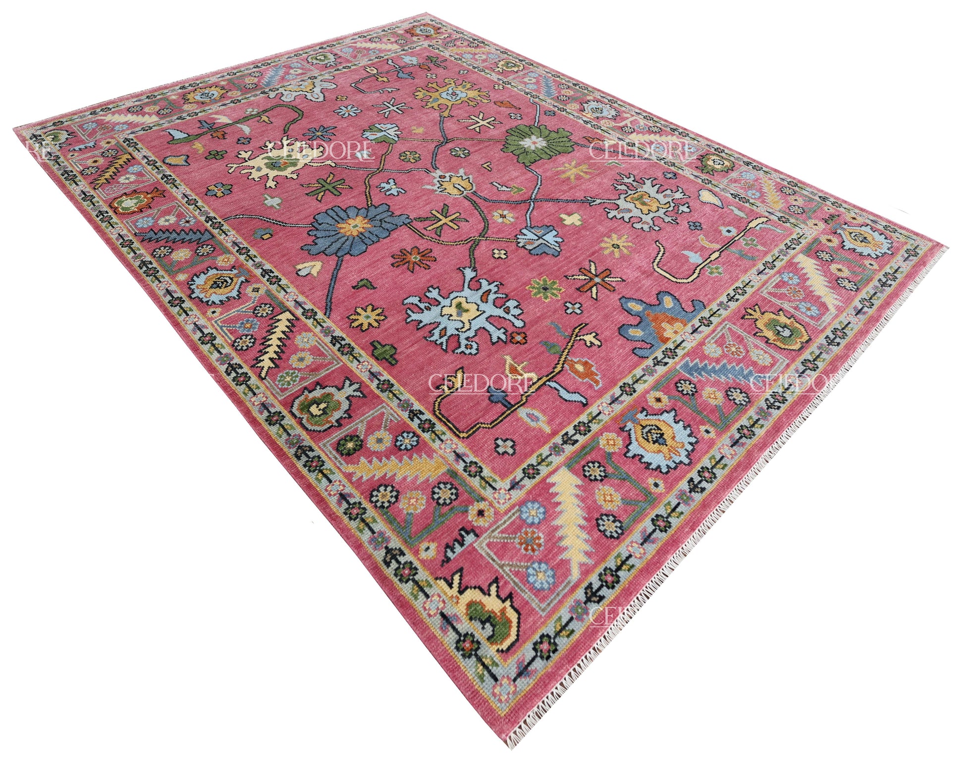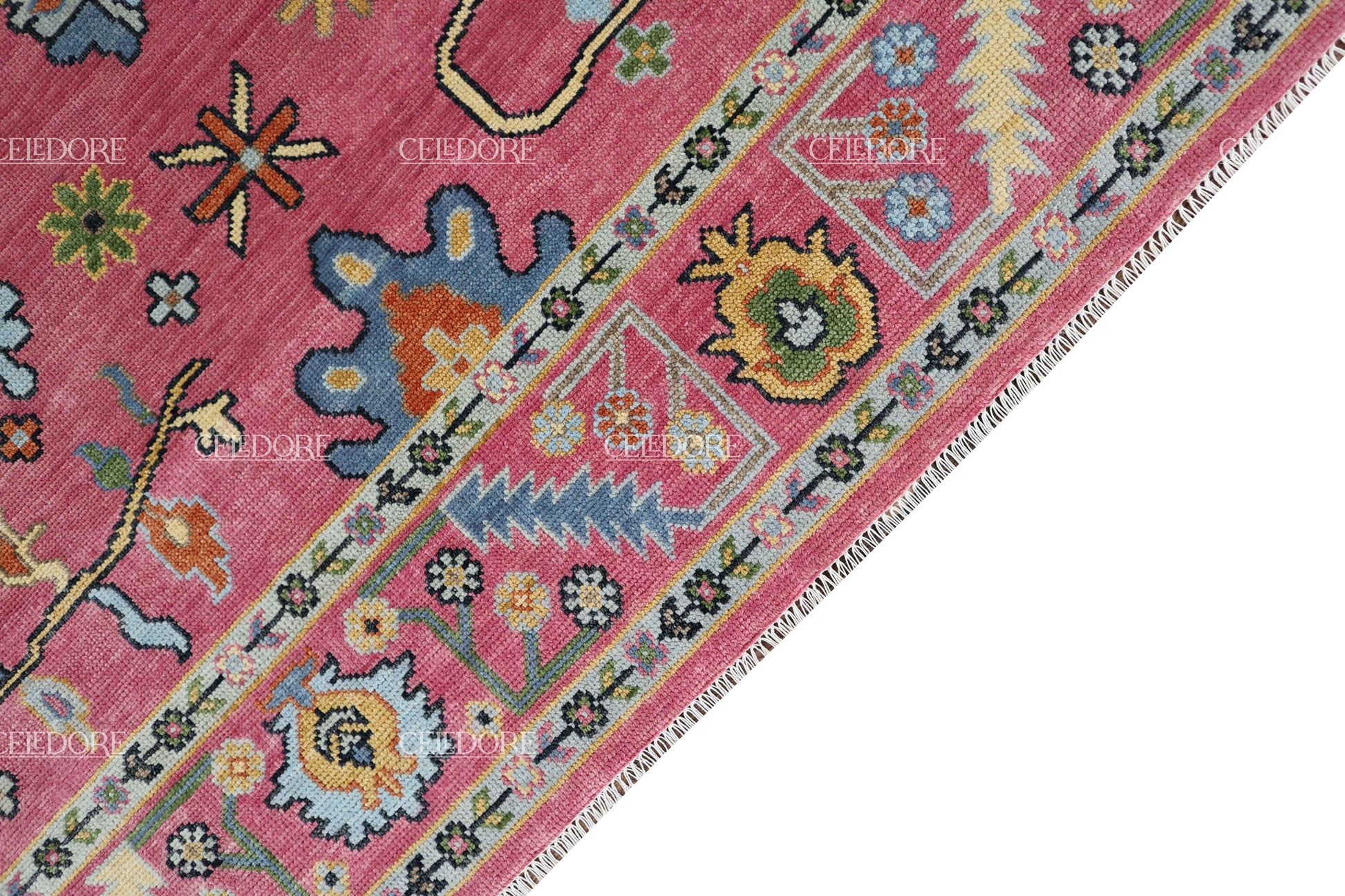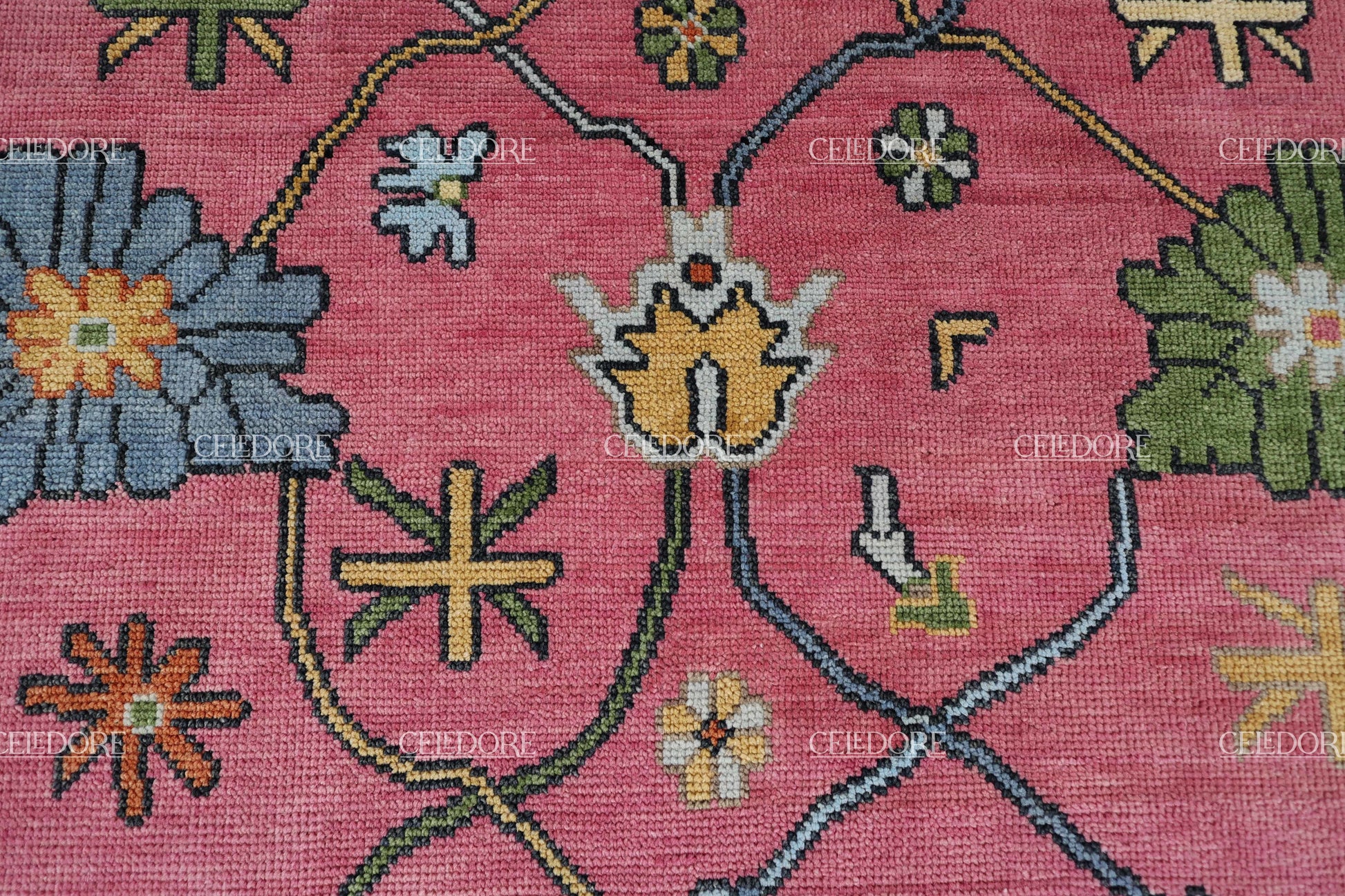 Hand-Knotted Oushak Rug, meticulously crafted with the finest quality wool. This rug embodies the rich tapestry of Indian craftsmanship, blending traditional design with a contemporary twist, reminiscent of the vibrant villages of India.