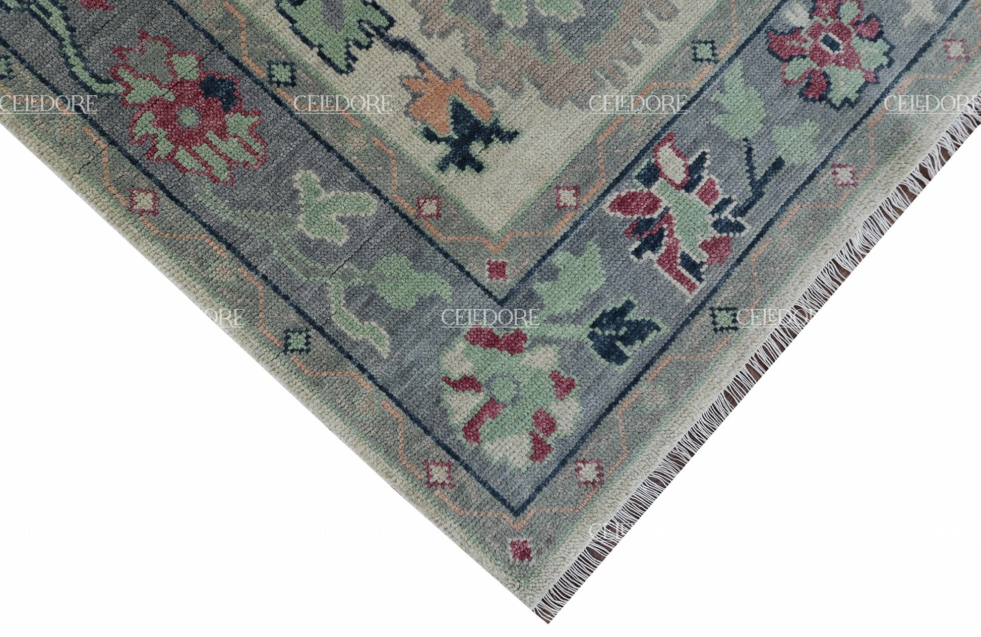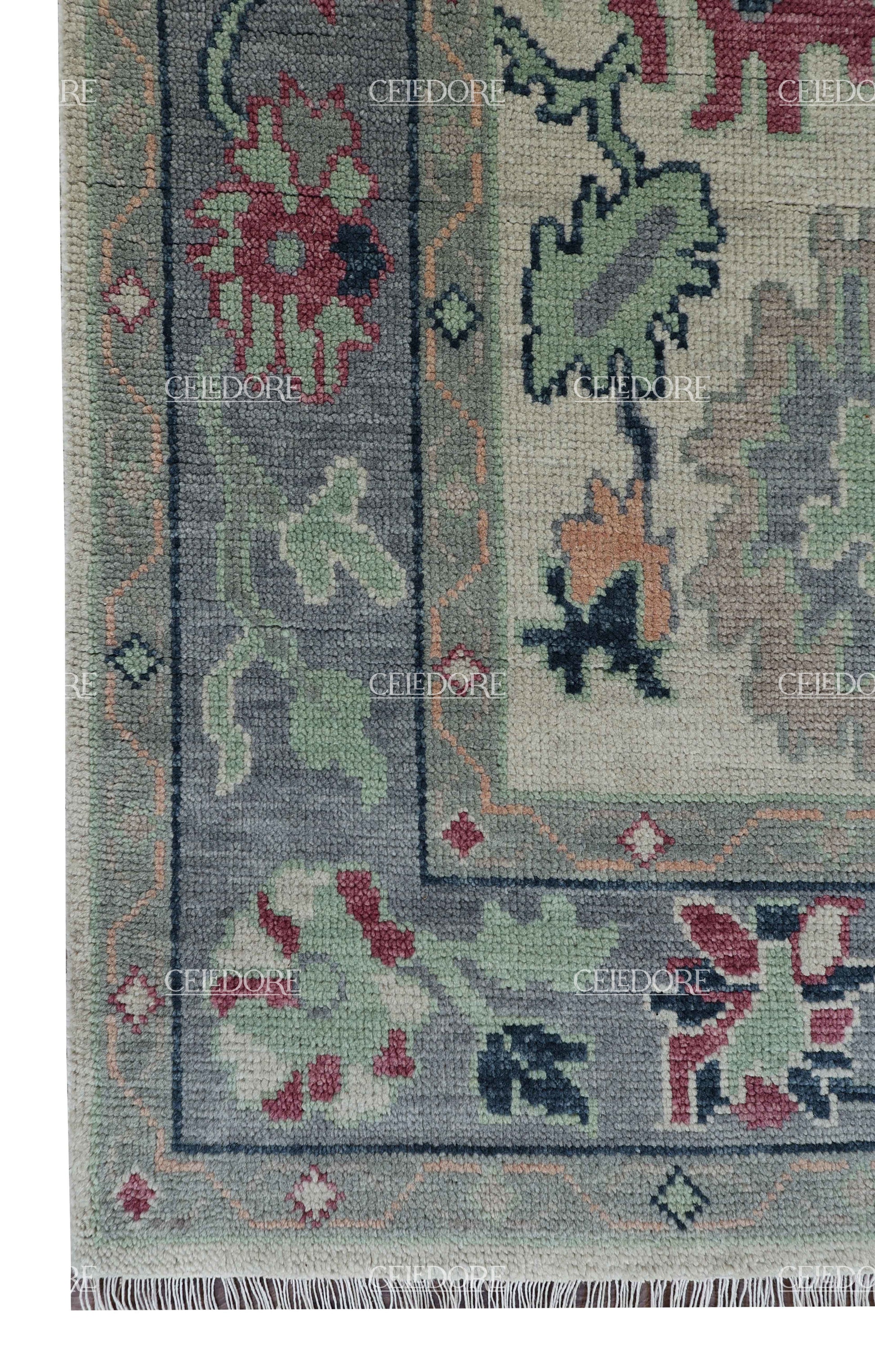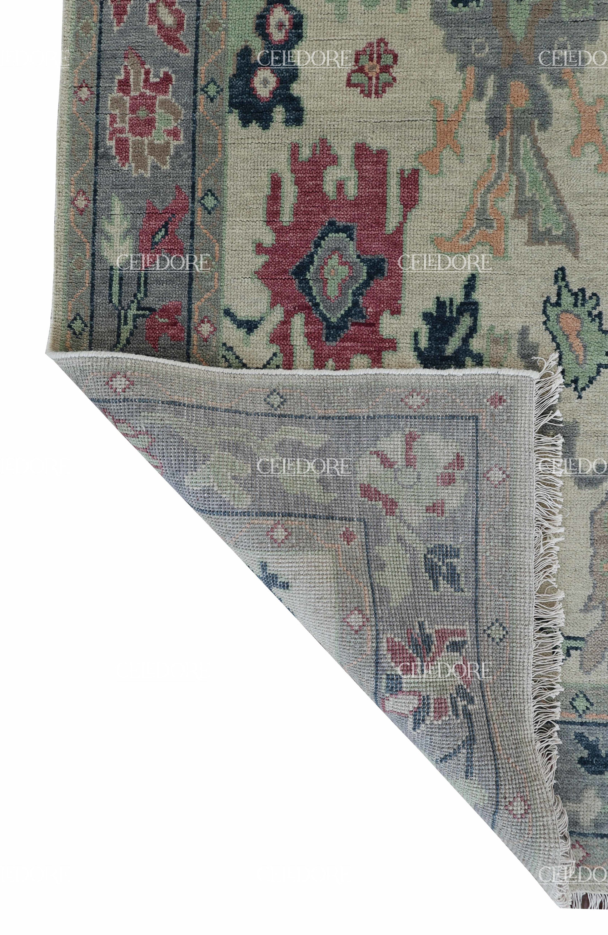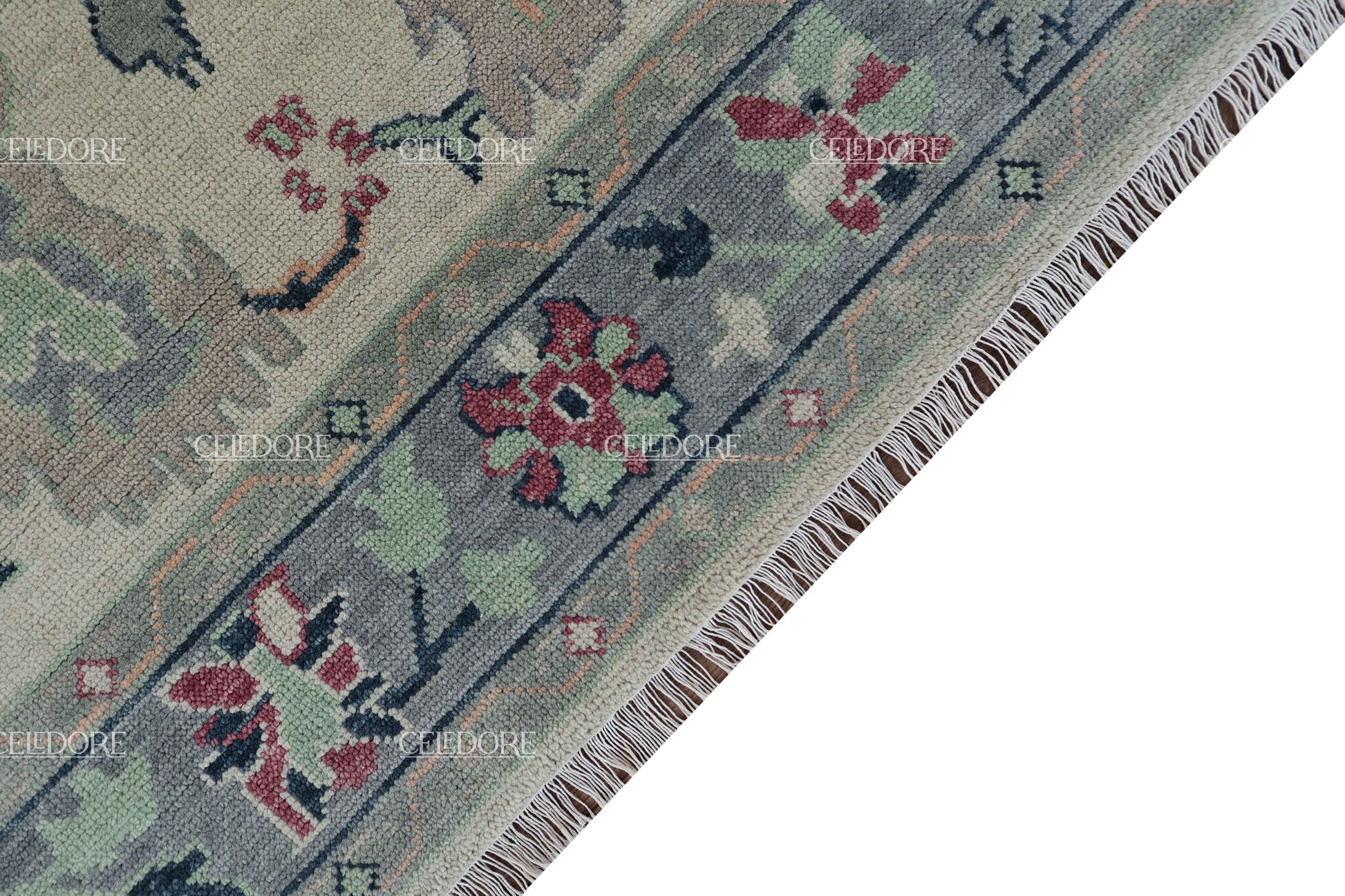 Hand-Knotted Oushak Rug, meticulously crafted with the finest quality wool. This rug embodies the rich tapestry of Indian craftsmanship, blending traditional design with a contemporary twist, reminiscent of the vibrant villages of India.