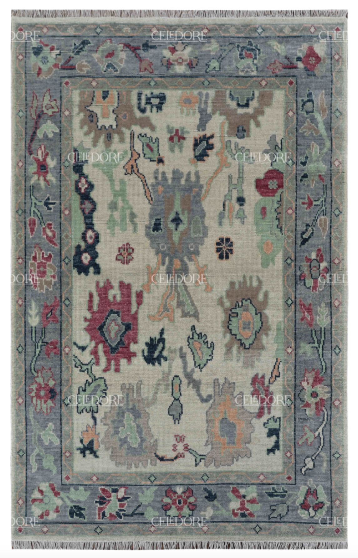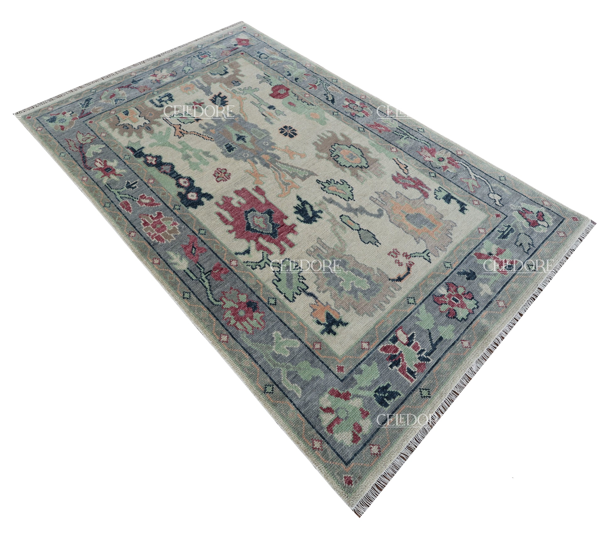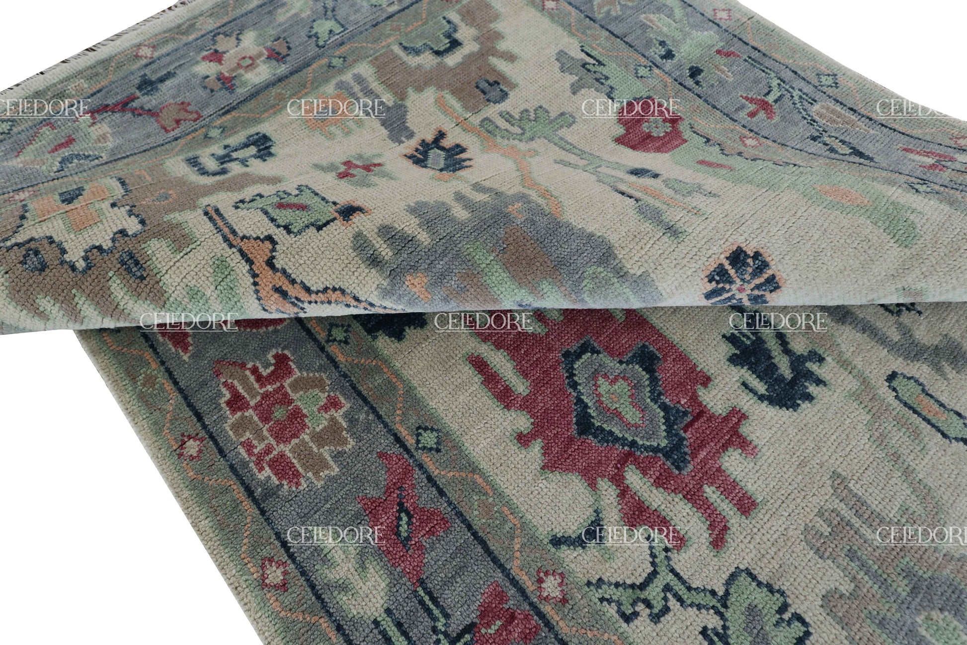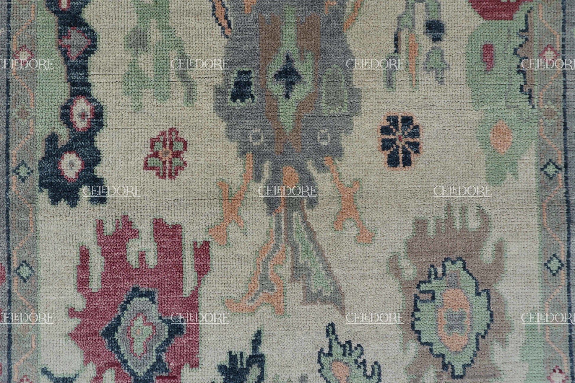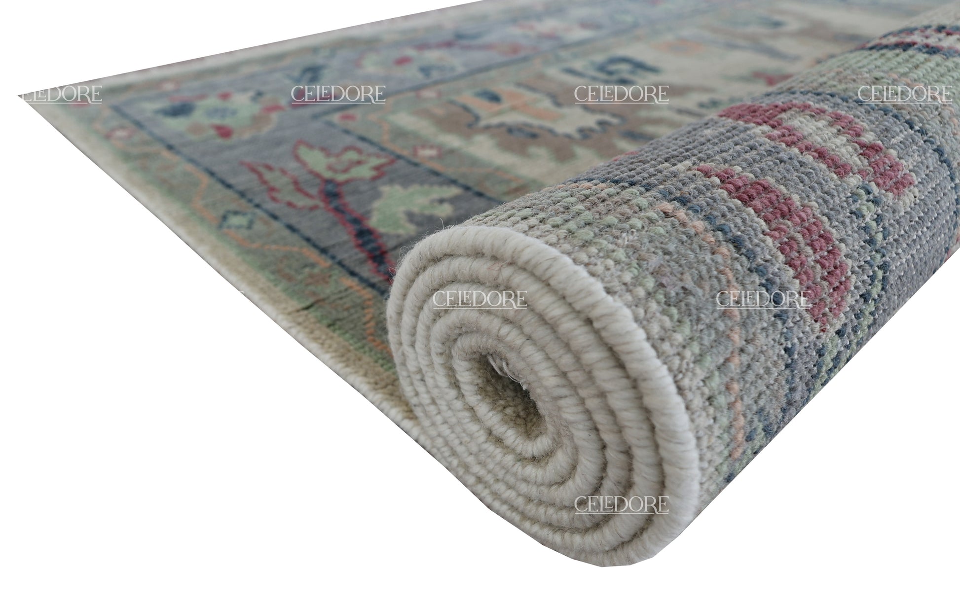 Hand-Knotted Oushak Rug, meticulously crafted with the finest quality wool. This rug embodies the rich tapestry of Indian craftsmanship, blending traditional design with a contemporary twist, reminiscent of the vibrant villages of India.