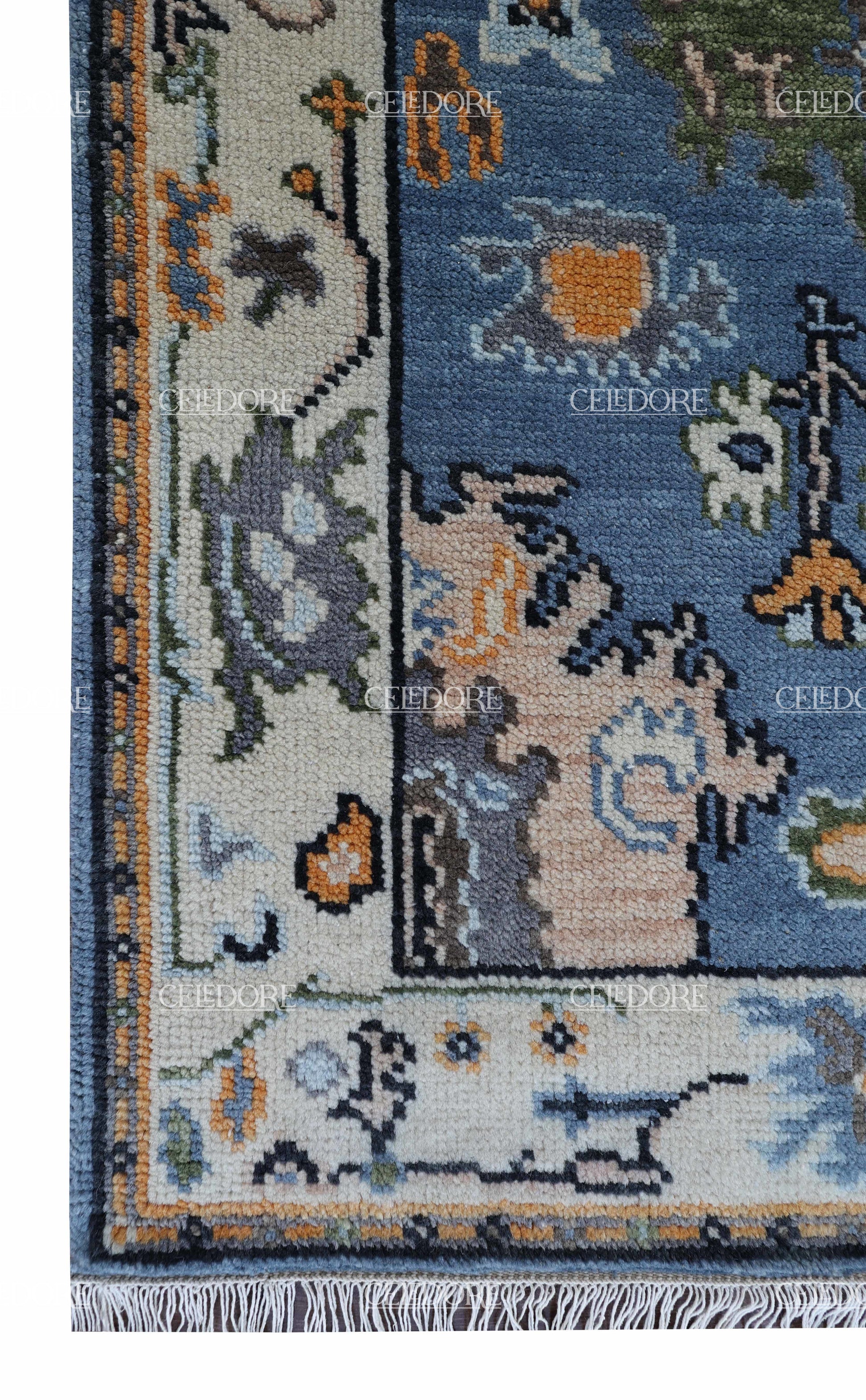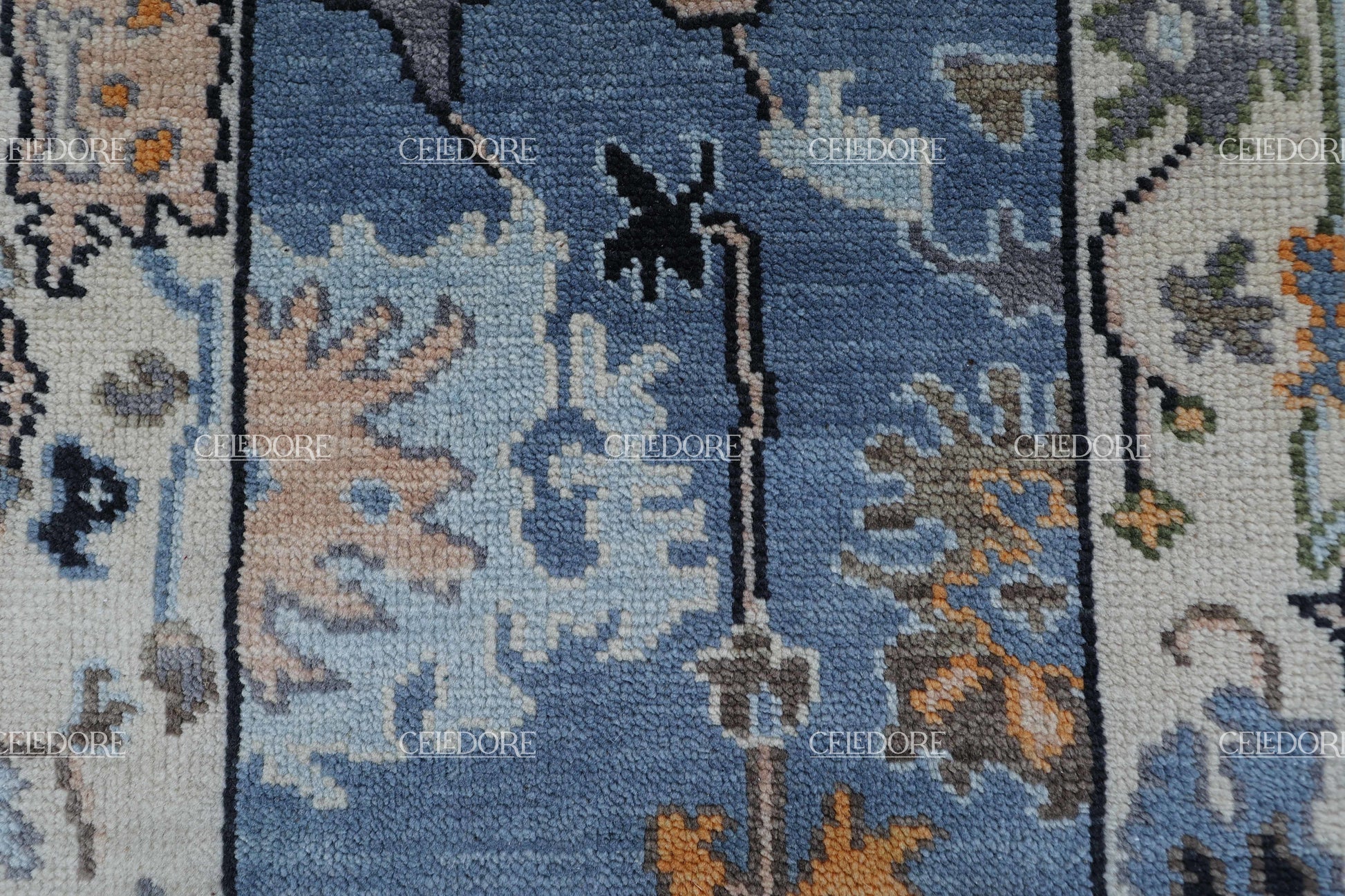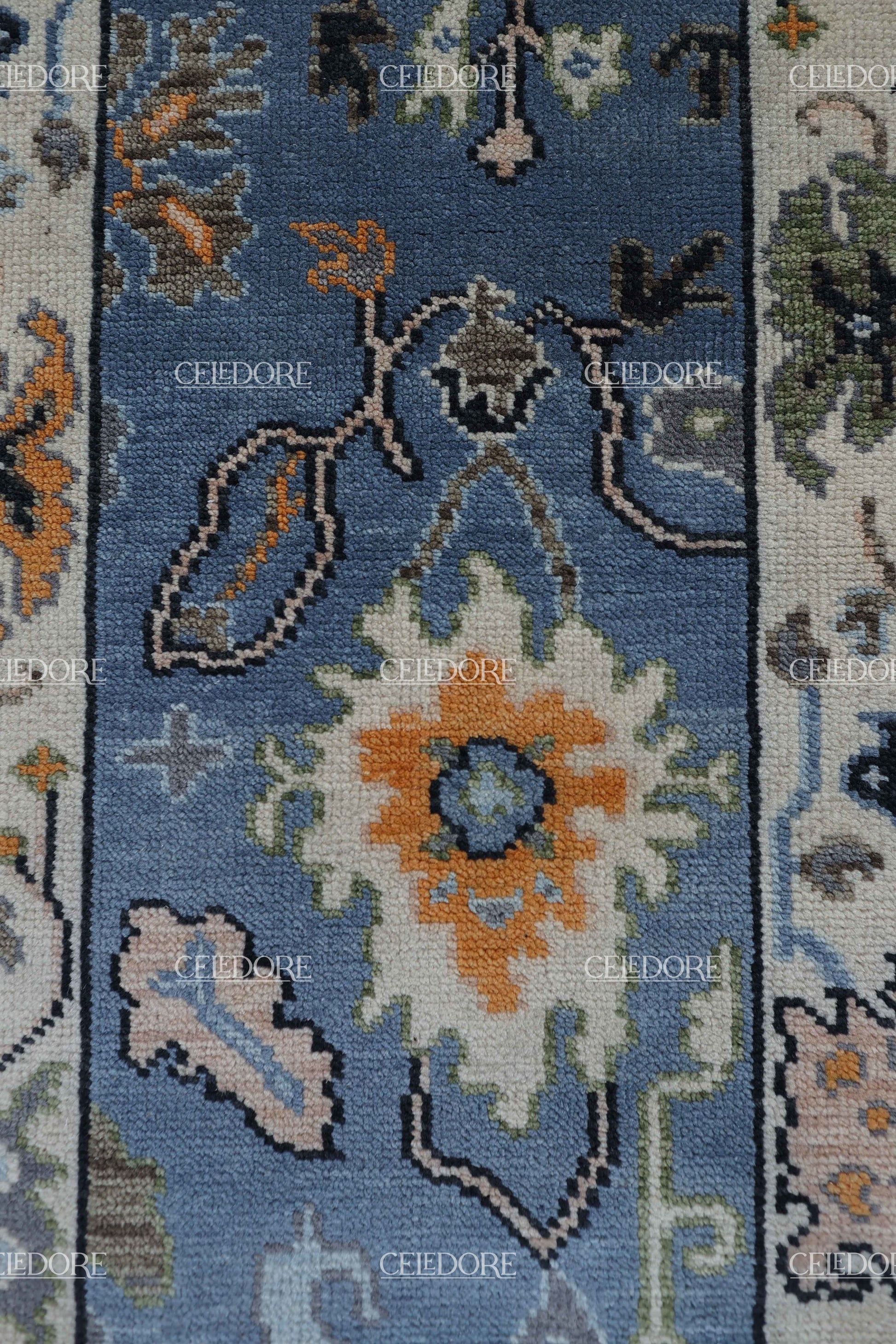Hand-Knotted Oushak Rug, meticulously crafted with the finest quality wool. This rug embodies the rich tapestry of Indian craftsmanship, blending traditional design with a contemporary twist, reminiscent of the vibrant villages of India.