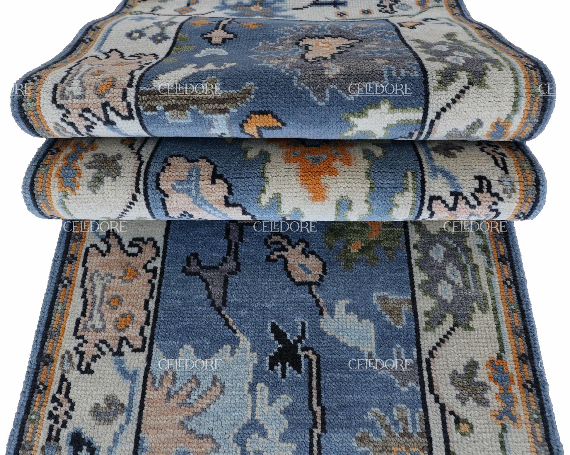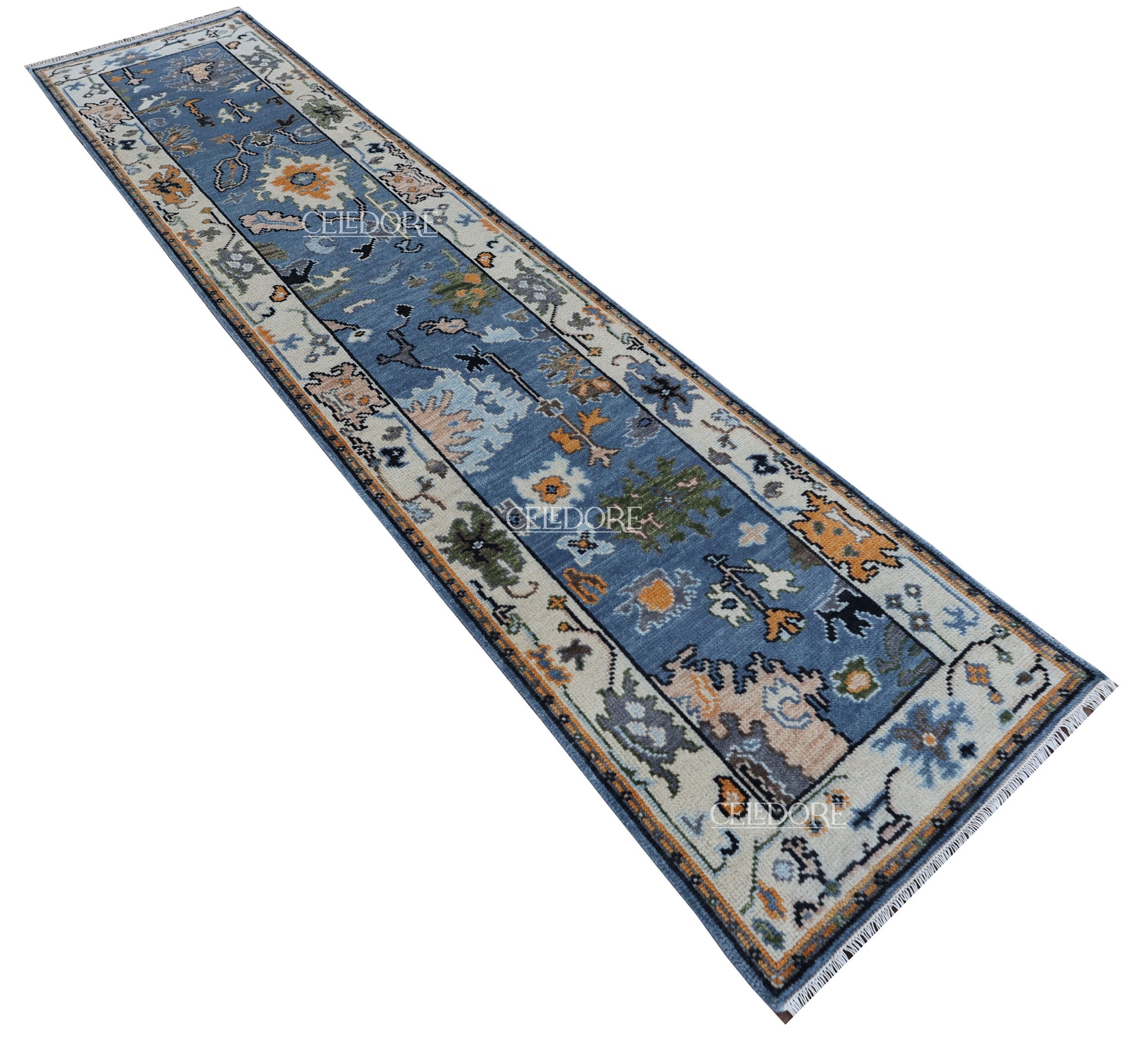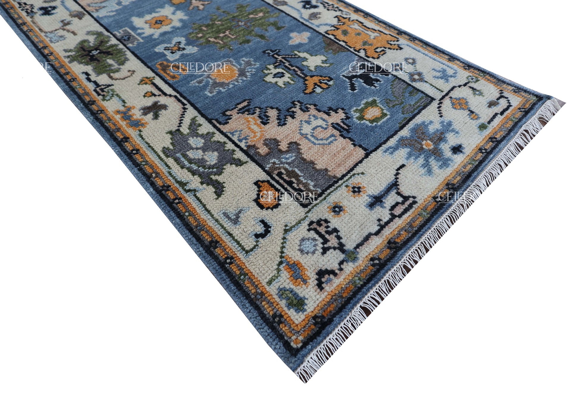 Hand-Knotted Oushak Rug, meticulously crafted with the finest quality wool. This rug embodies the rich tapestry of Indian craftsmanship, blending traditional design with a contemporary twist, reminiscent of the vibrant villages of India.