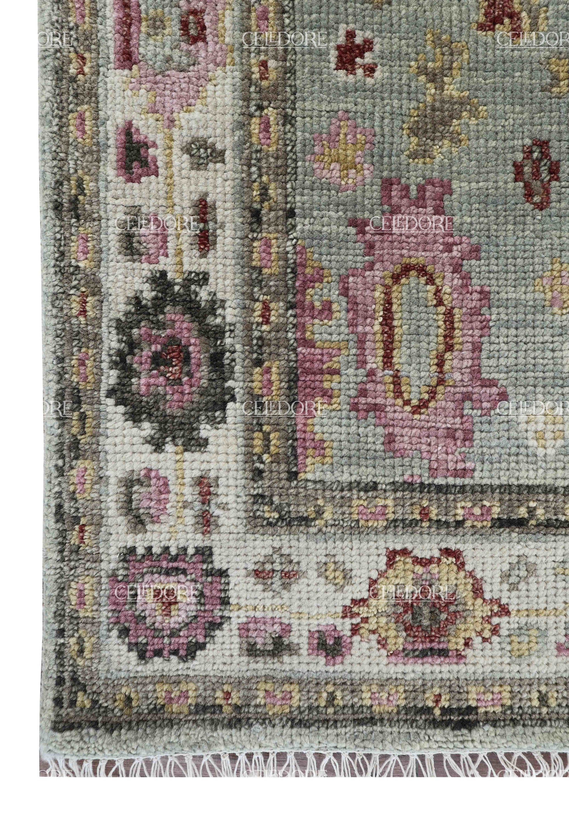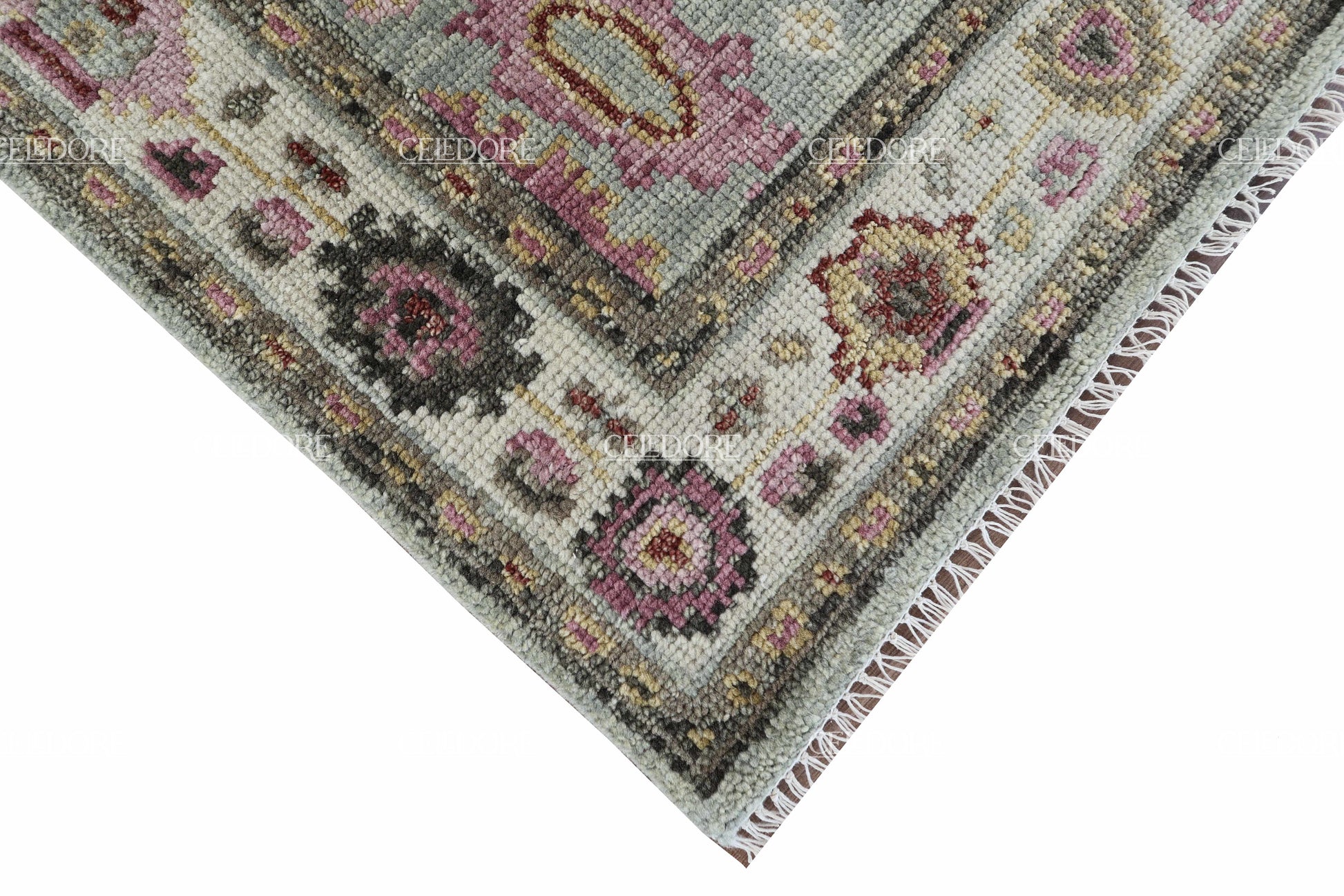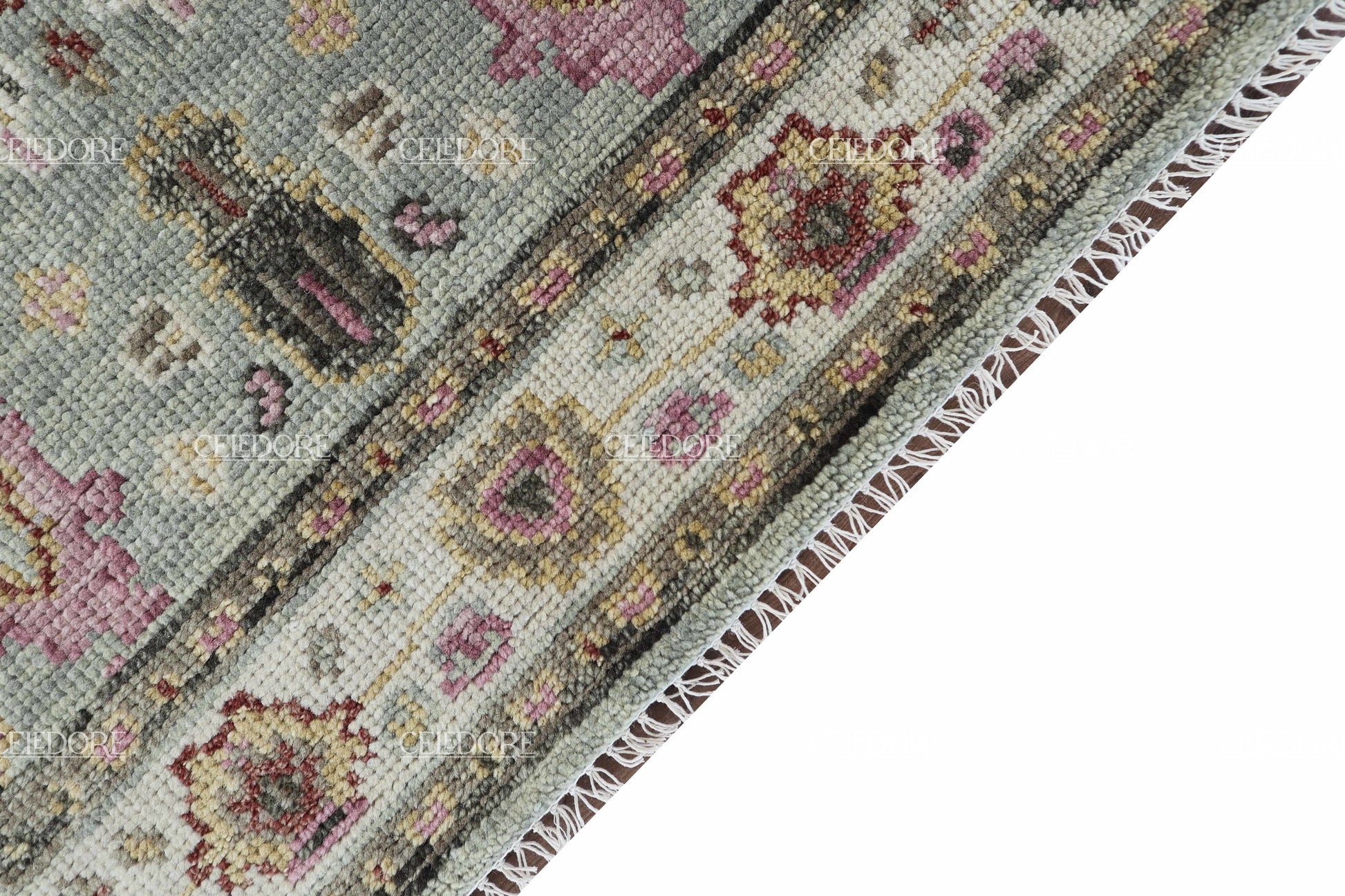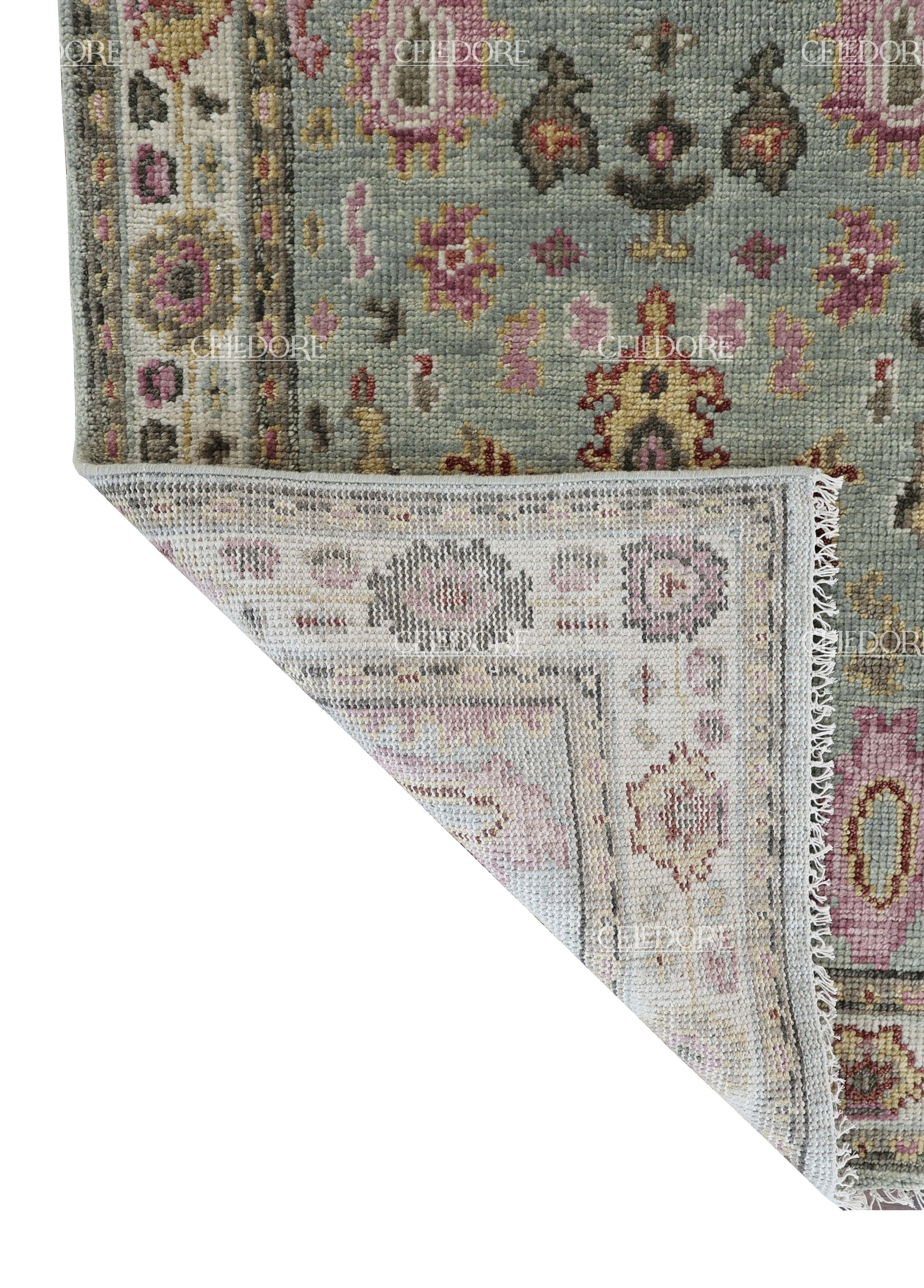 Hand-Knotted Oushak Rug, meticulously crafted with the finest quality wool. This rug embodies the rich tapestry of Indian craftsmanship, blending traditional design with a contemporary twist, reminiscent of the vibrant villages of India.