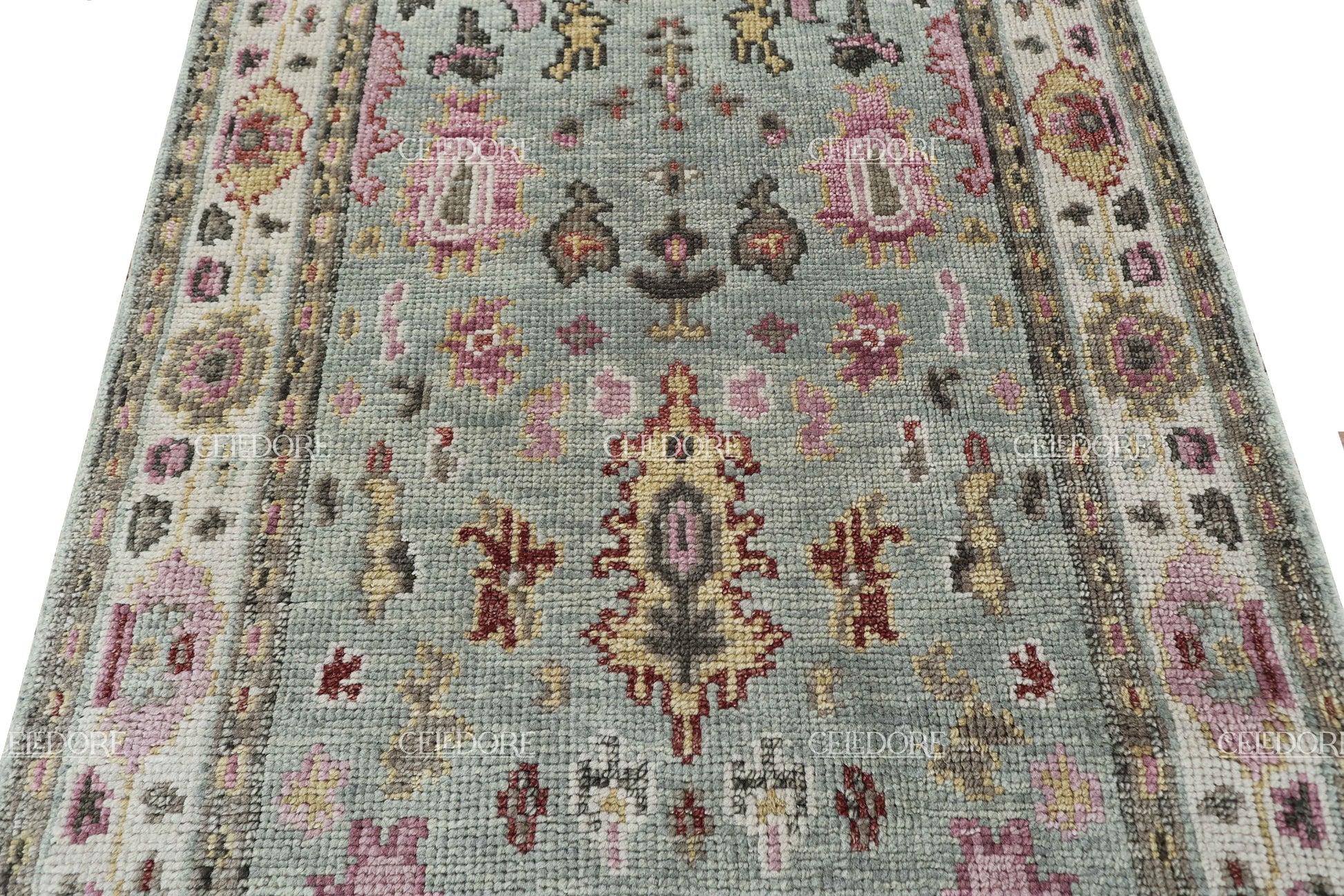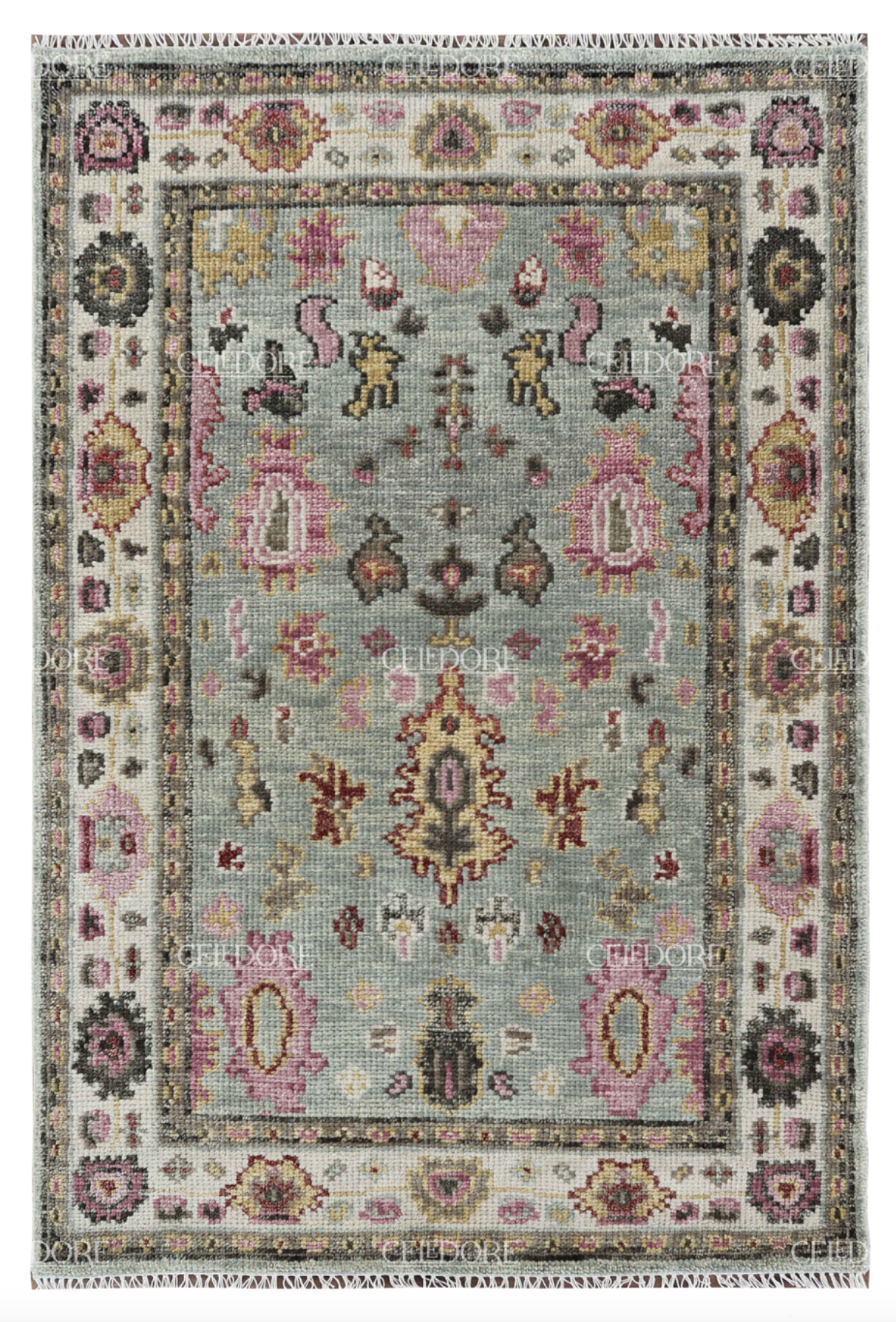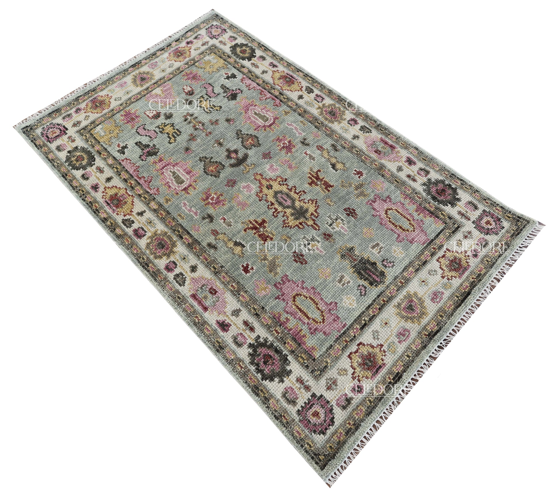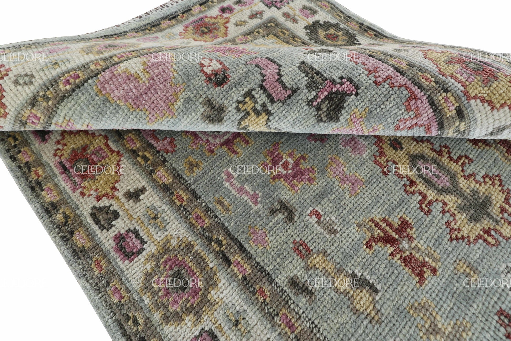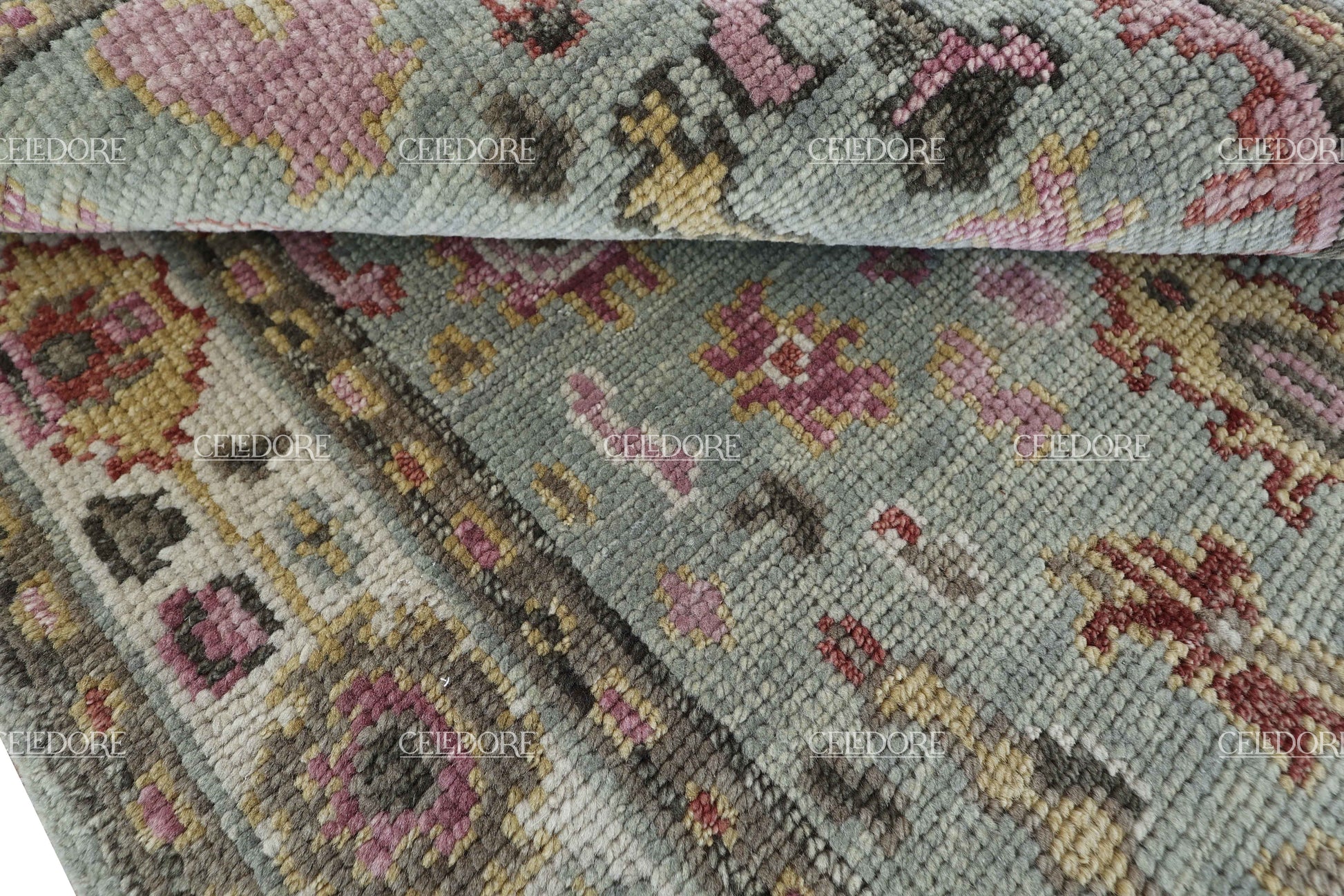 Hand-Knotted Oushak Rug, meticulously crafted with the finest quality wool. This rug embodies the rich tapestry of Indian craftsmanship, blending traditional design with a contemporary twist, reminiscent of the vibrant villages of India.