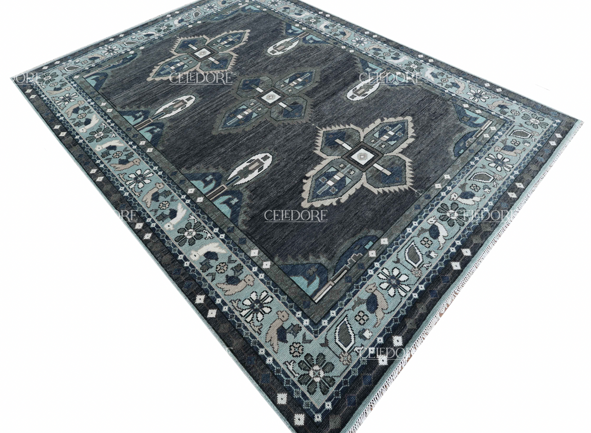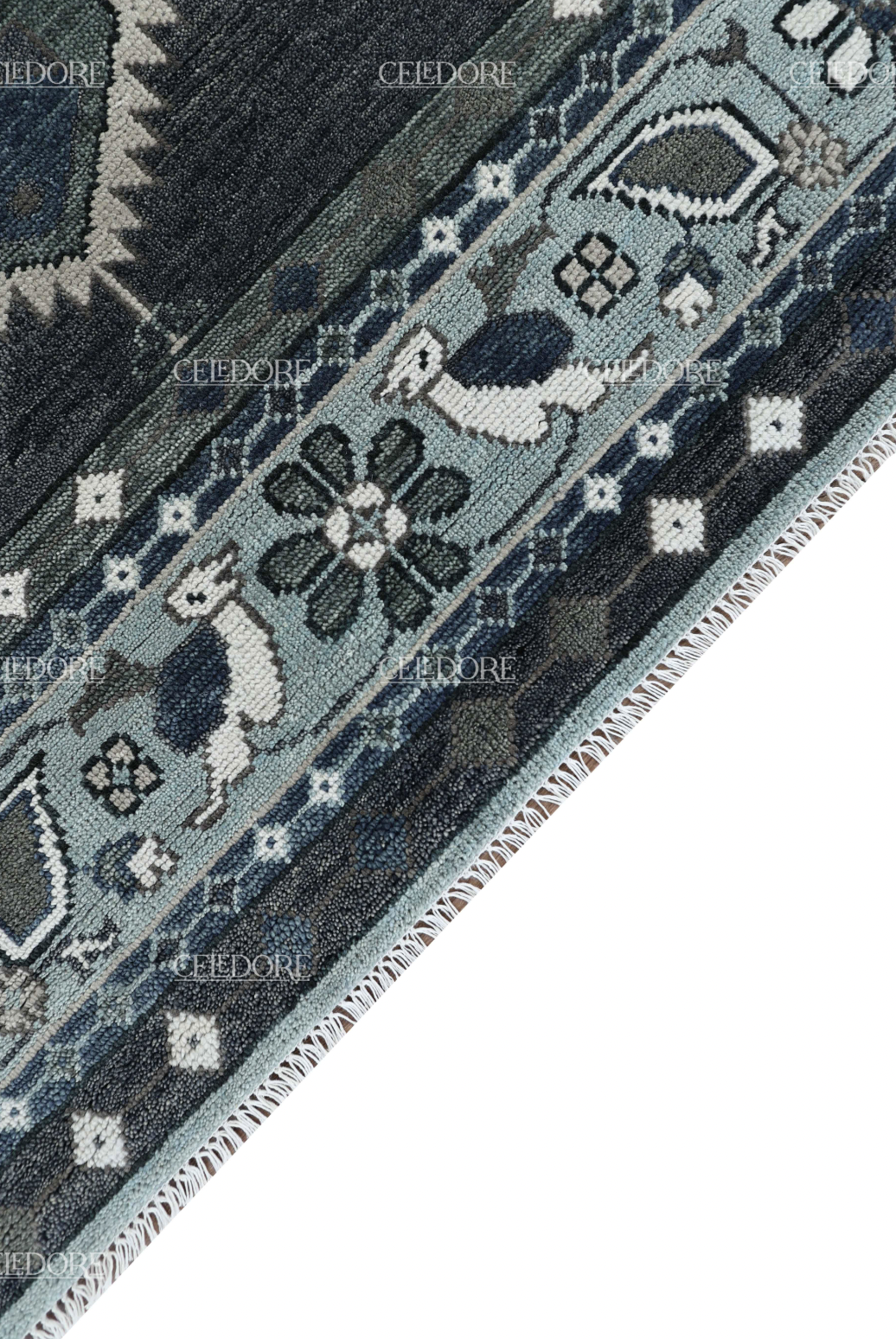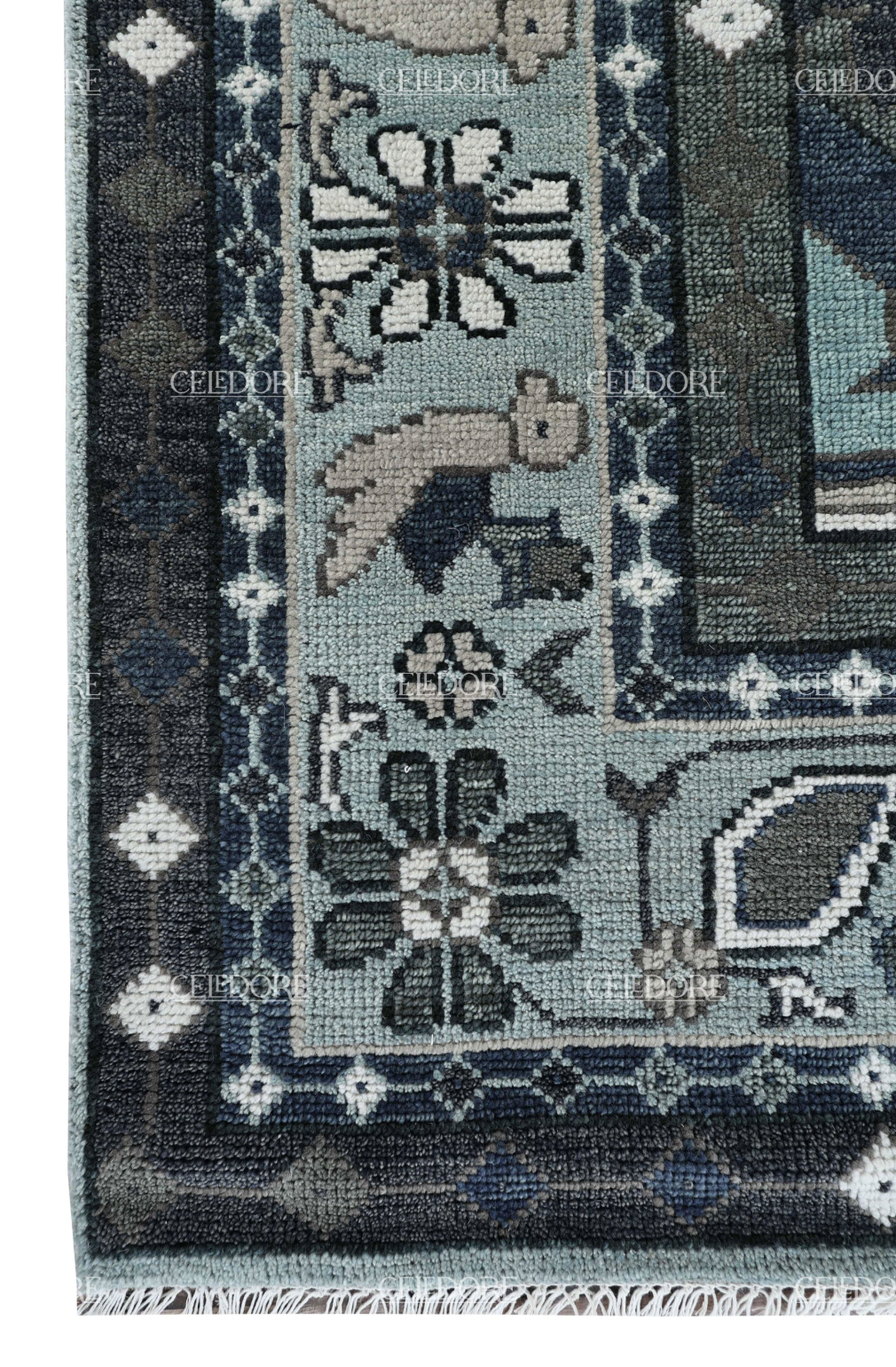 Hand-Knotted Oushak Rug, meticulously crafted with the finest quality wool. This rug embodies the rich tapestry of Indian craftsmanship, blending traditional design with a contemporary twist, reminiscent of the vibrant villages of India.