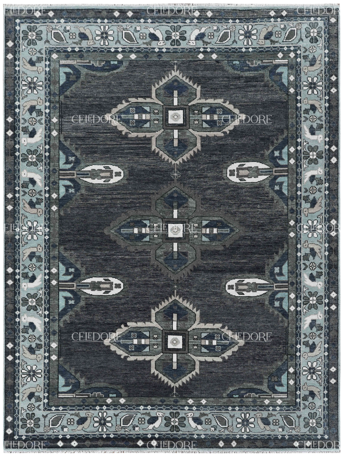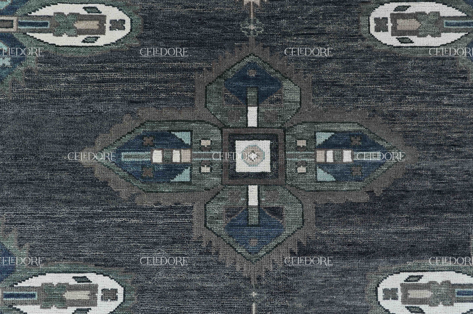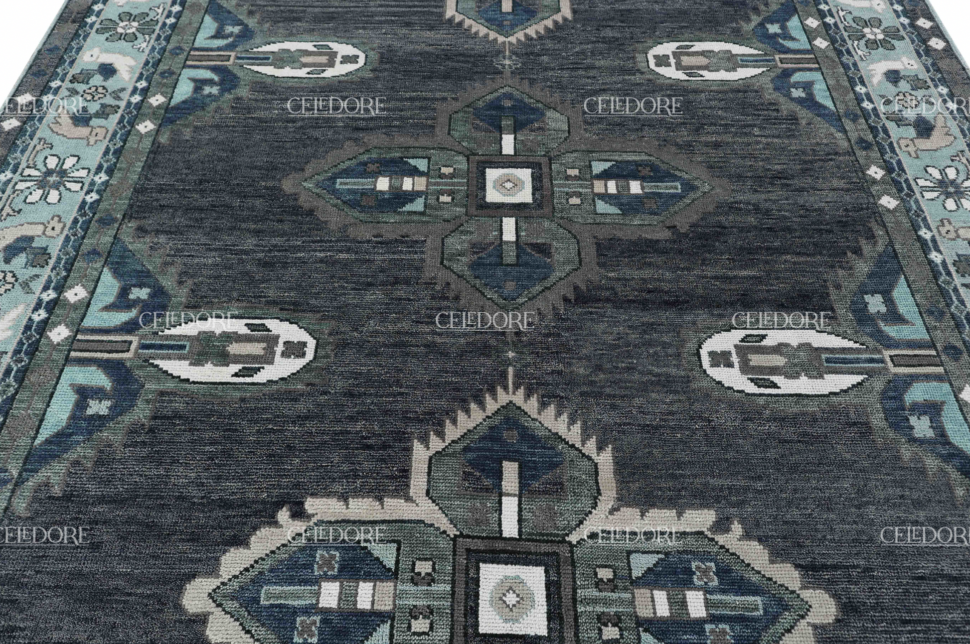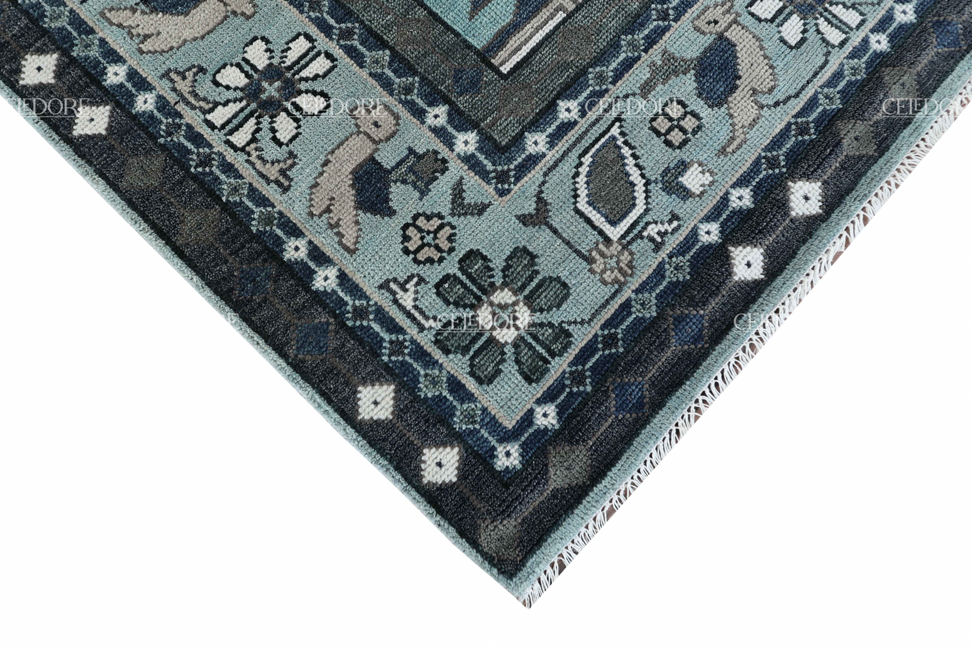 Hand-Knotted Oushak Rug, meticulously crafted with the finest quality wool. This rug embodies the rich tapestry of Indian craftsmanship, blending traditional design with a contemporary twist, reminiscent of the vibrant villages of India.