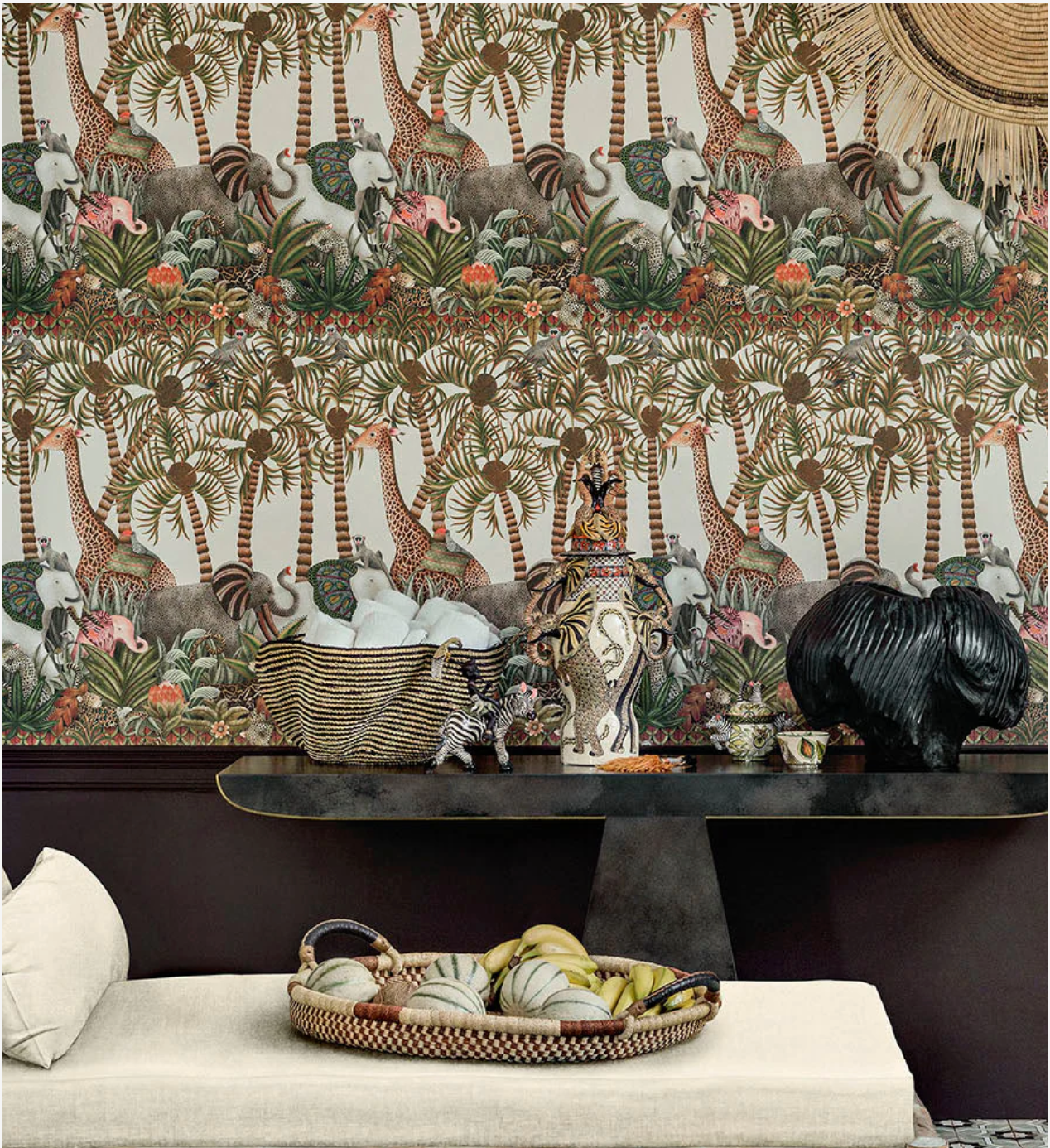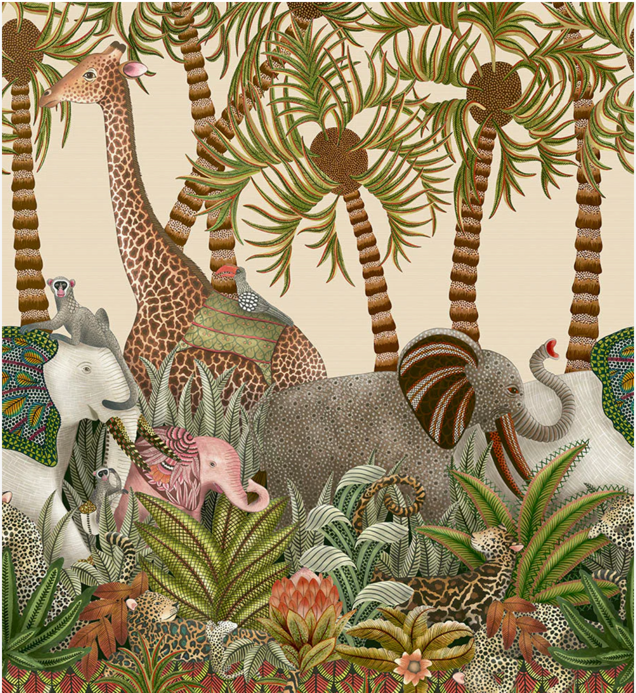 The charming design of Letaba March captures a parade of animals, great and small, meandering to the watering hole.