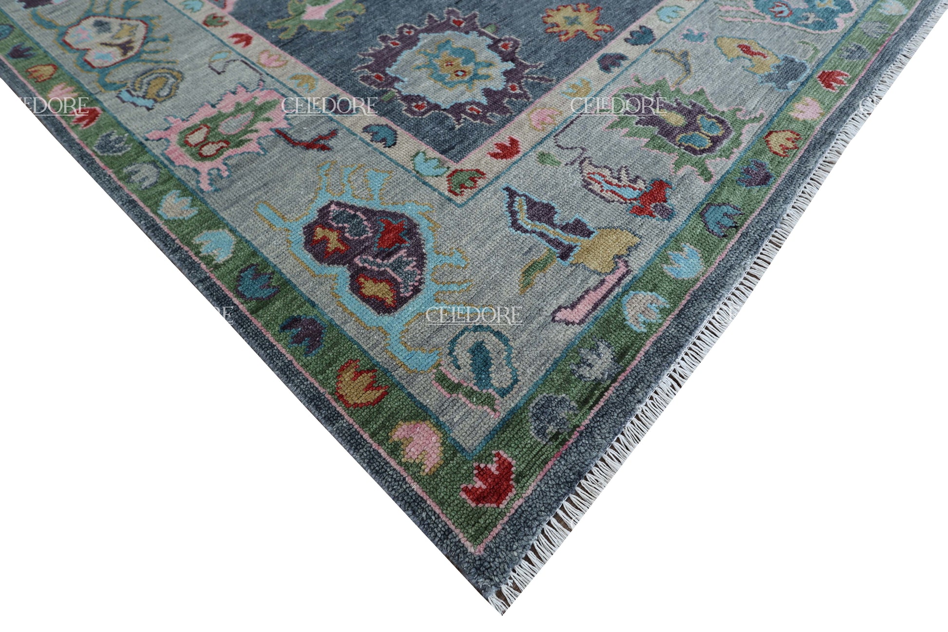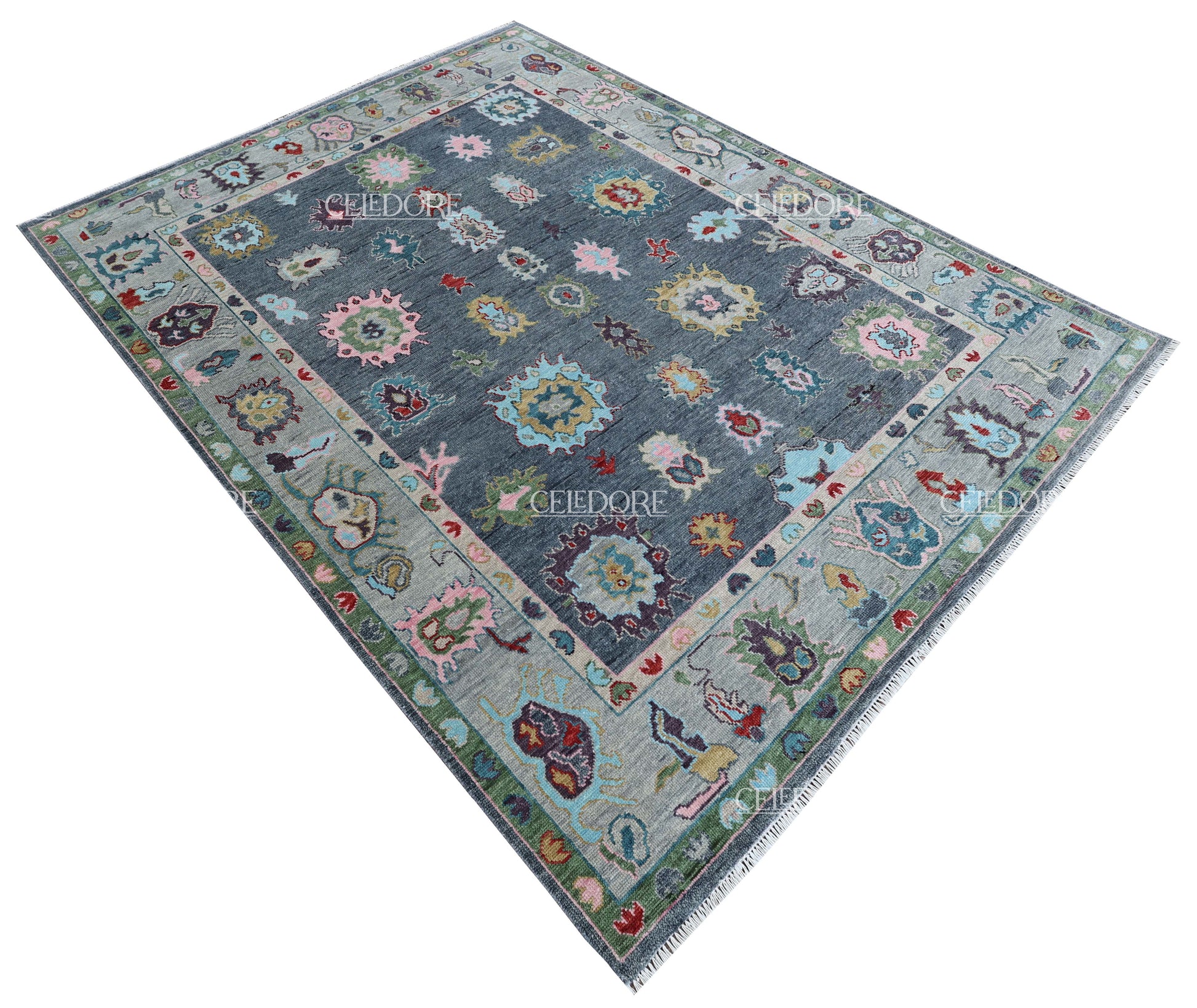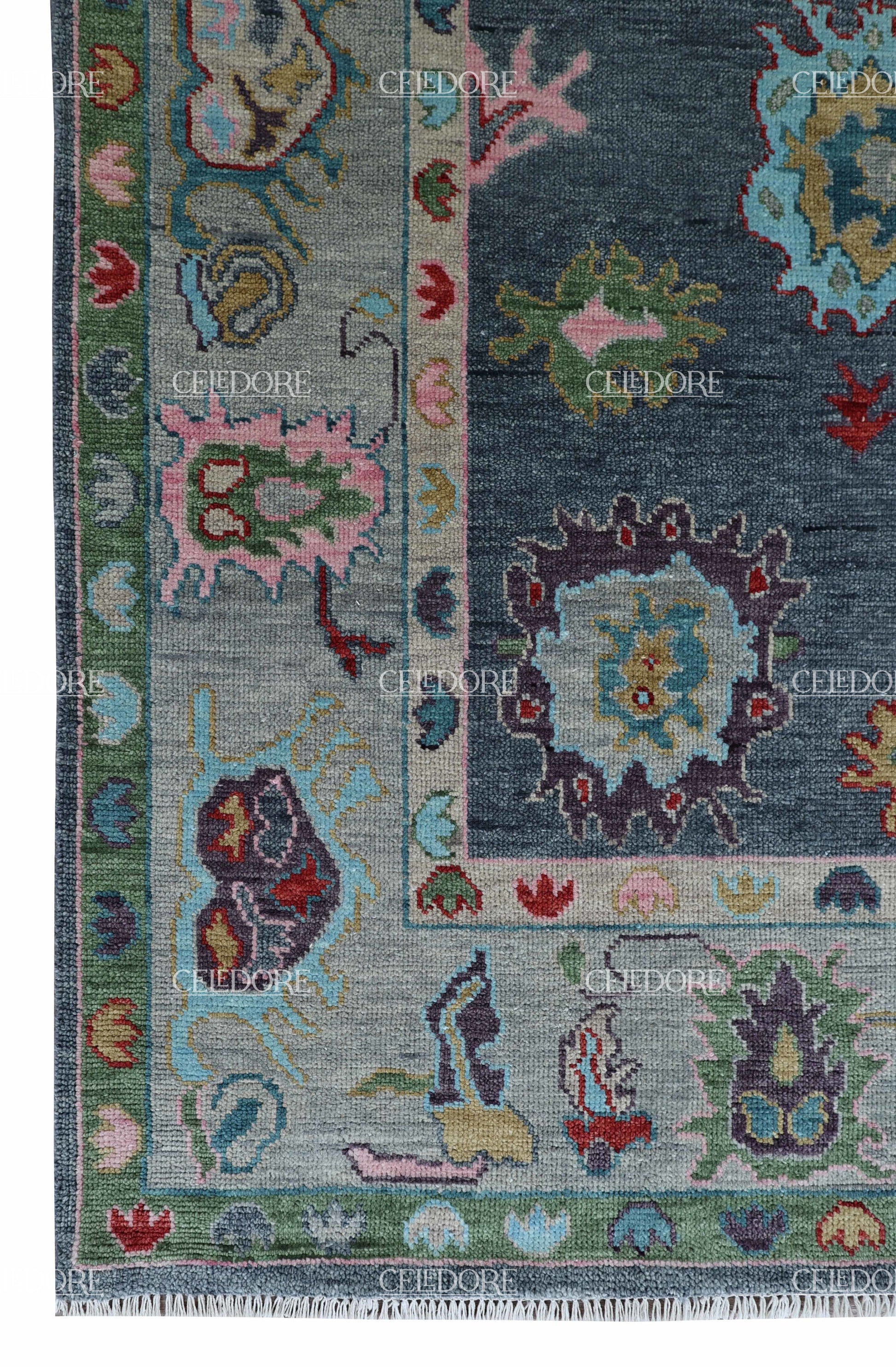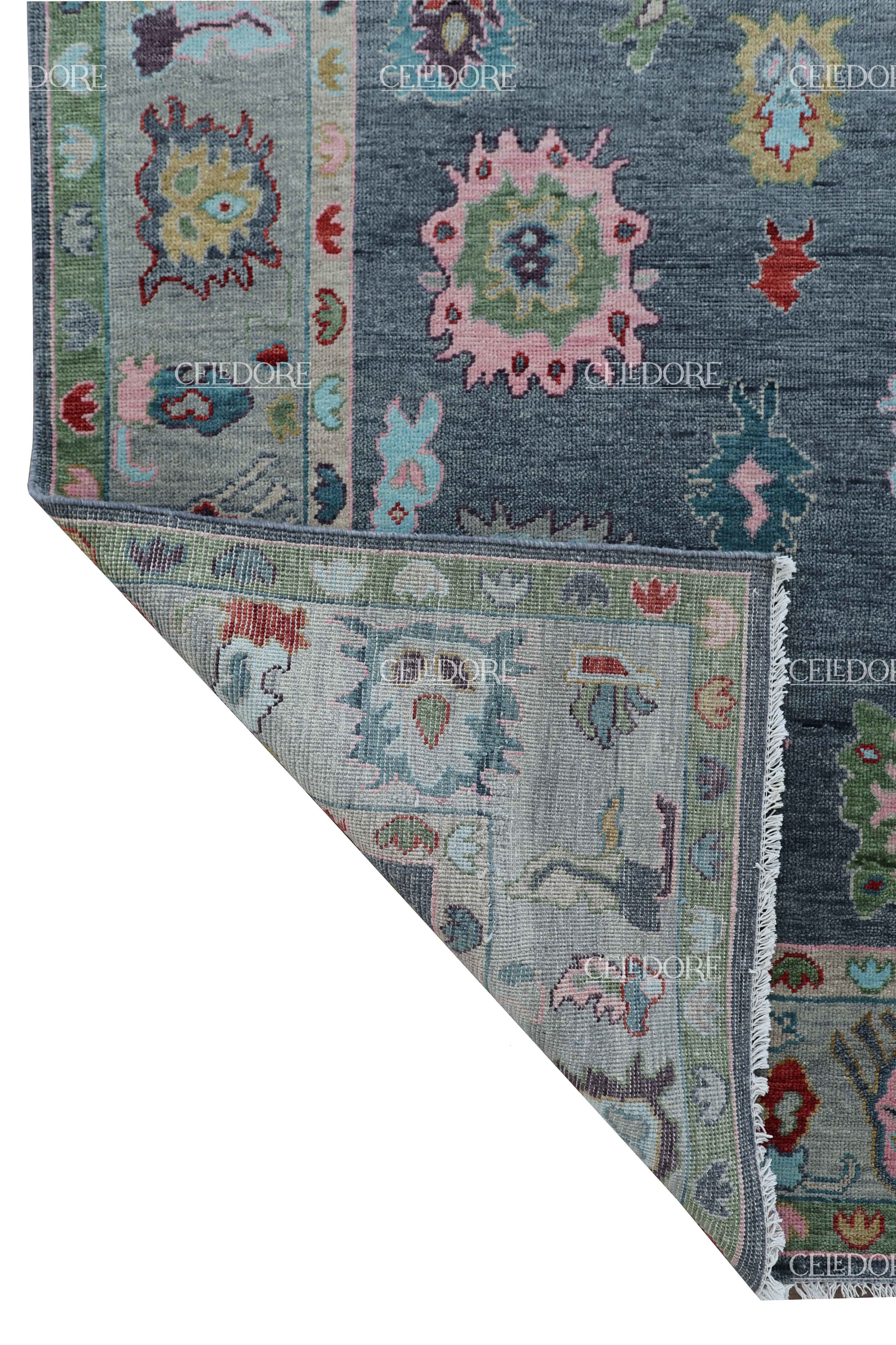 Hand-Knotted Oushak Rug, meticulously crafted with the finest quality wool. This rug embodies the rich tapestry of Indian craftsmanship, blending traditional design with a contemporary twist, reminiscent of the vibrant villages of India.