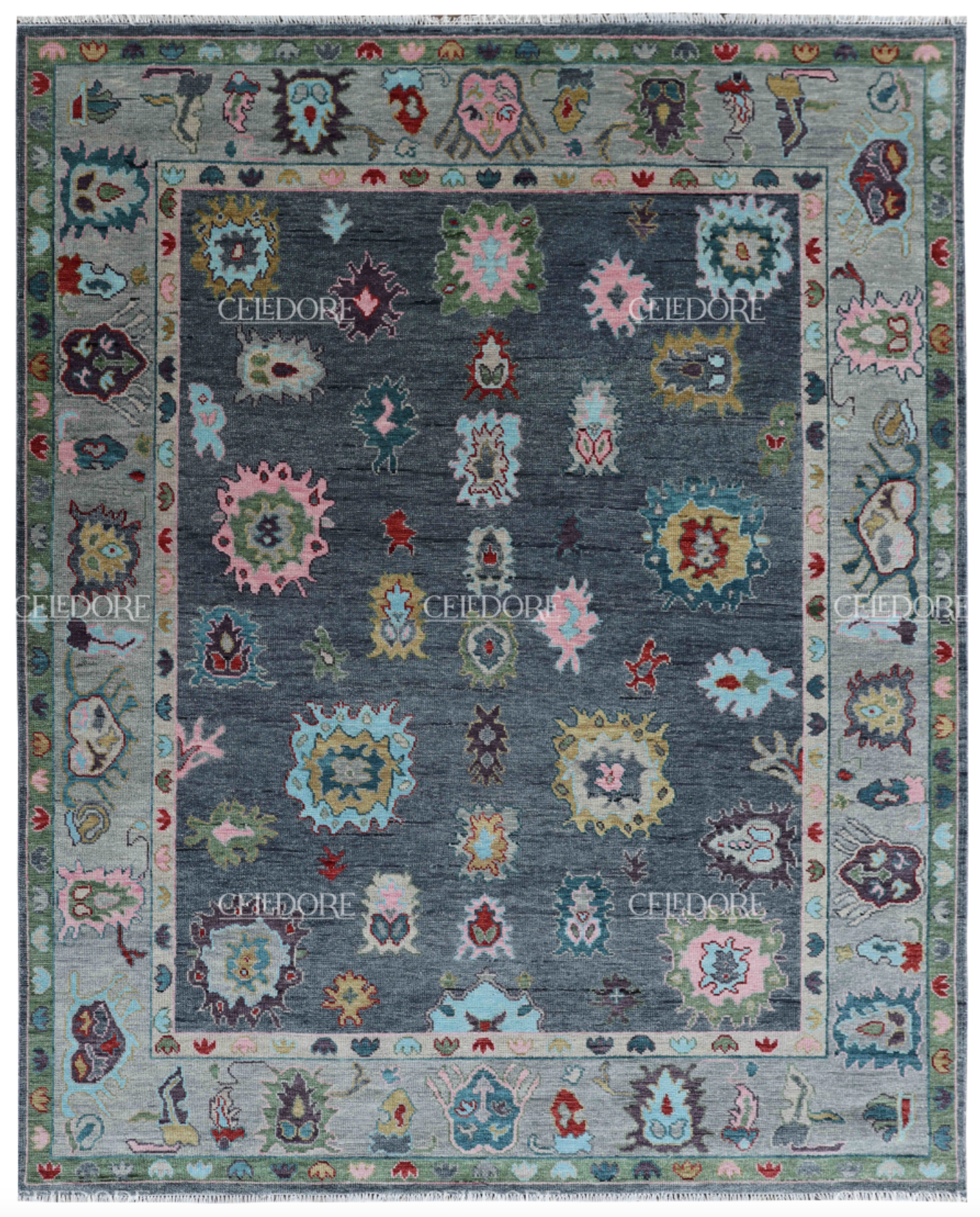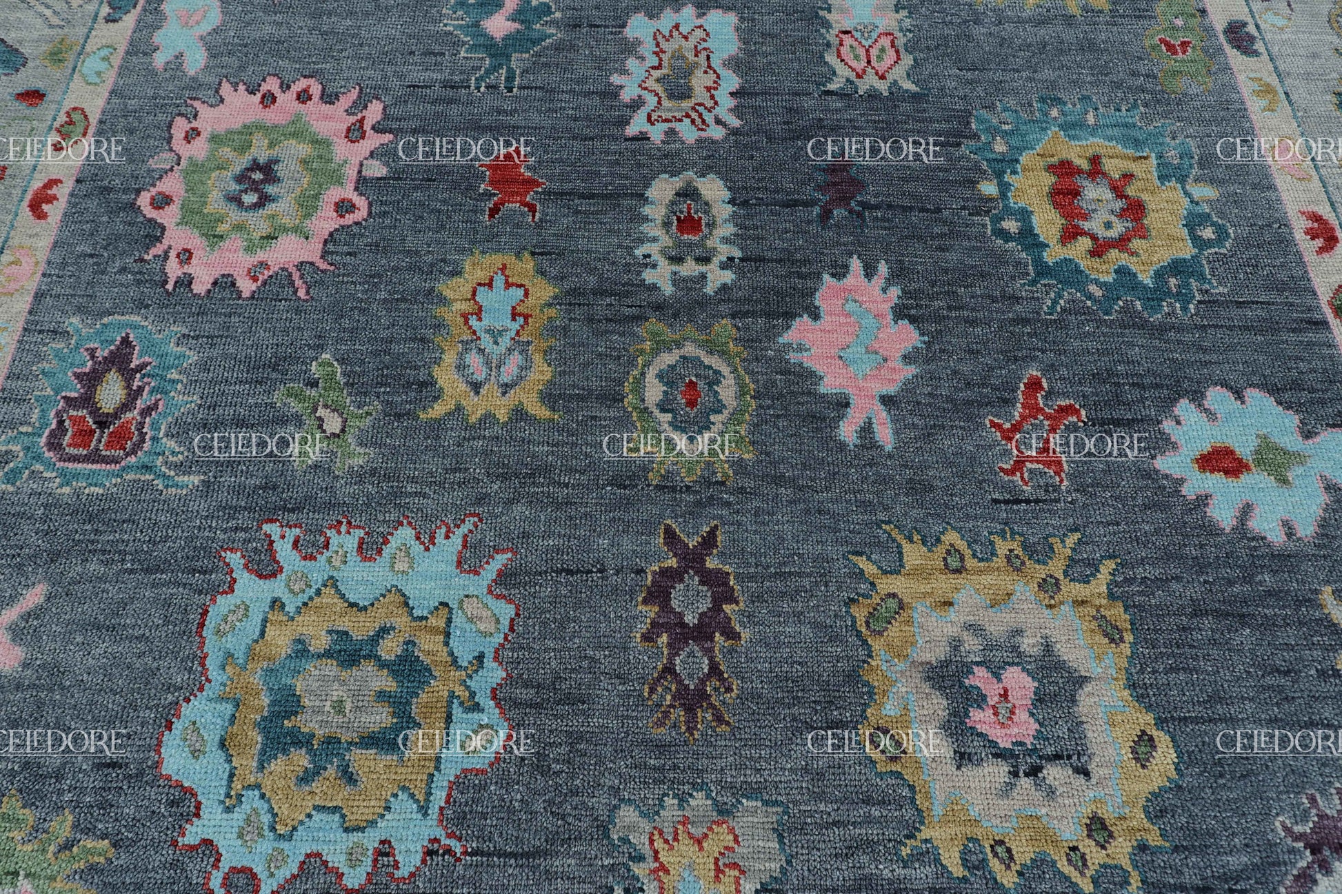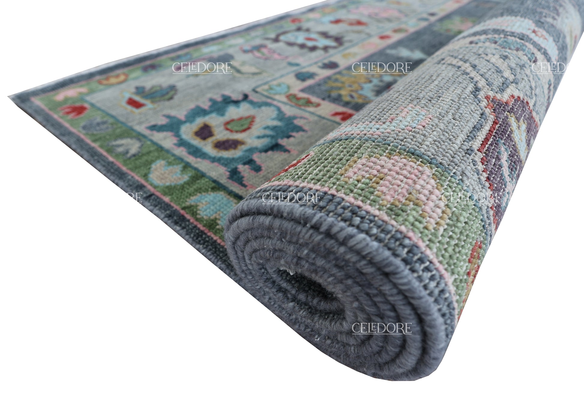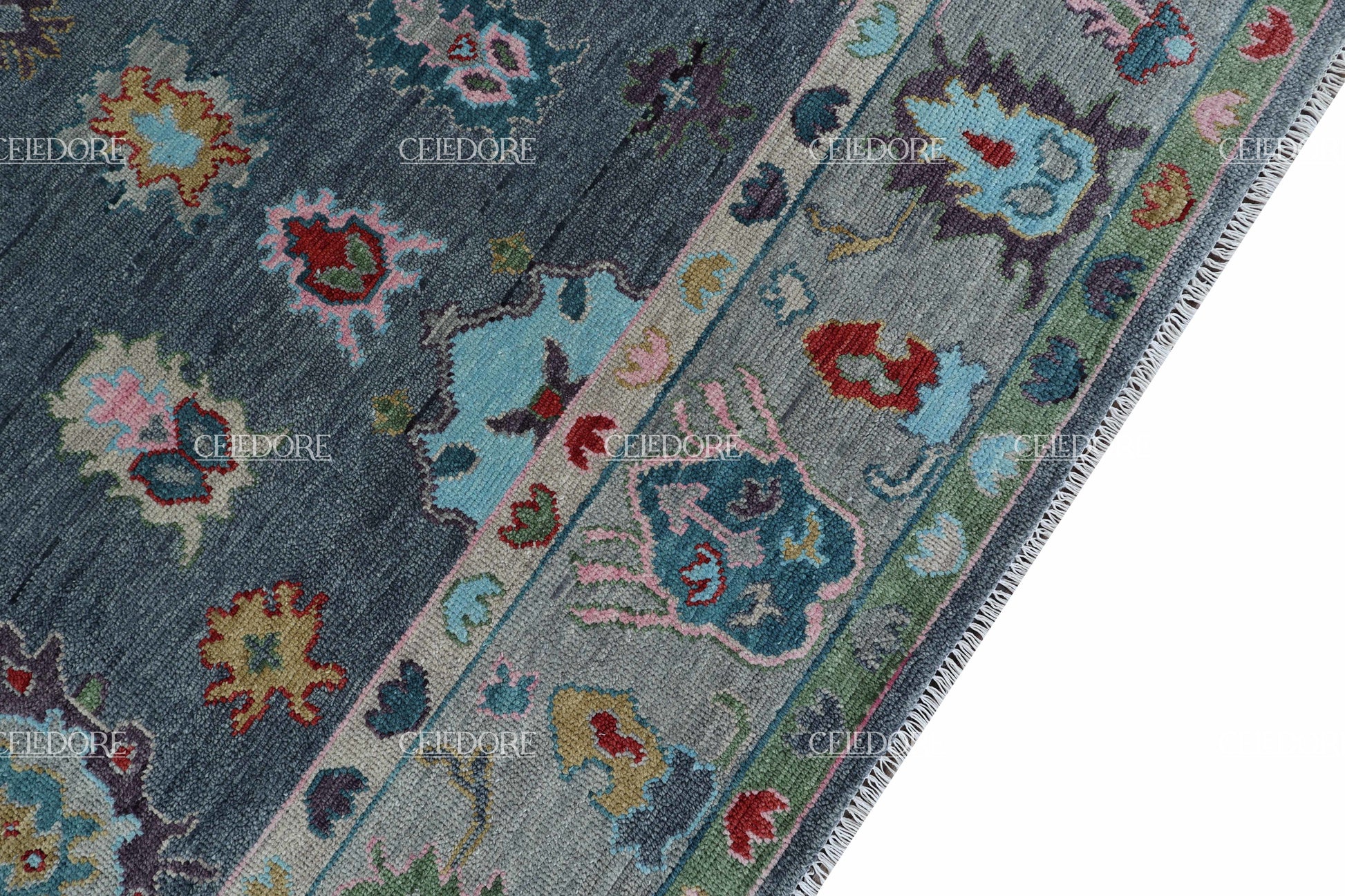 Hand-Knotted Oushak Rug, meticulously crafted with the finest quality wool. This rug embodies the rich tapestry of Indian craftsmanship, blending traditional design with a contemporary twist, reminiscent of the vibrant villages of India.