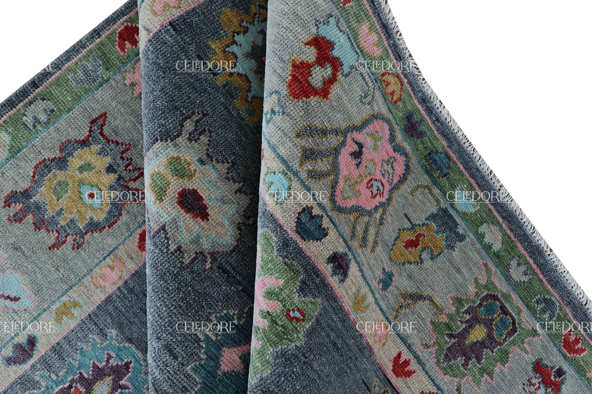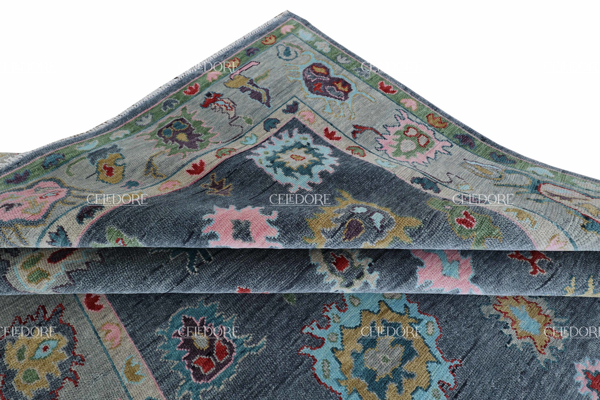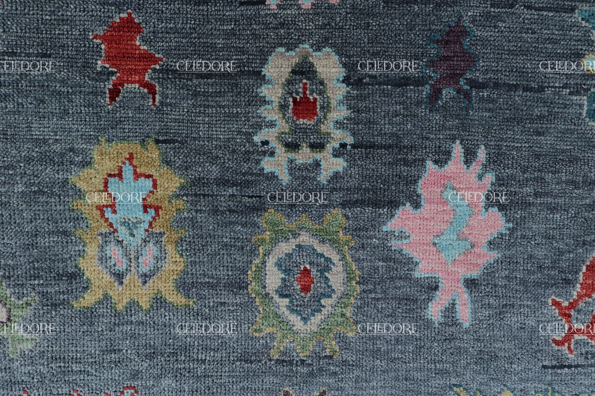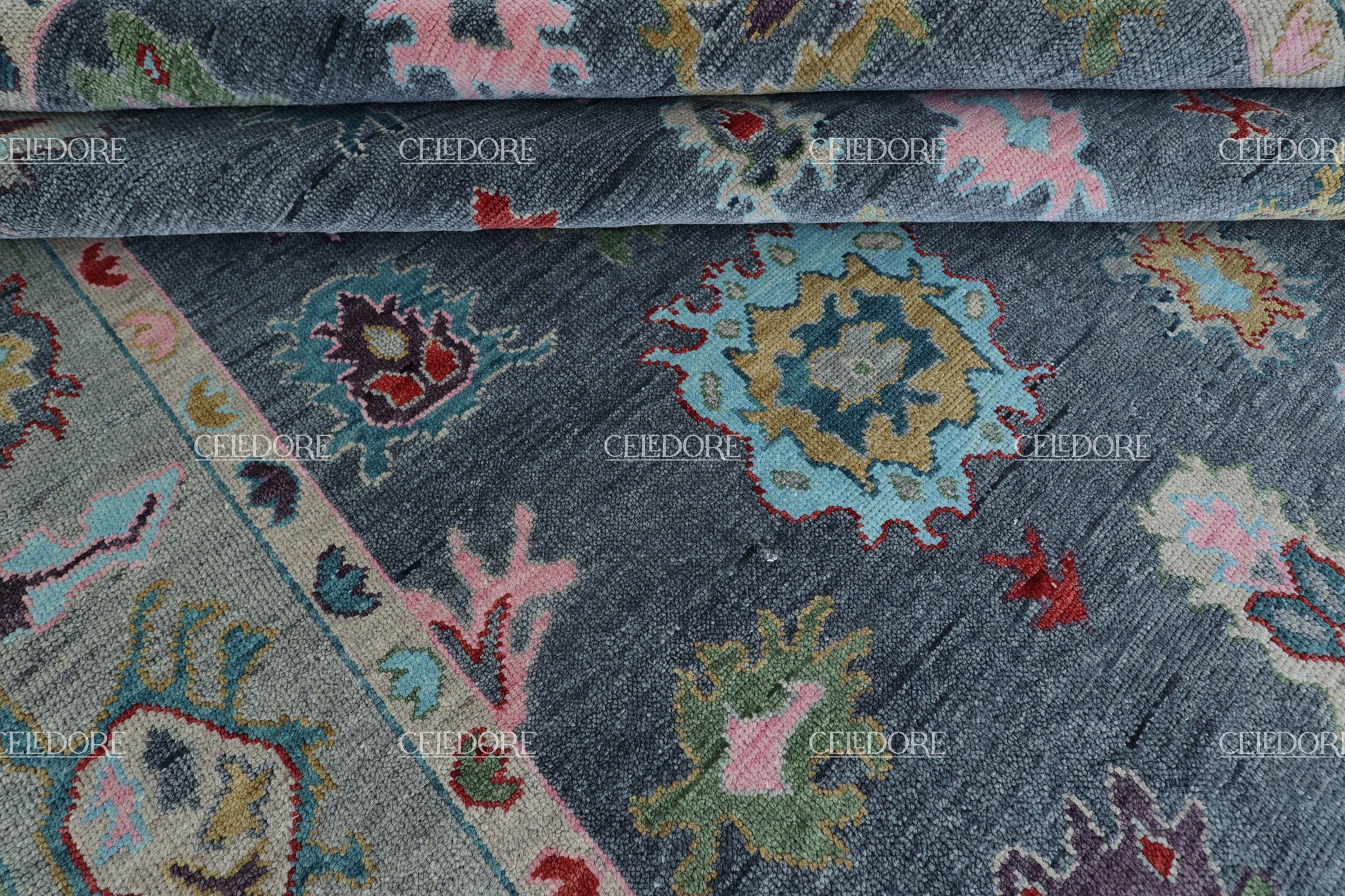 Hand-Knotted Oushak Rug, meticulously crafted with the finest quality wool. This rug embodies the rich tapestry of Indian craftsmanship, blending traditional design with a contemporary twist, reminiscent of the vibrant villages of India.