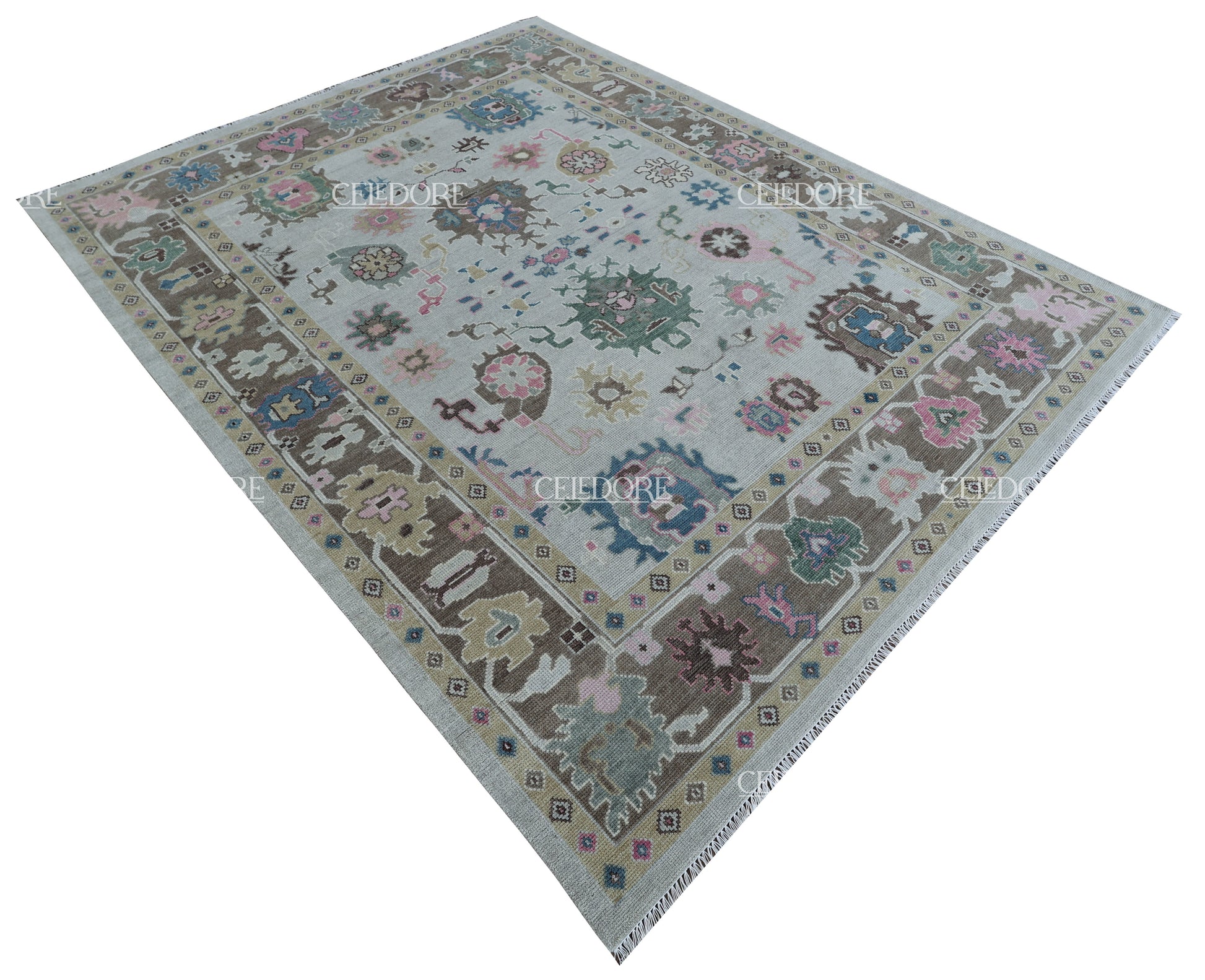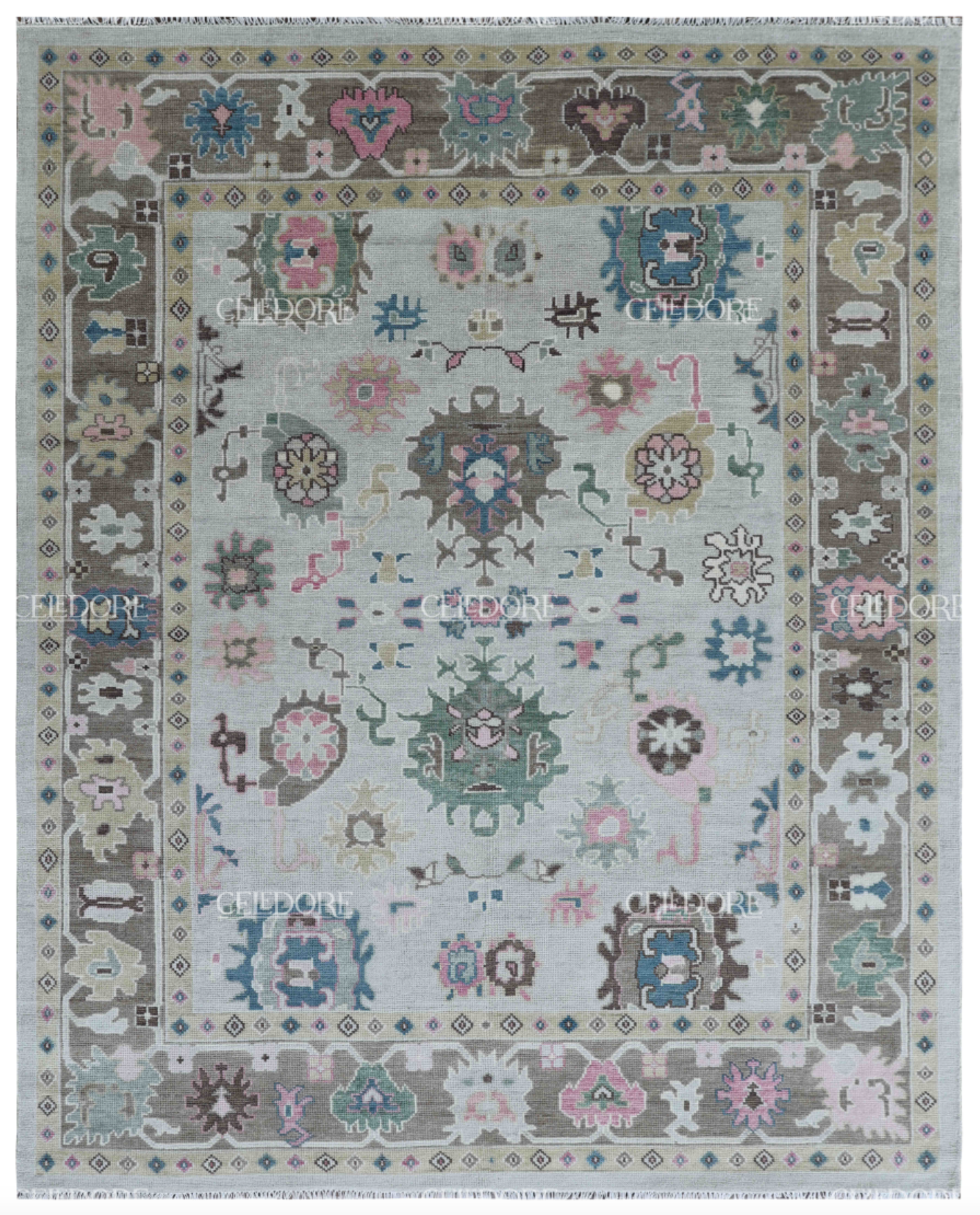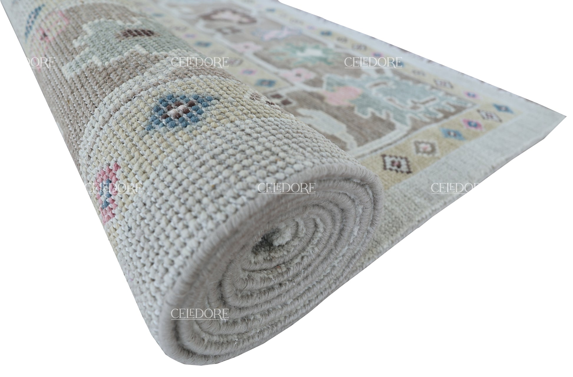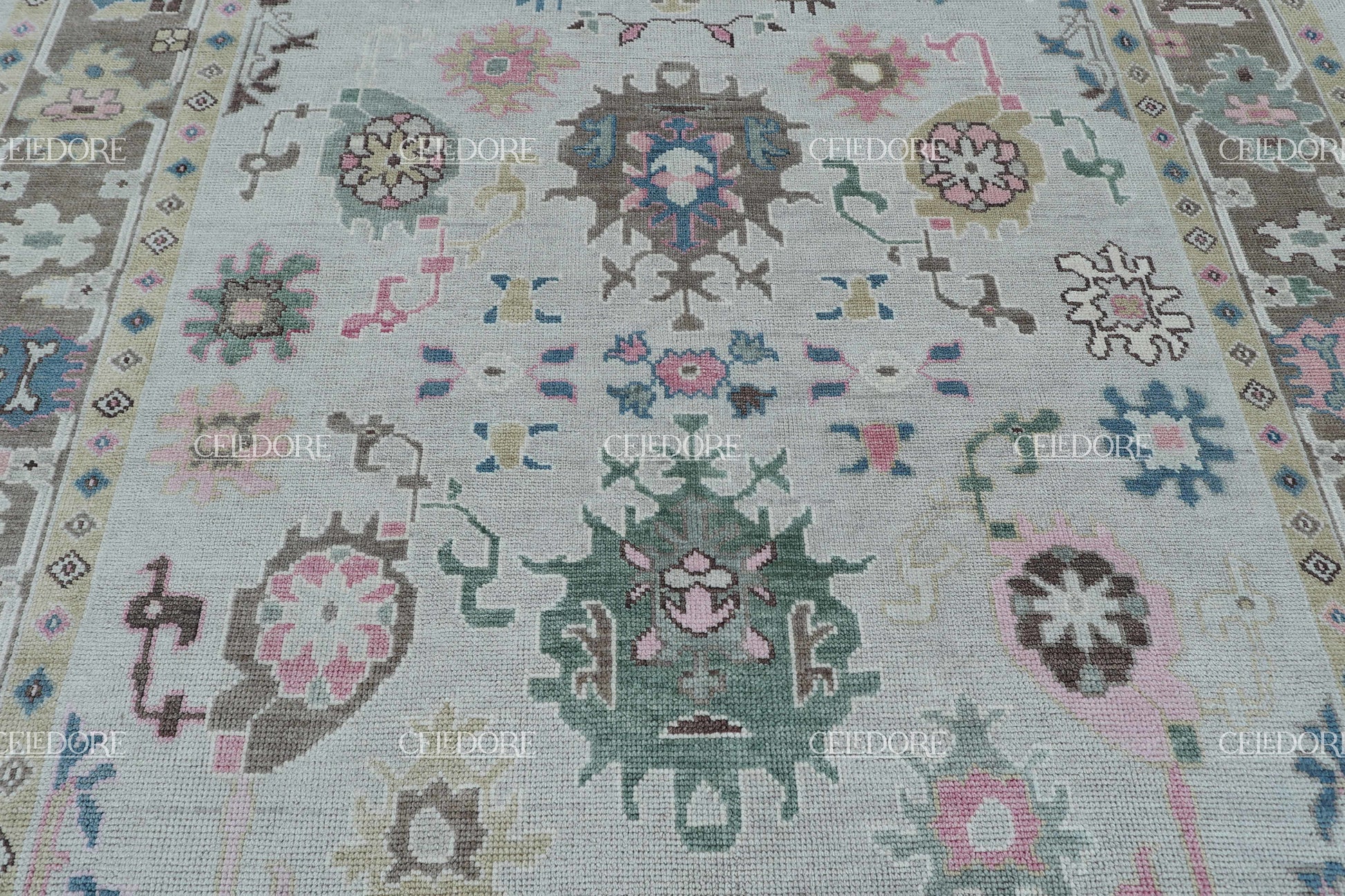 Hand-Knotted Oushak Rug, meticulously crafted with the finest quality wool. This rug embodies the rich tapestry of Indian craftsmanship, blending traditional design with a contemporary twist, reminiscent of the vibrant villages of India.