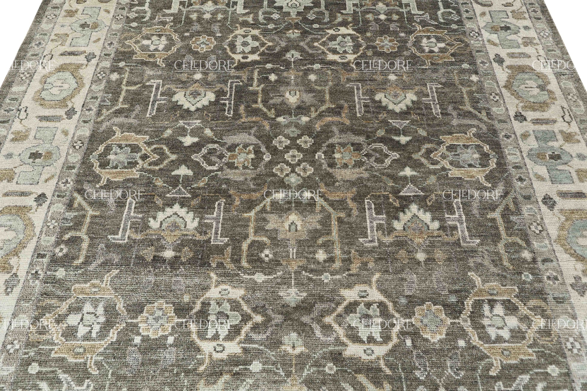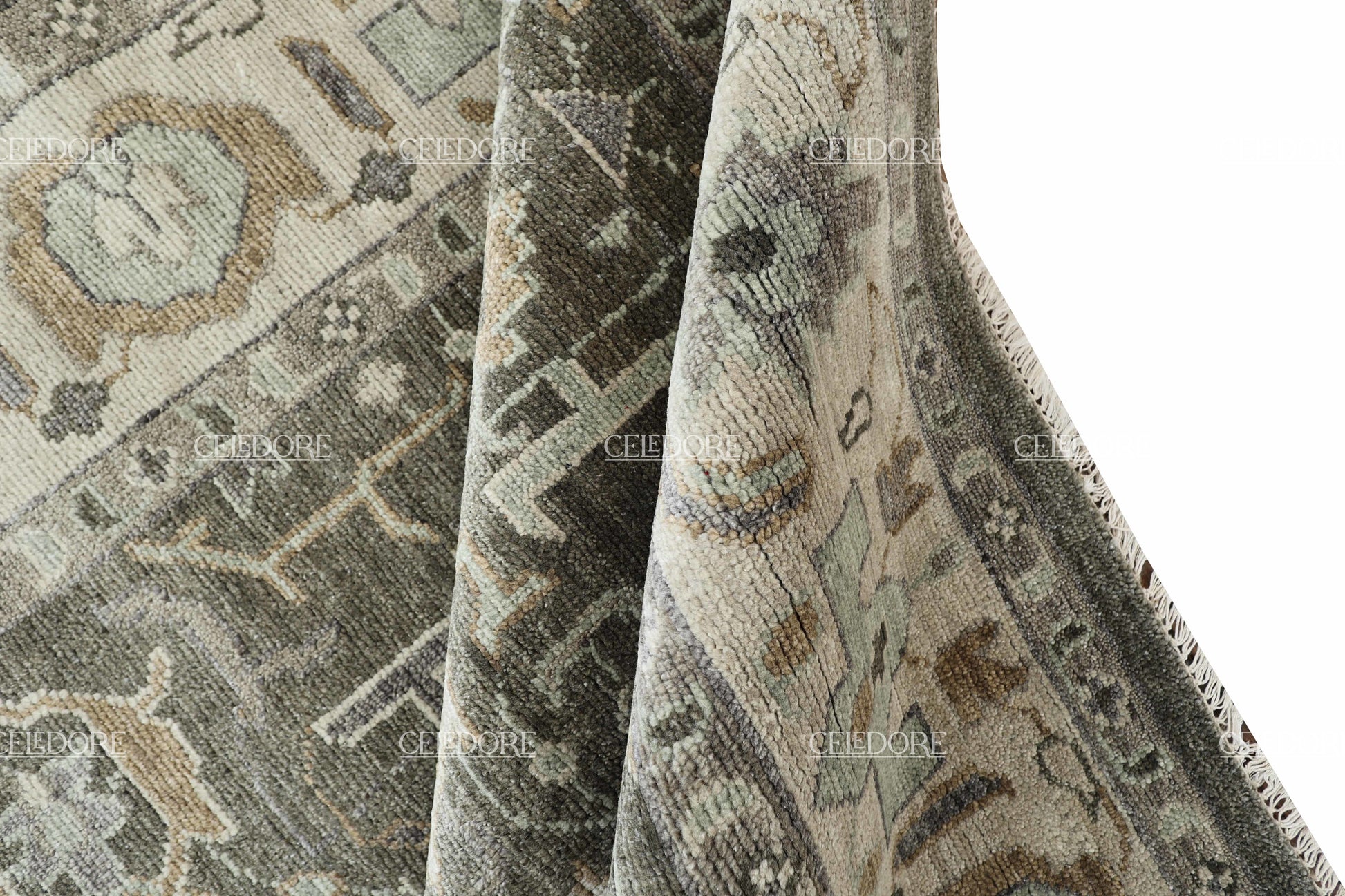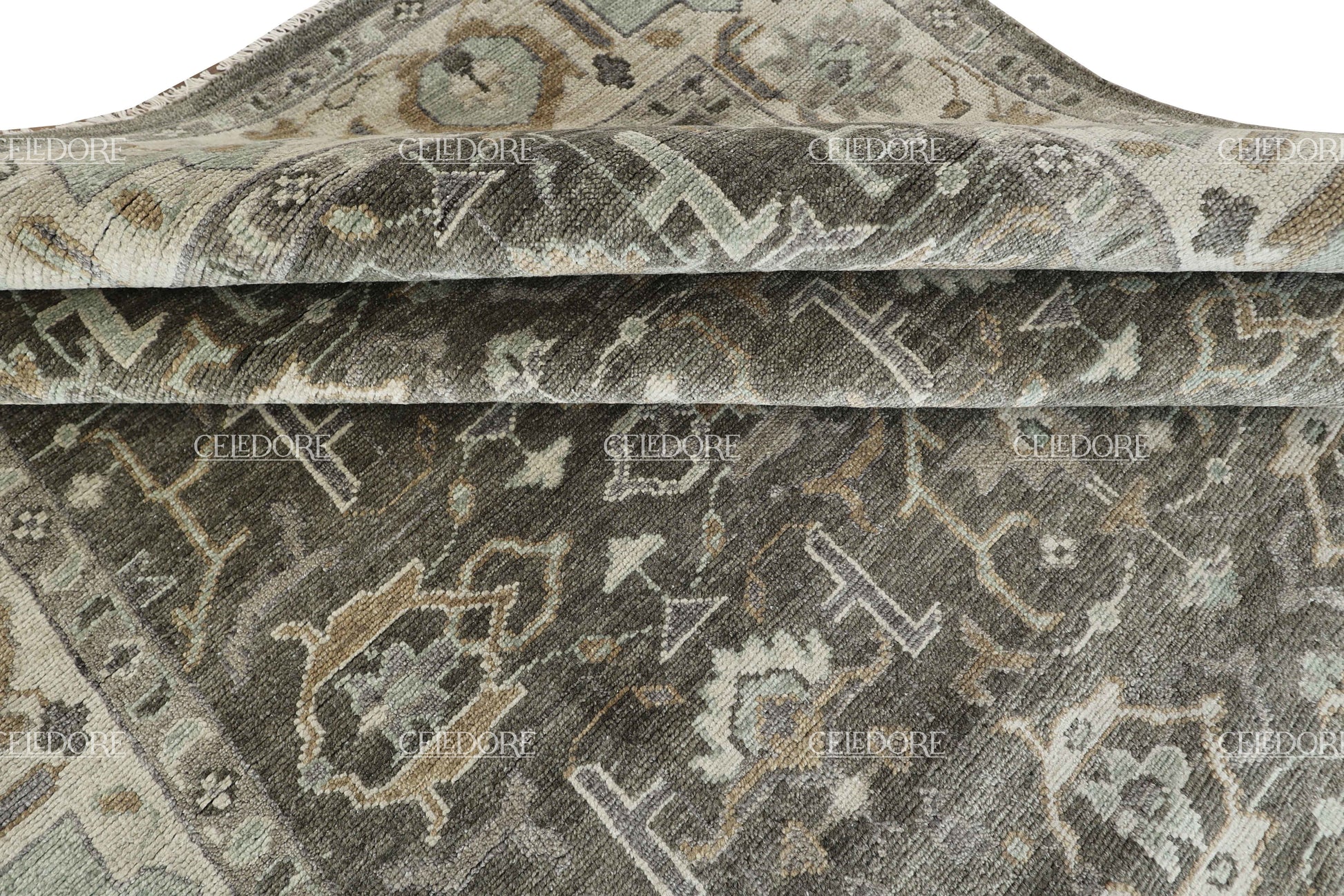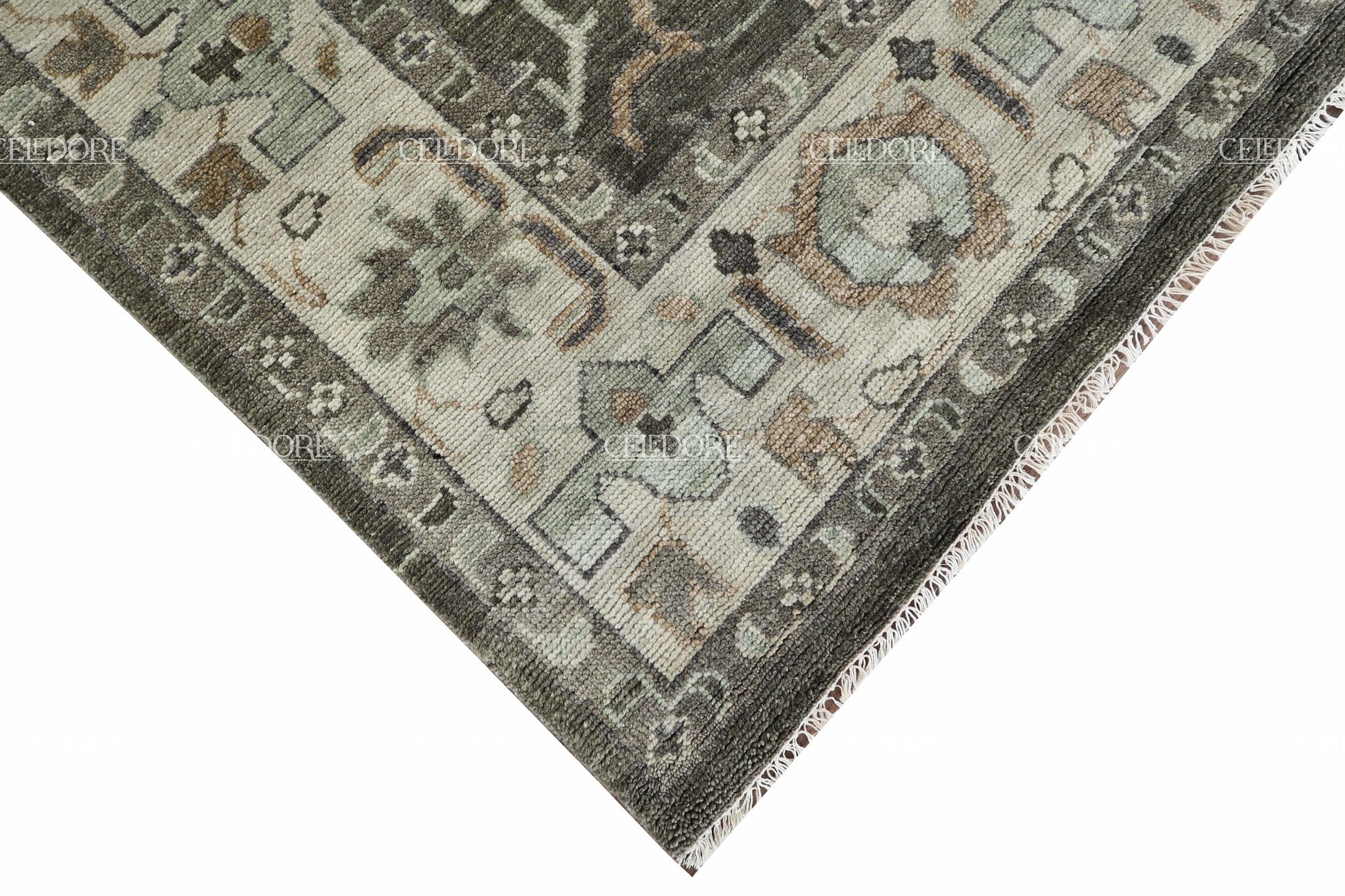 Hand-Knotted Oushak Rug, meticulously crafted with the finest quality wool. This rug embodies the rich tapestry of Indian craftsmanship, blending traditional design with a contemporary twist, reminiscent of the vibrant villages of India.