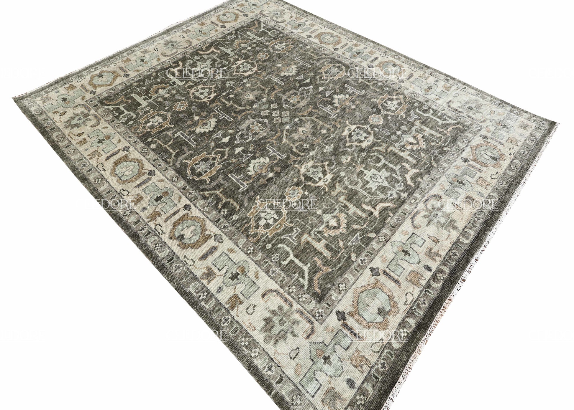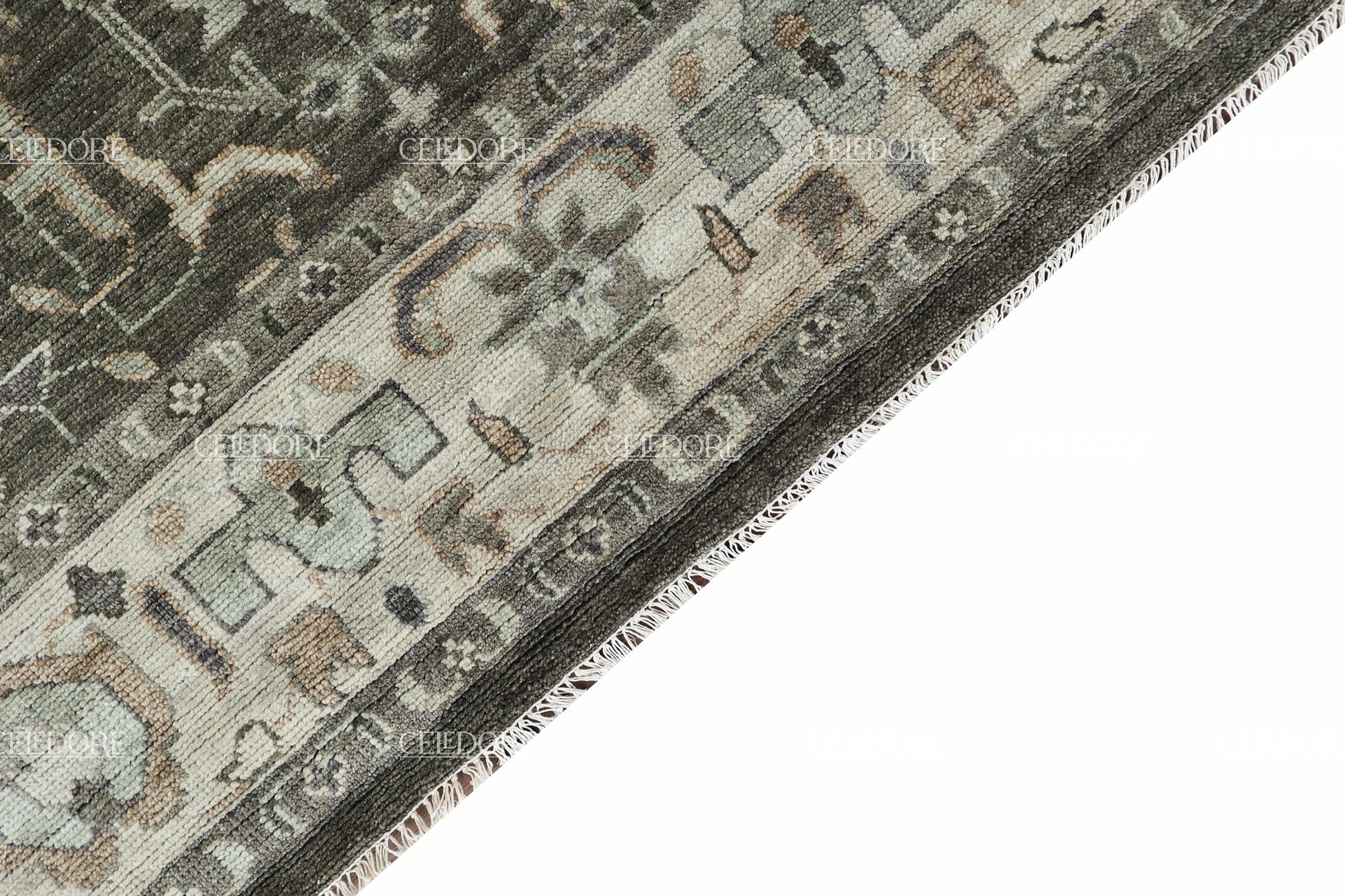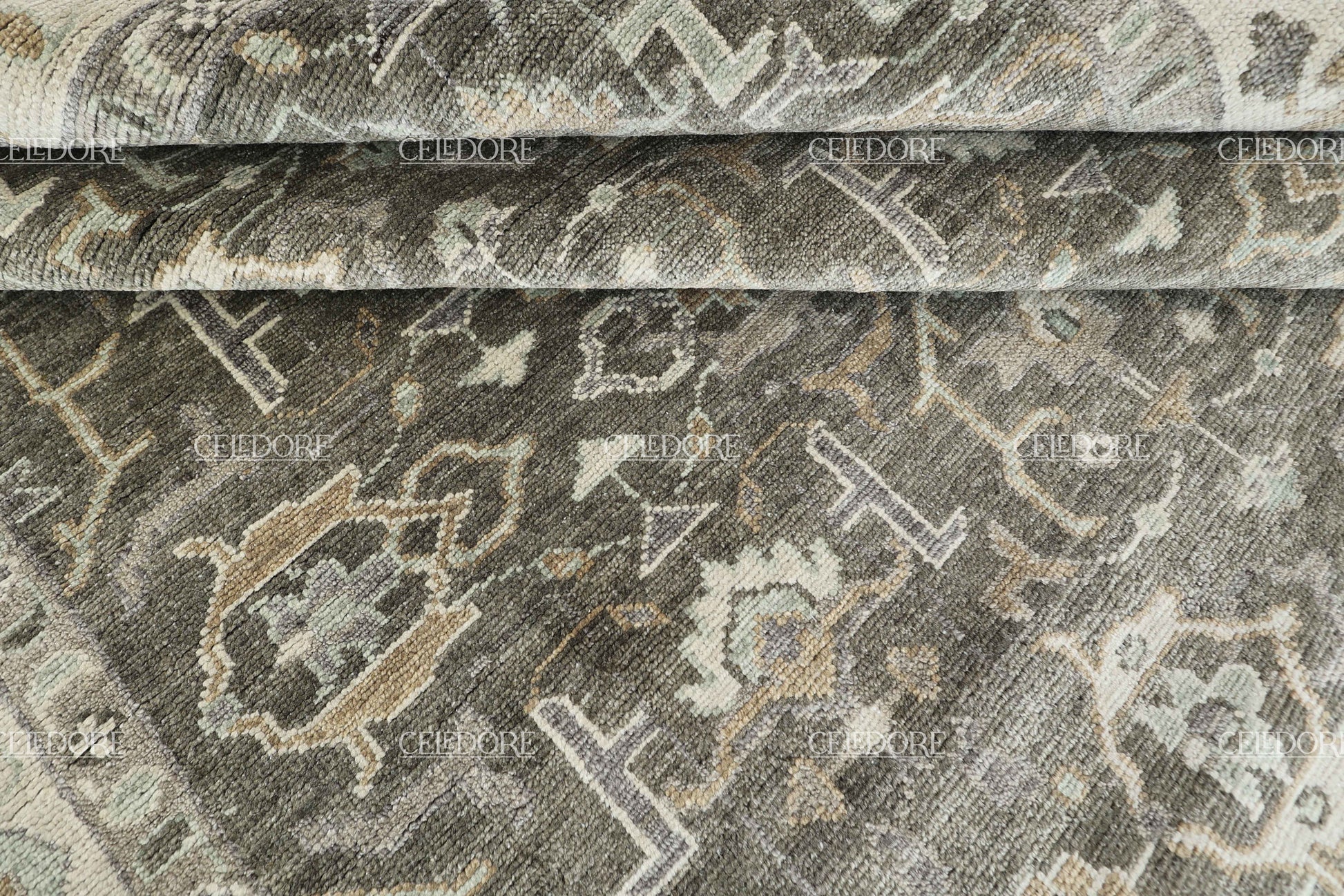 Hand-Knotted Oushak Rug, meticulously crafted with the finest quality wool. This rug embodies the rich tapestry of Indian craftsmanship, blending traditional design with a contemporary twist, reminiscent of the vibrant villages of India.