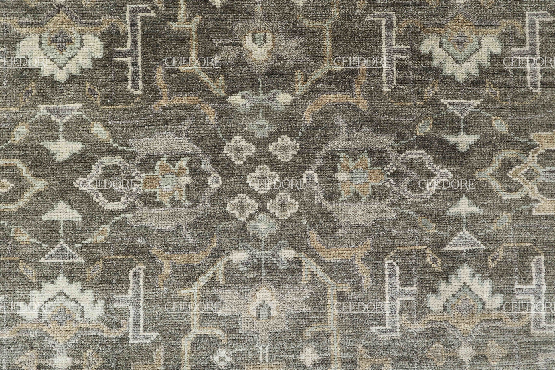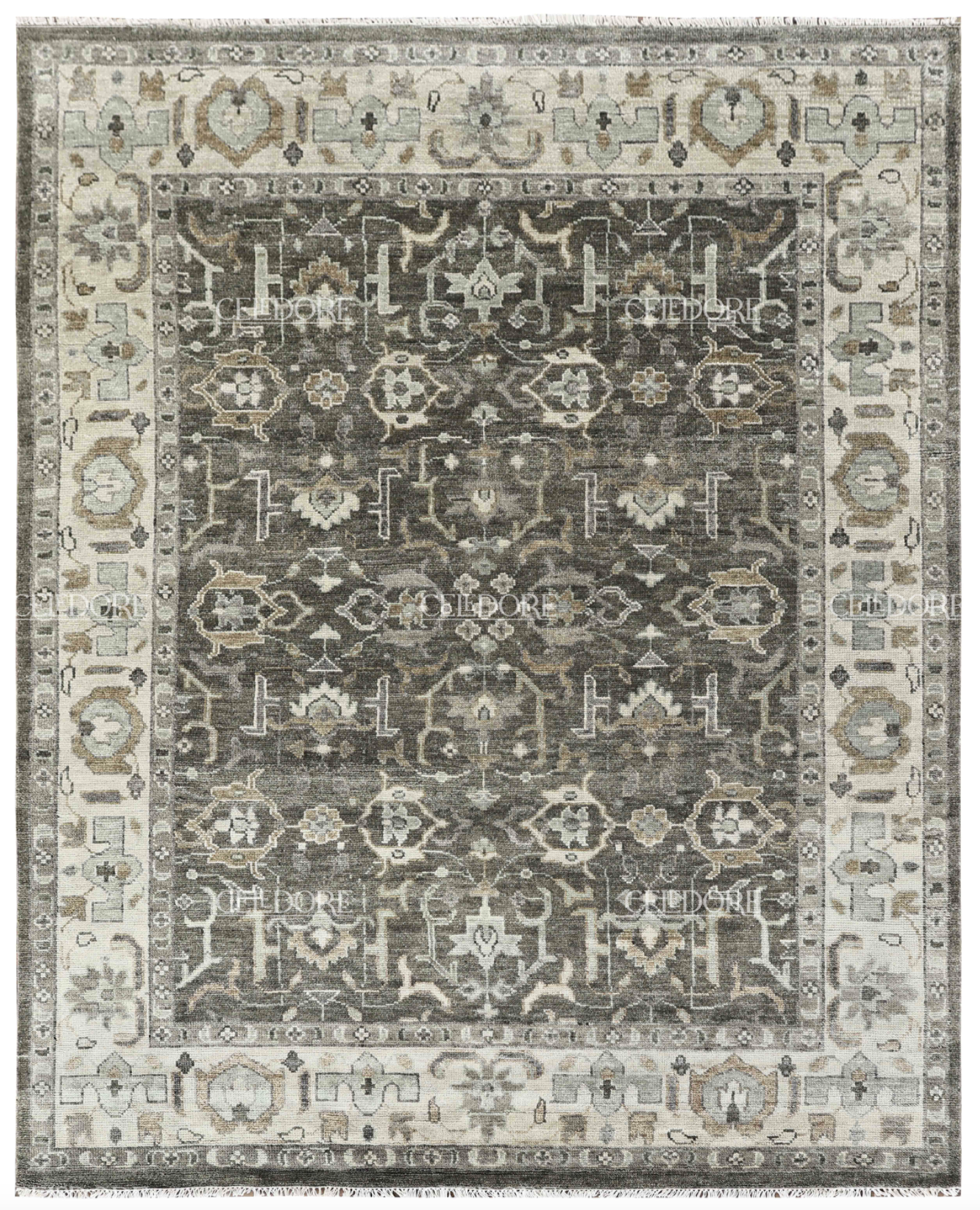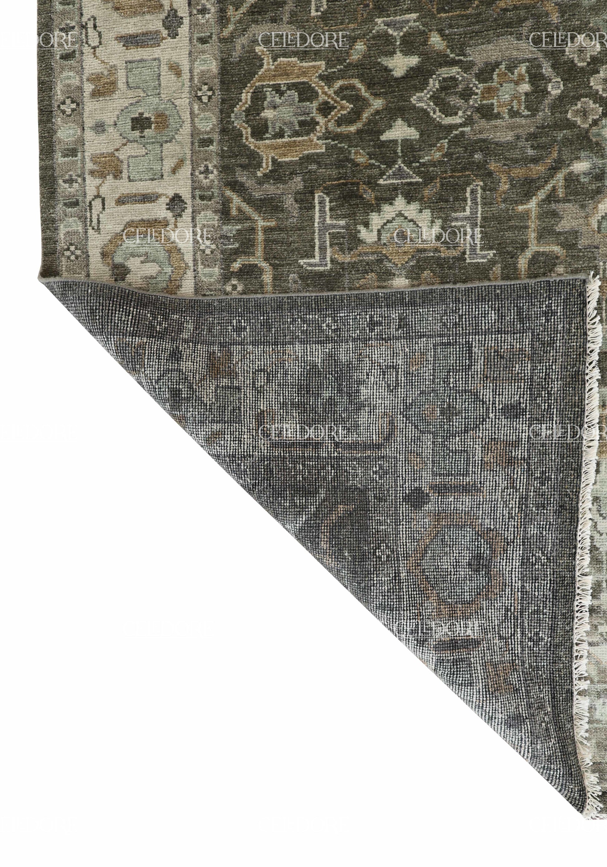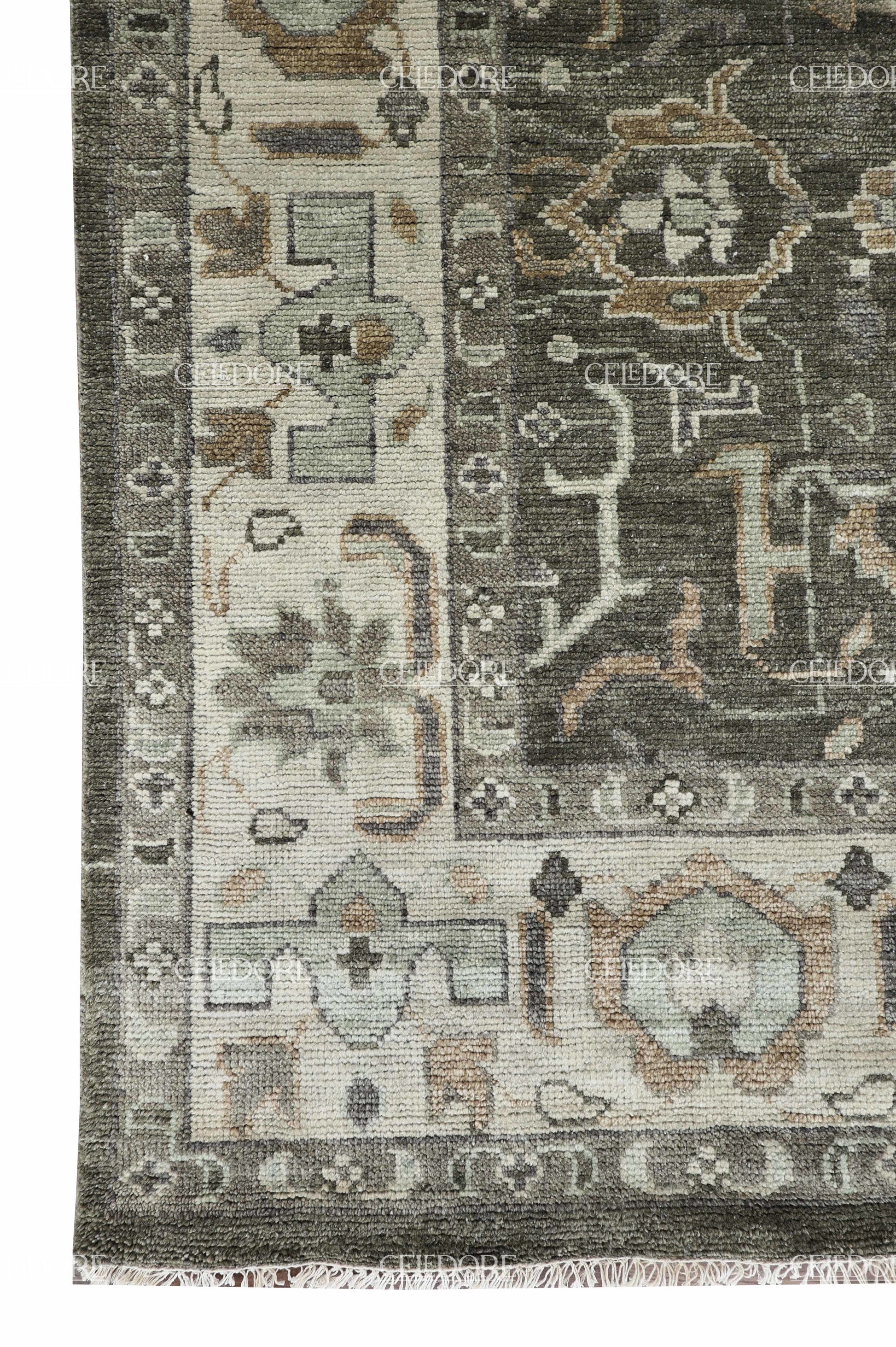 Hand-Knotted Oushak Rug, meticulously crafted with the finest quality wool. This rug embodies the rich tapestry of Indian craftsmanship, blending traditional design with a contemporary twist, reminiscent of the vibrant villages of India.