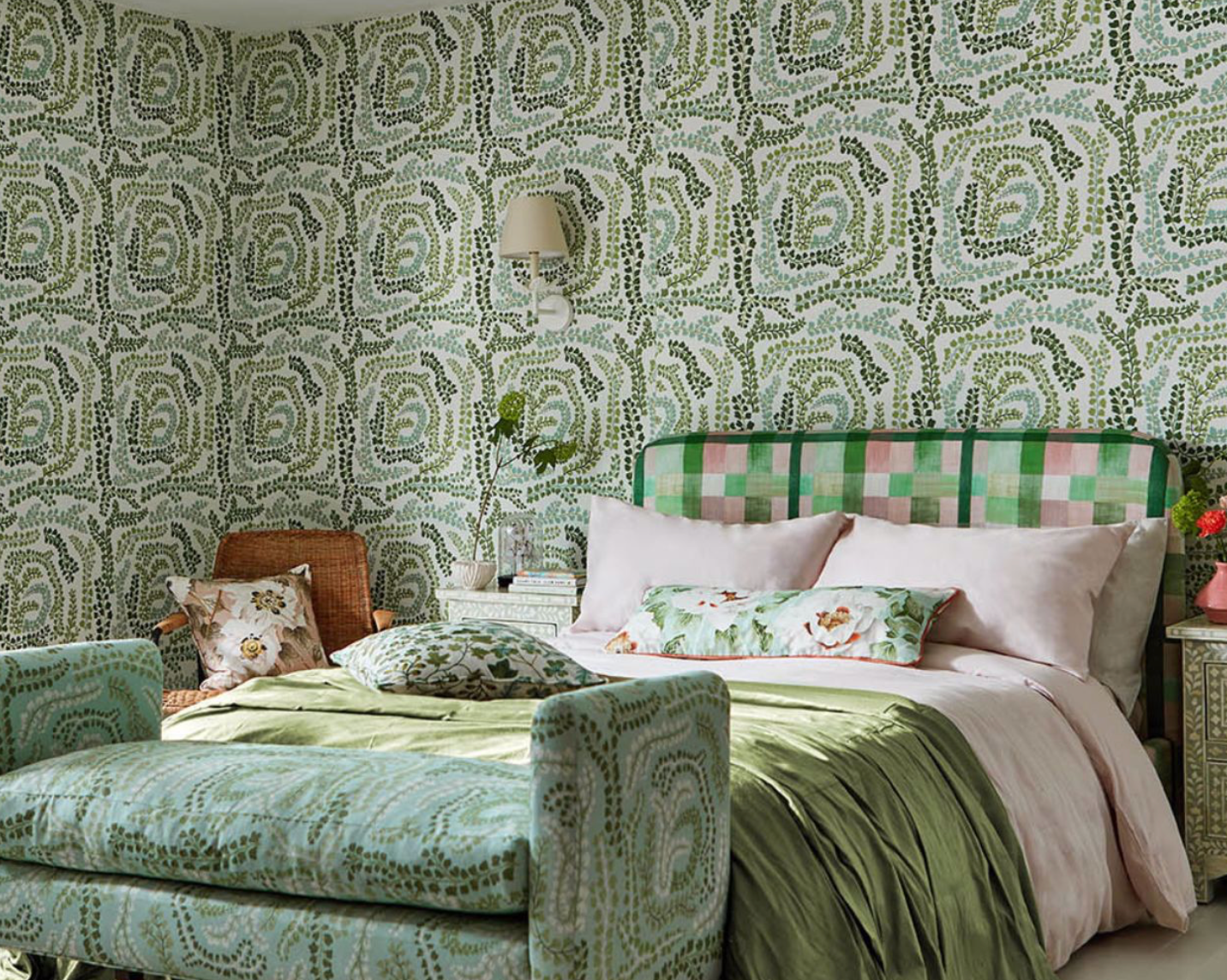 Imagine feeling cocooned by the calmness of nature and making patterns with favourite sprigs and delicate leaves. Inspired by wild clover and maidenhair fern, this stylised wallpaper reflects the semi-permanency of woodland art. Surface printing allows for a slightly naïve, handmade look.