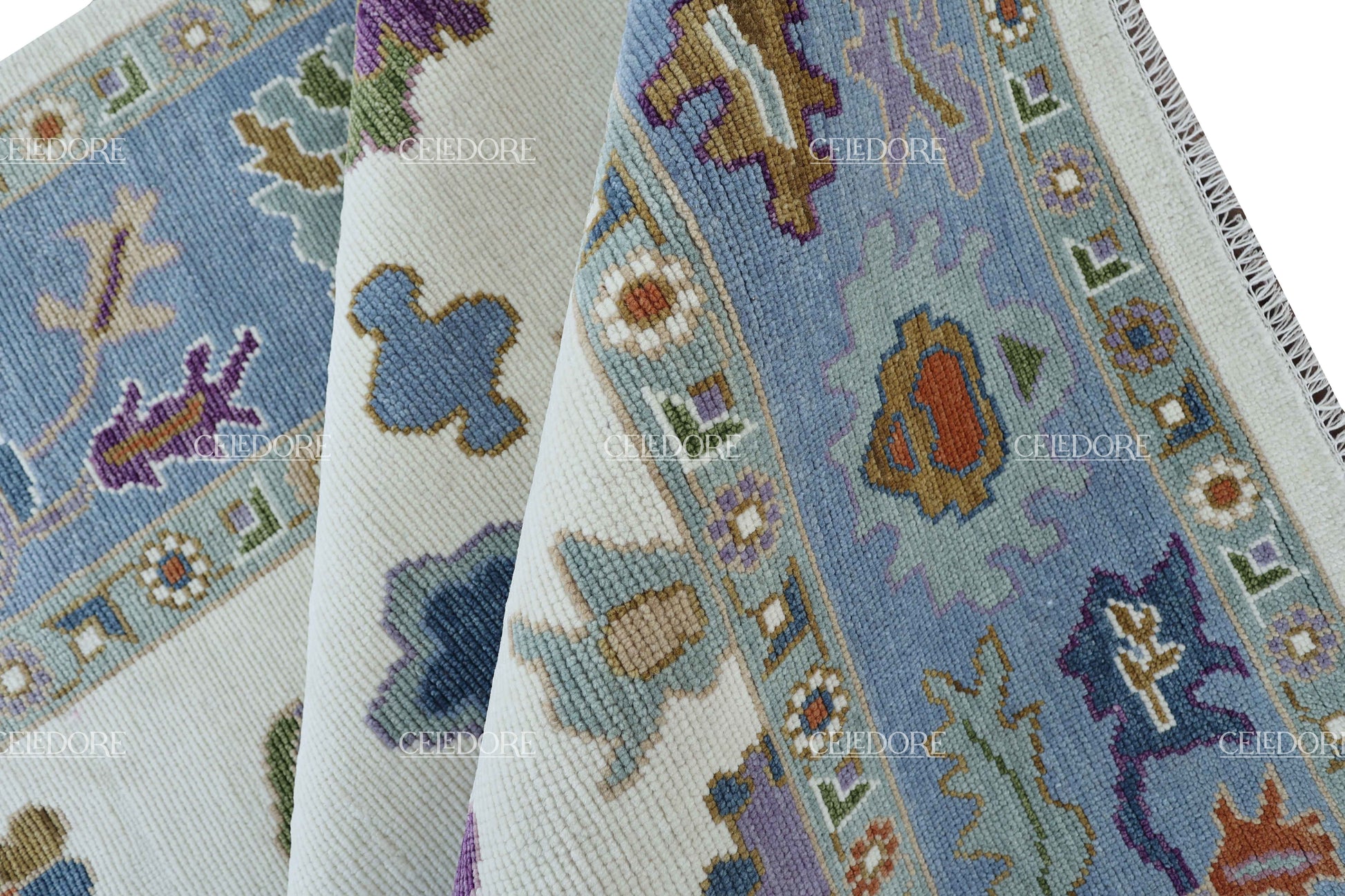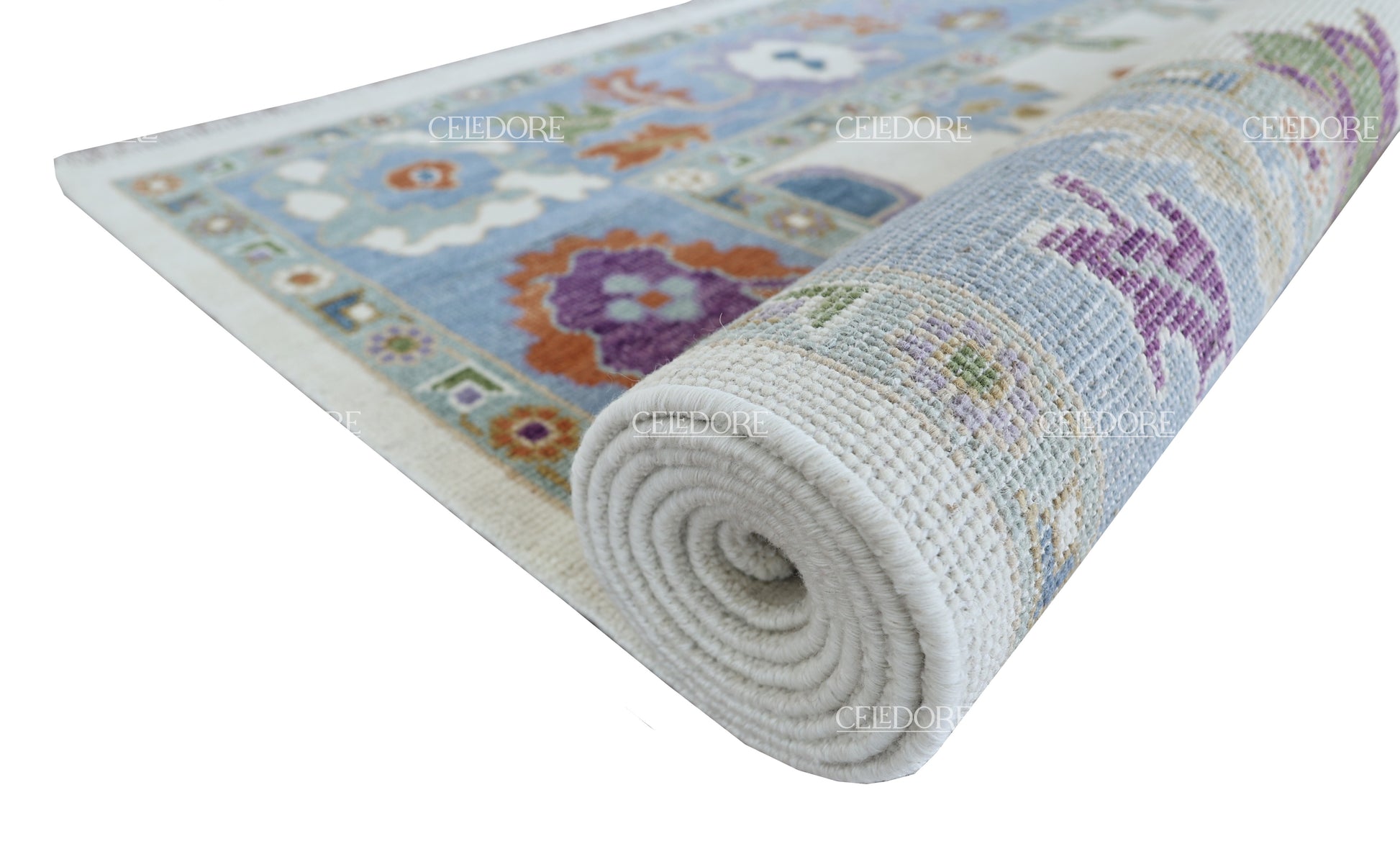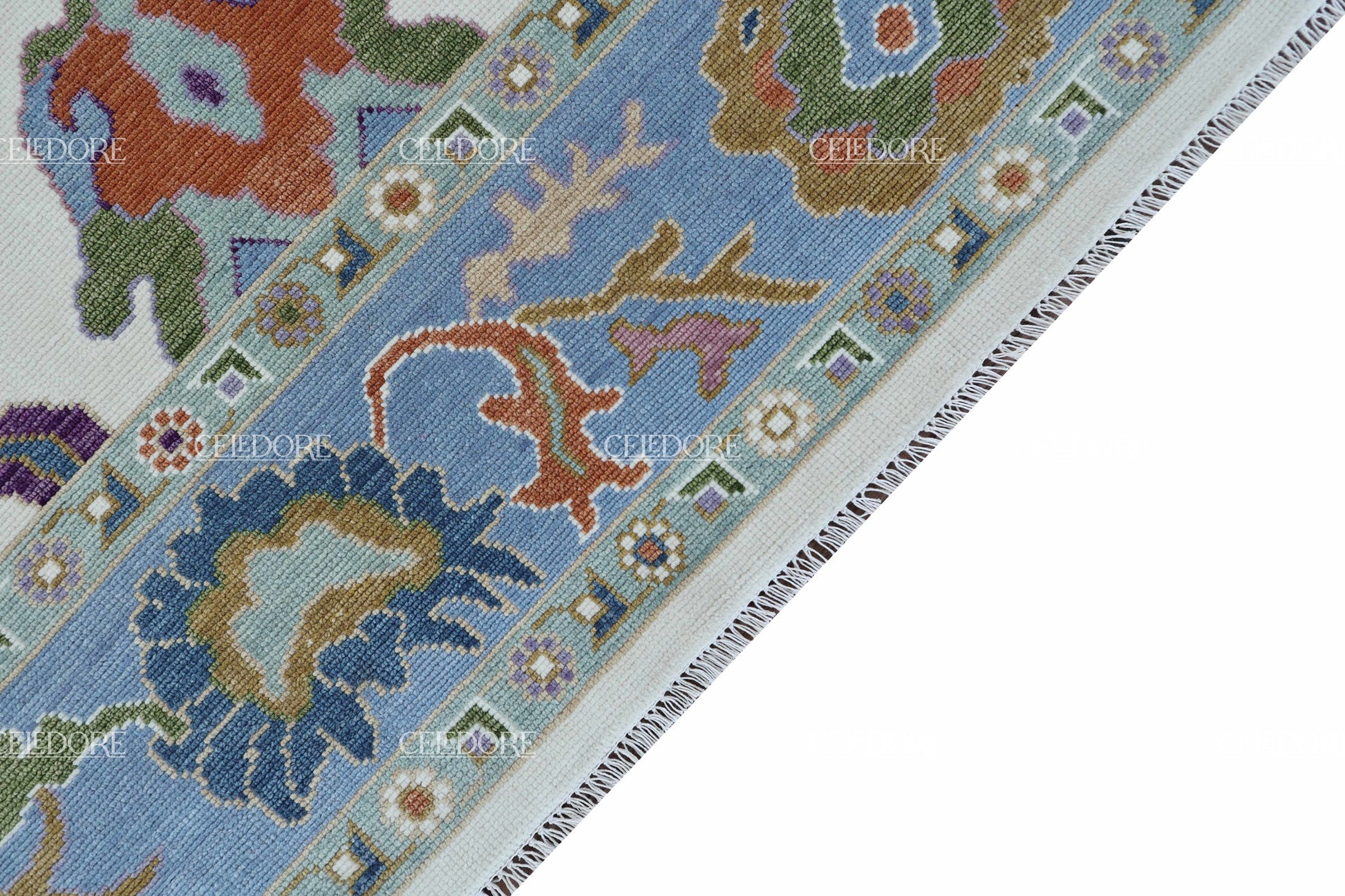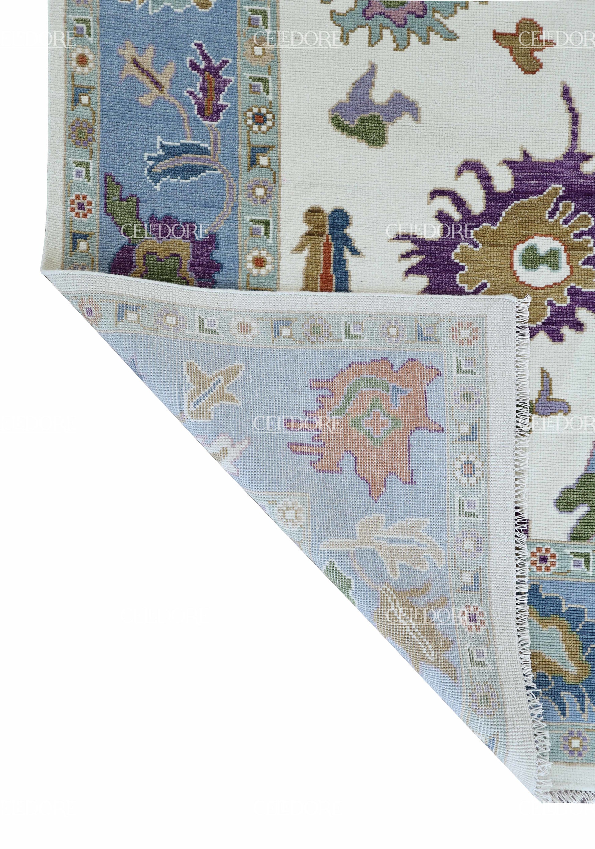 Hand-Knotted Oushak Rug, meticulously crafted with the finest quality wool. This rug embodies the rich tapestry of Indian craftsmanship, blending traditional design with a contemporary twist, reminiscent of the vibrant villages of India.