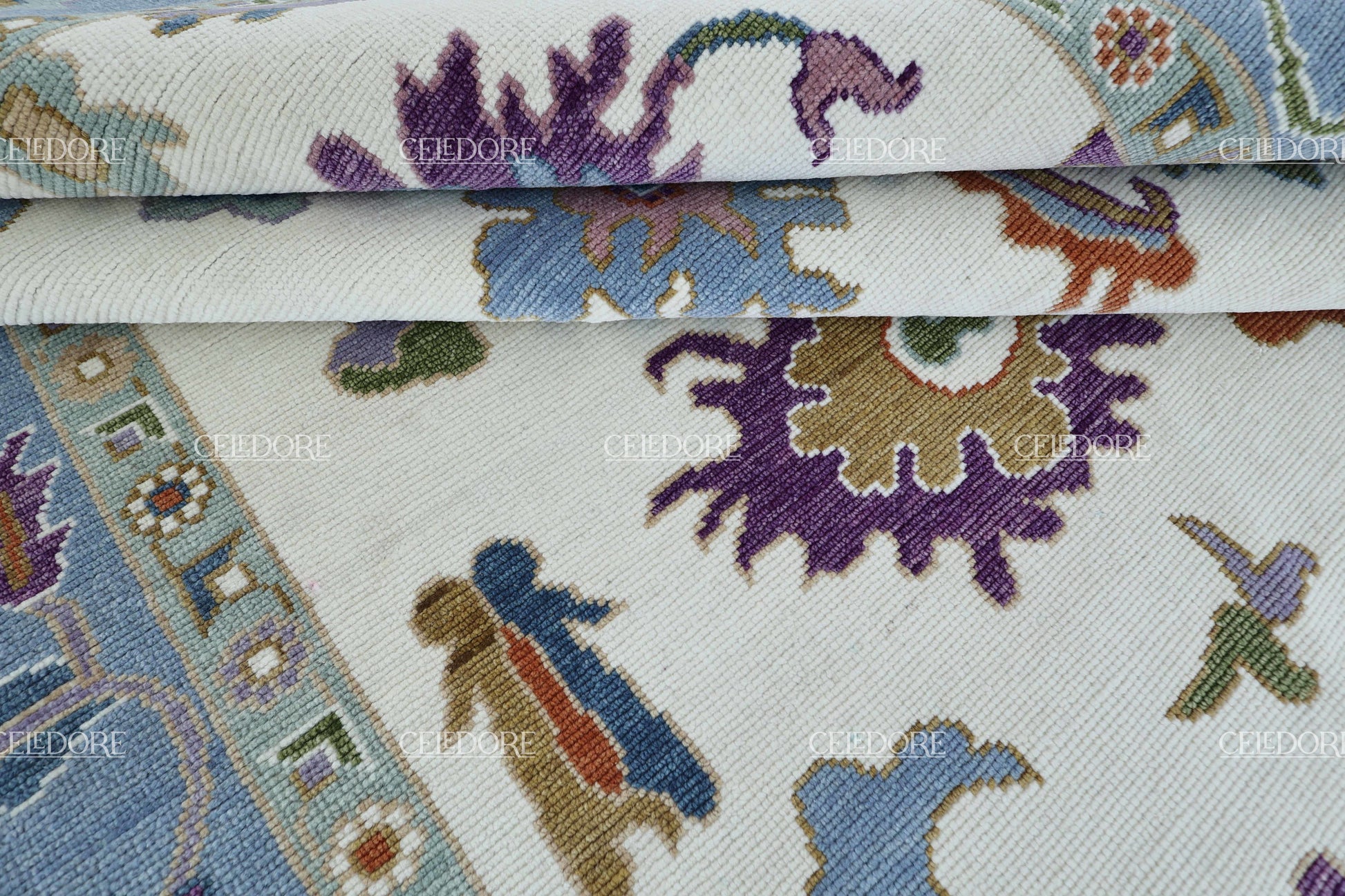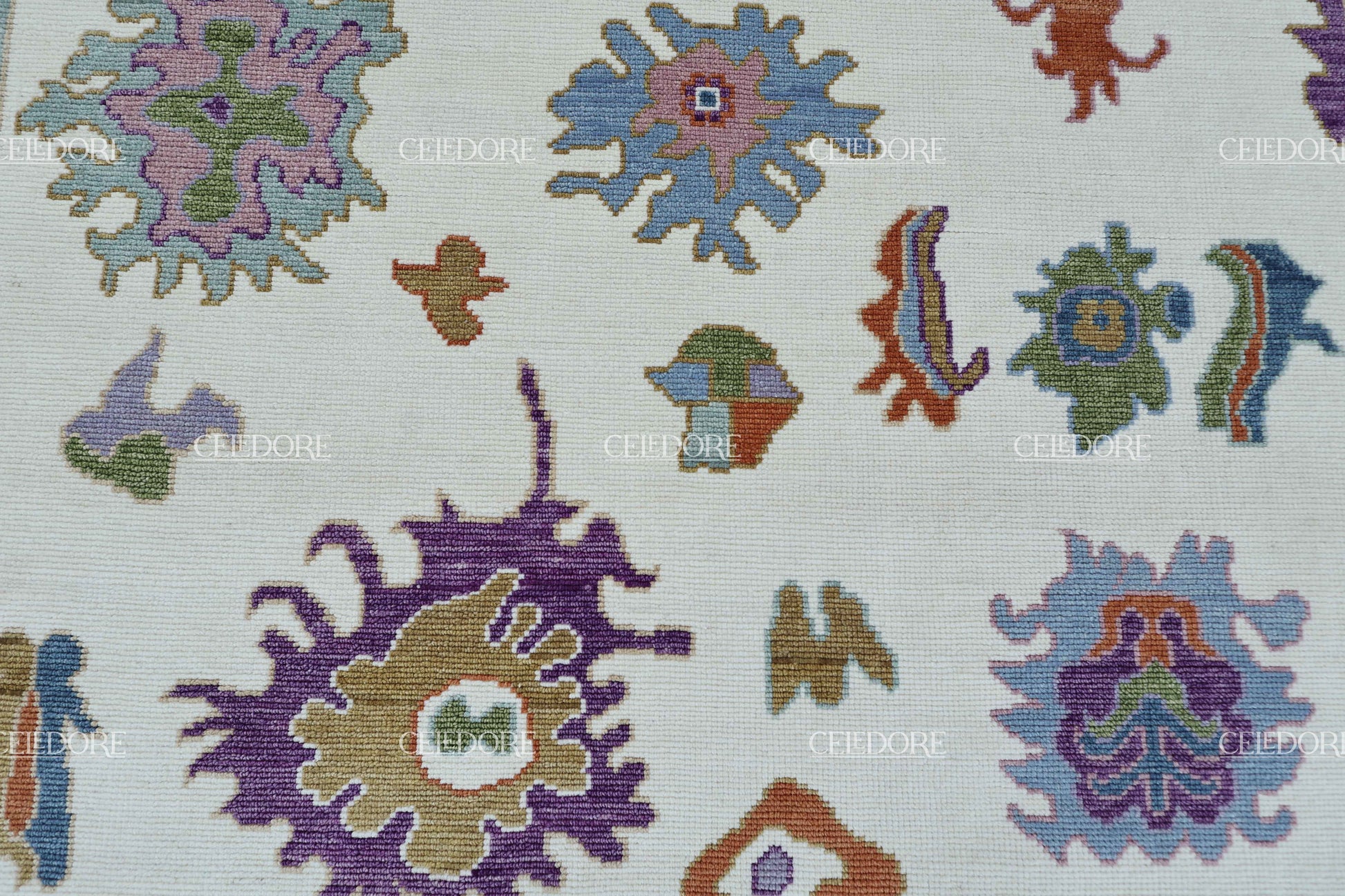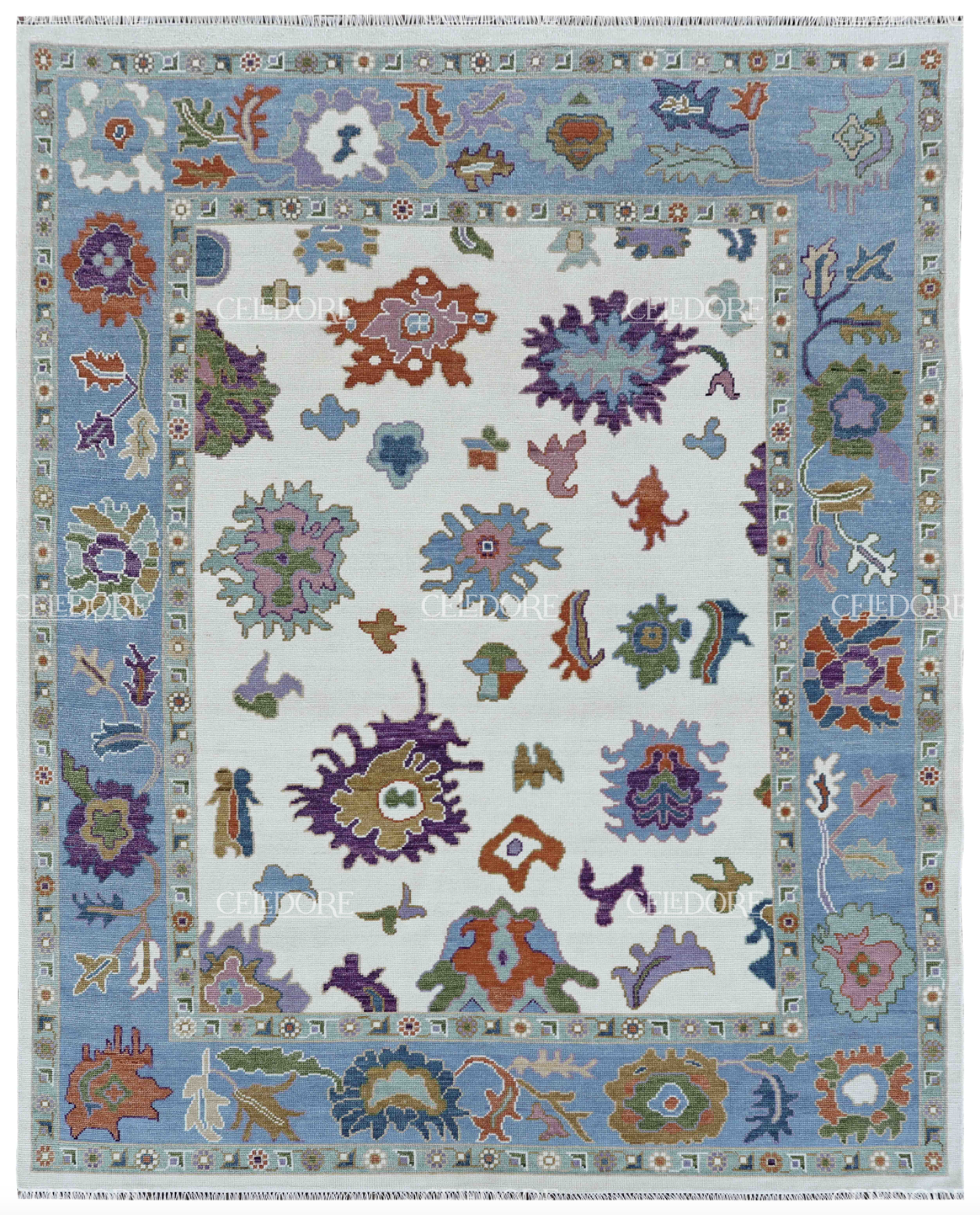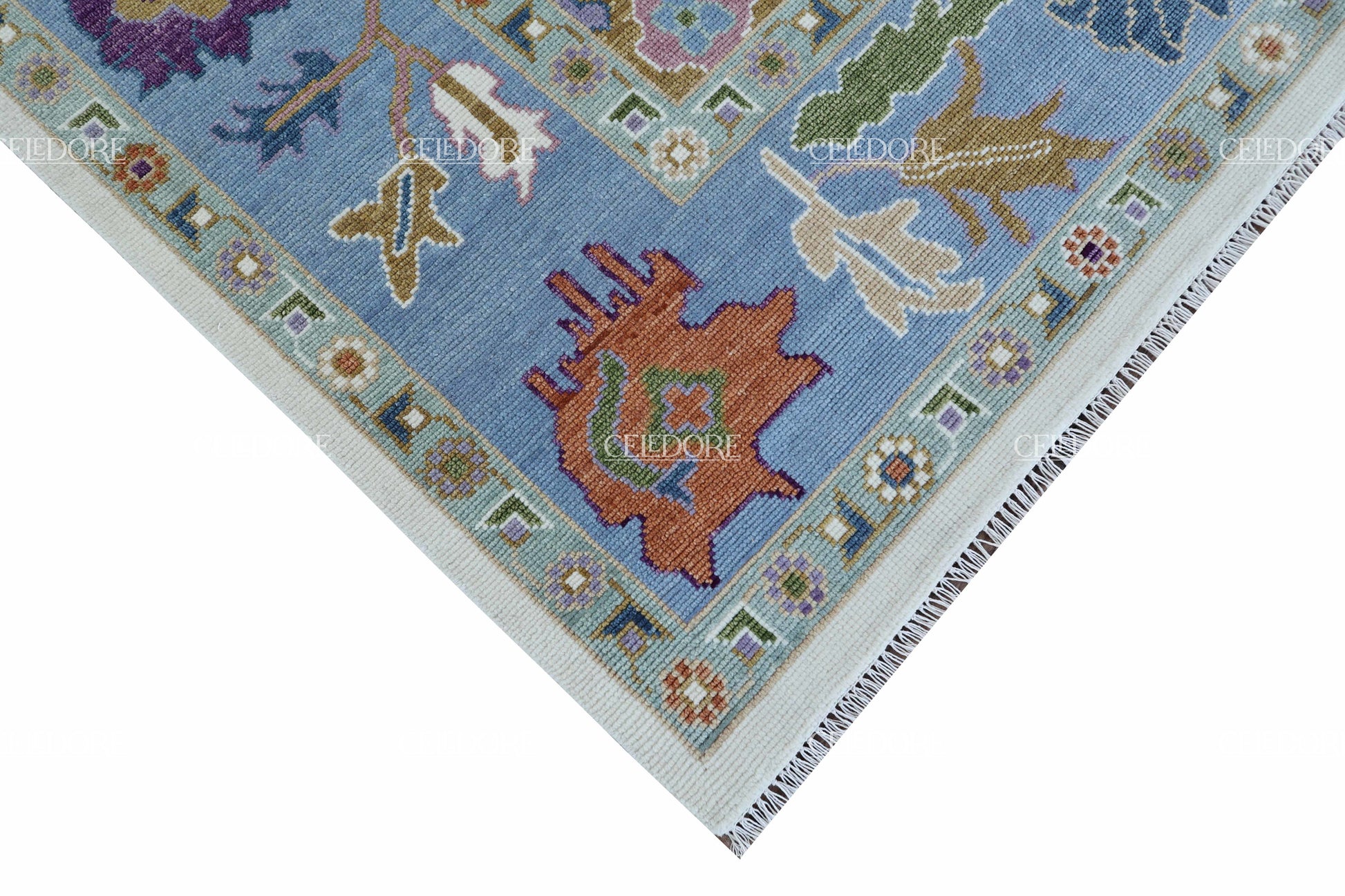 Hand-Knotted Oushak Rug, meticulously crafted with the finest quality wool. This rug embodies the rich tapestry of Indian craftsmanship, blending traditional design with a contemporary twist, reminiscent of the vibrant villages of India.