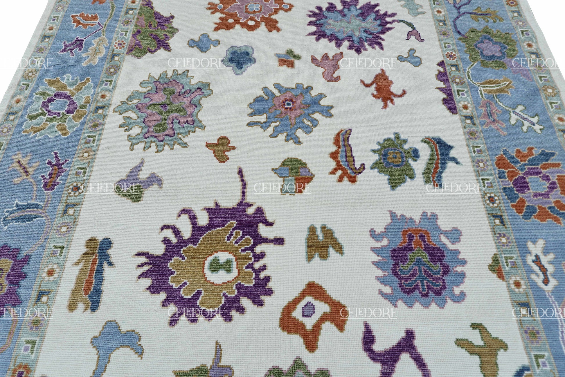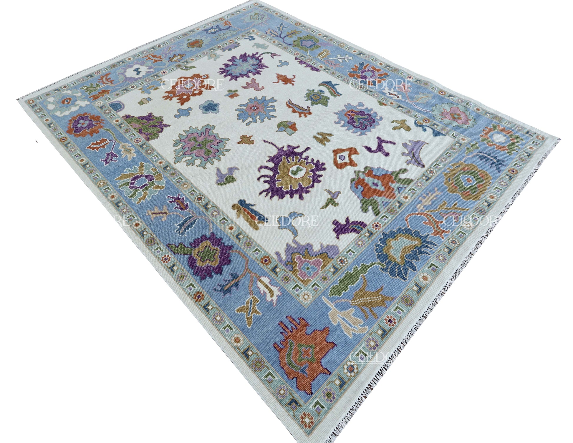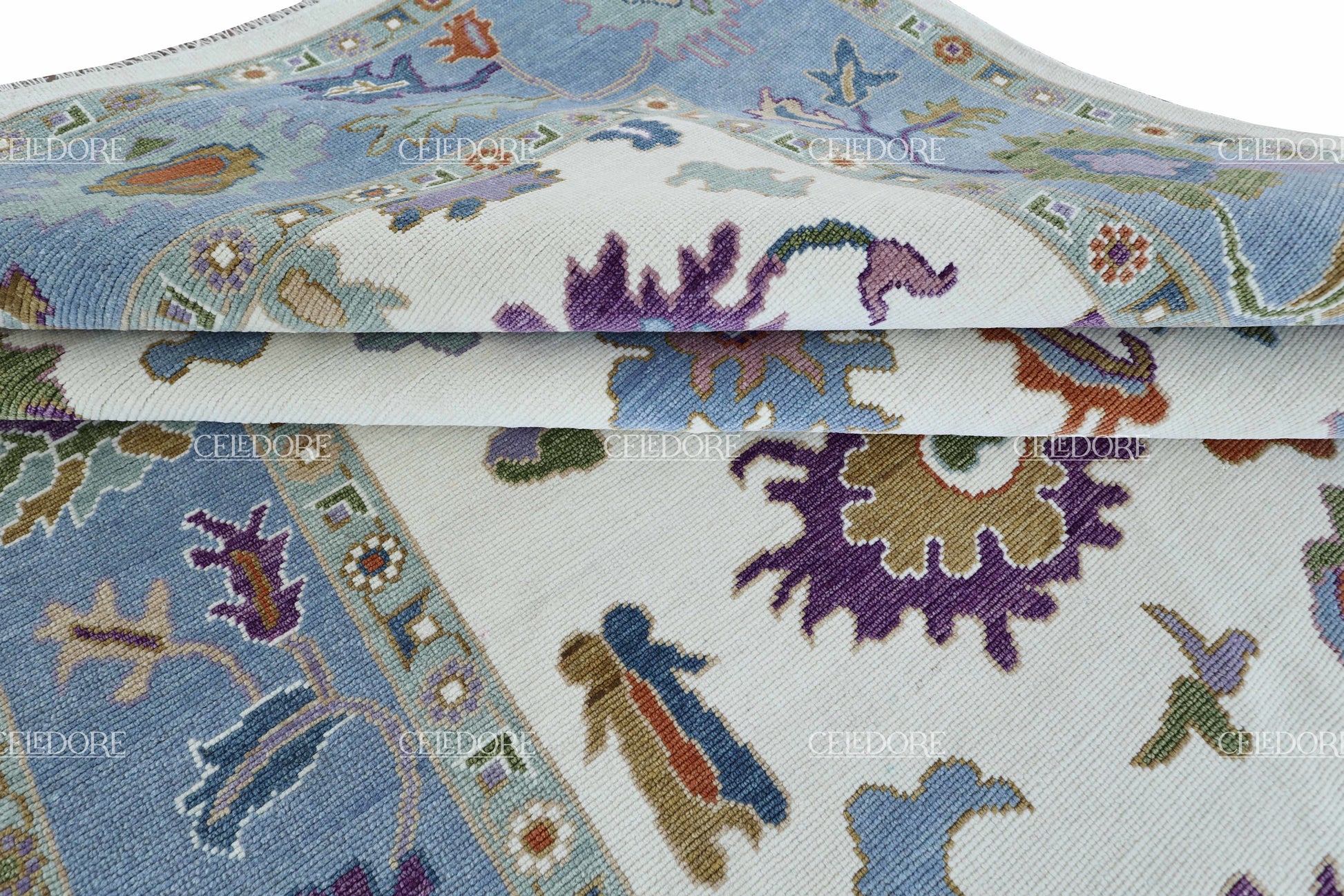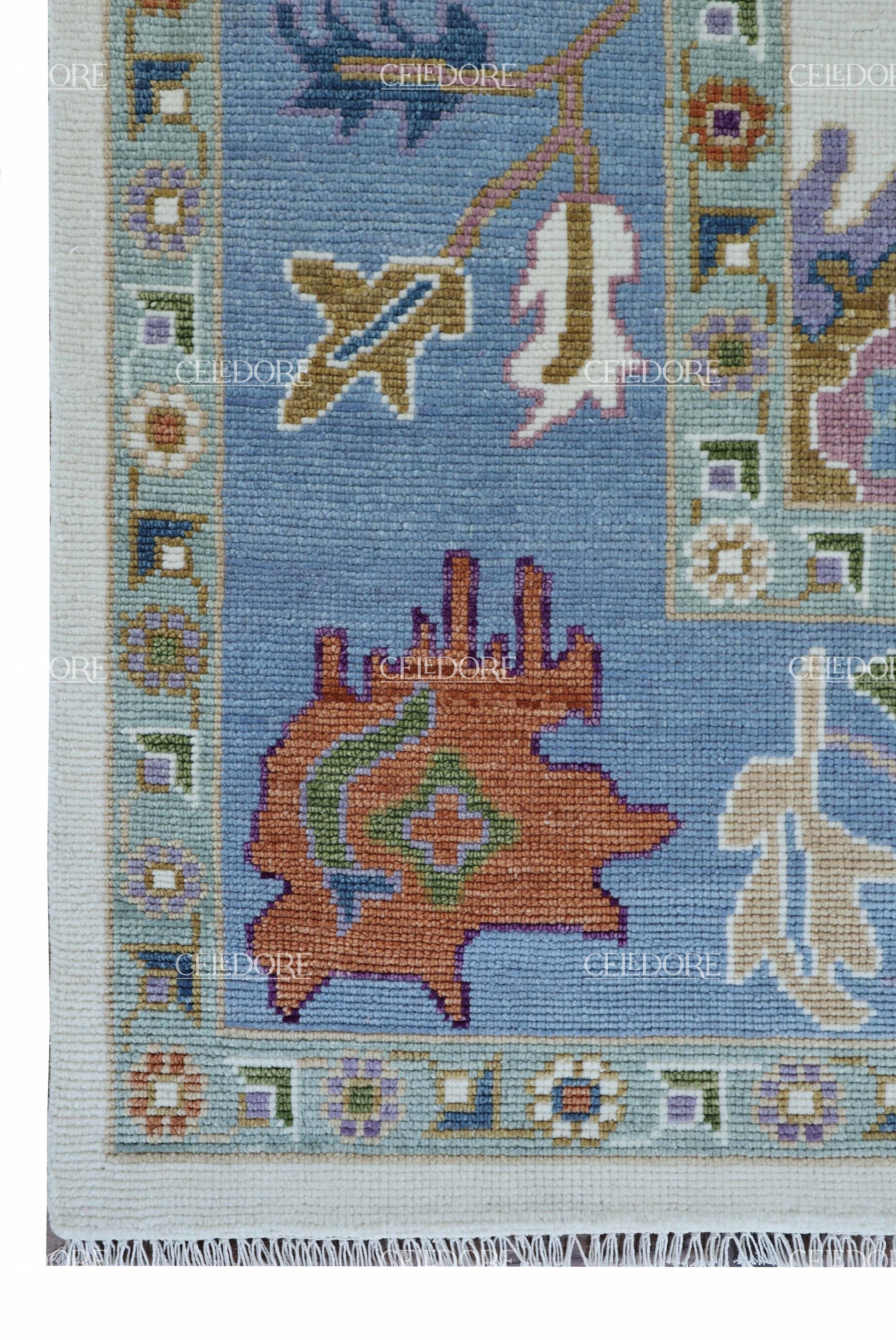 Hand-Knotted Oushak Rug, meticulously crafted with the finest quality wool. This rug embodies the rich tapestry of Indian craftsmanship, blending traditional design with a contemporary twist, reminiscent of the vibrant villages of India.