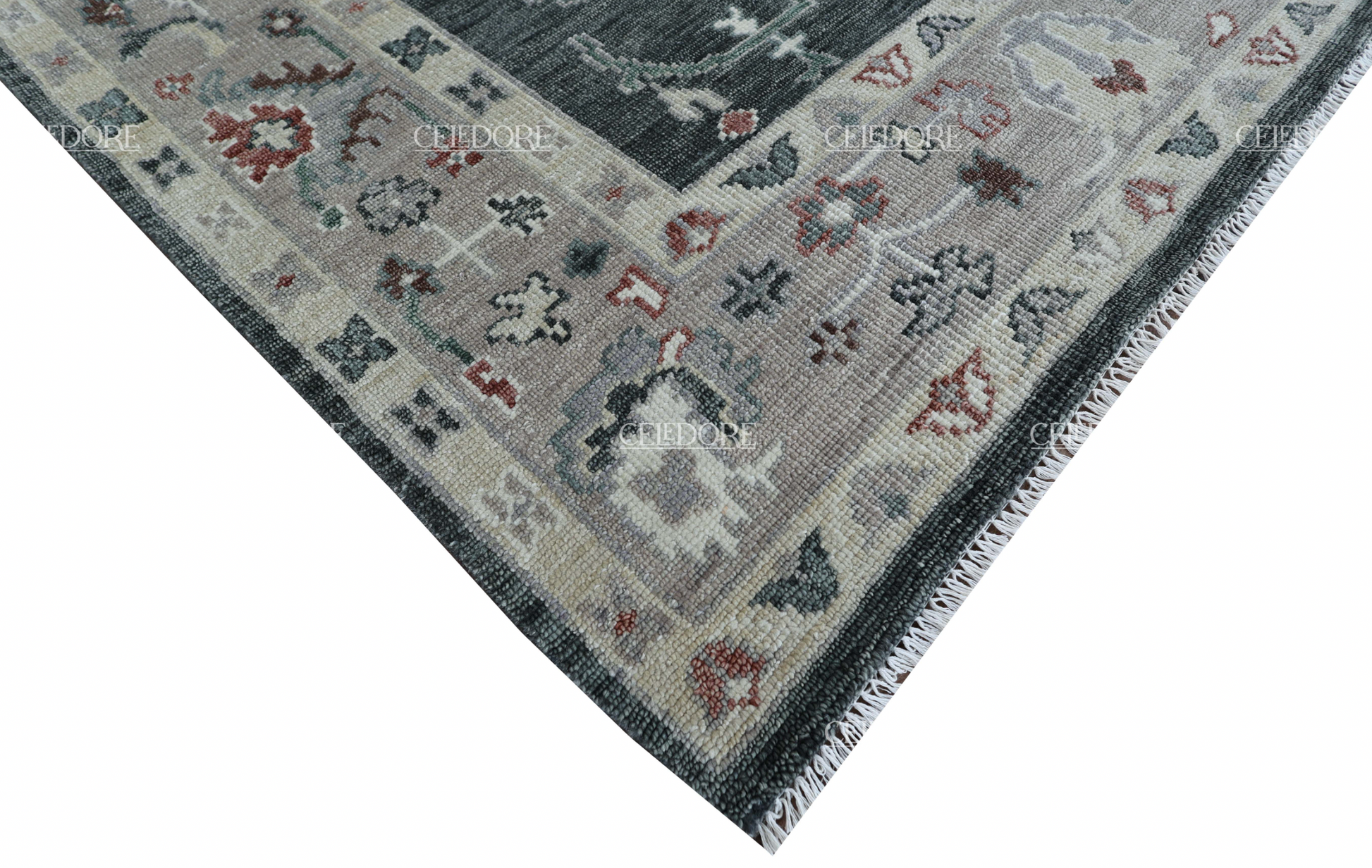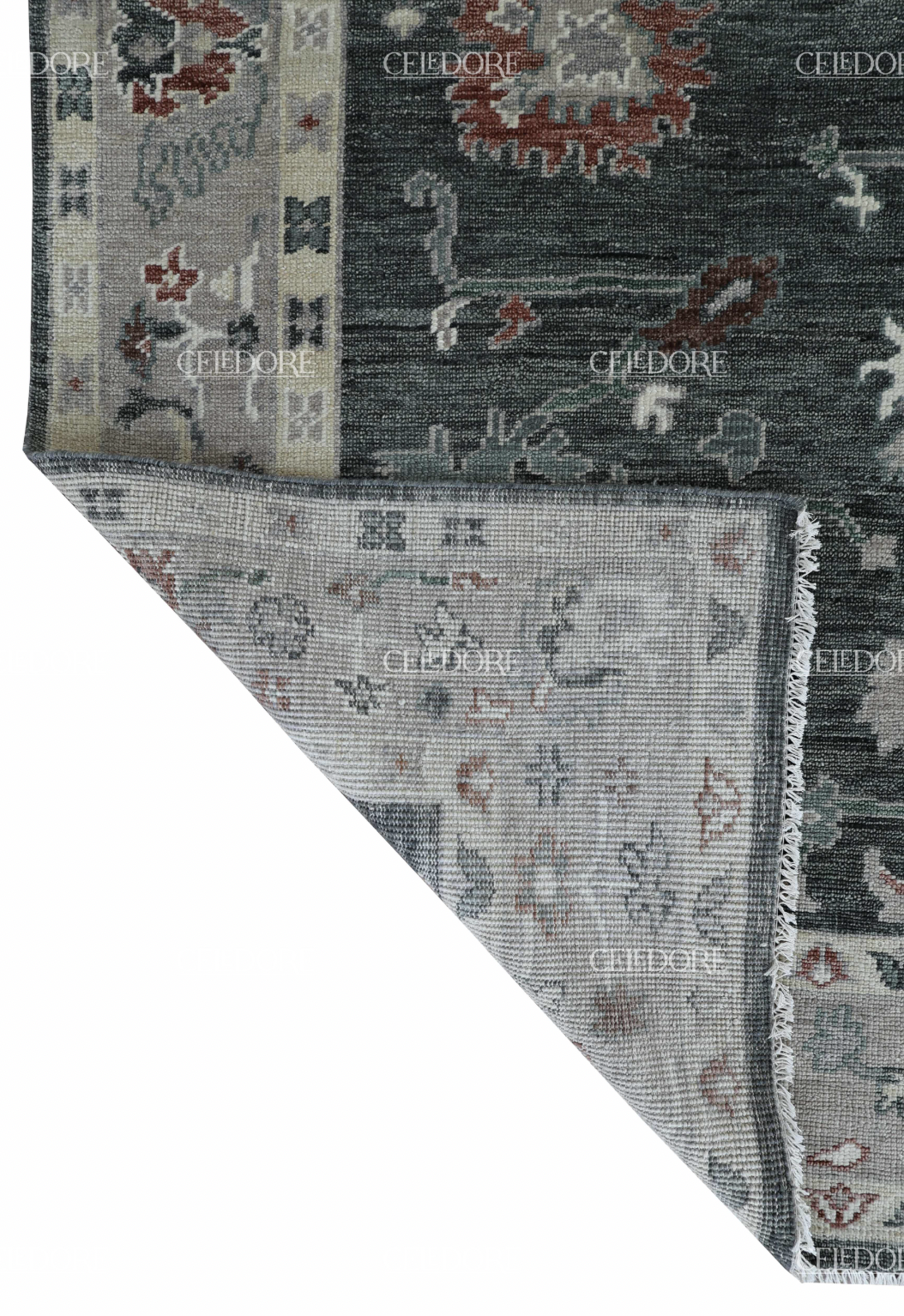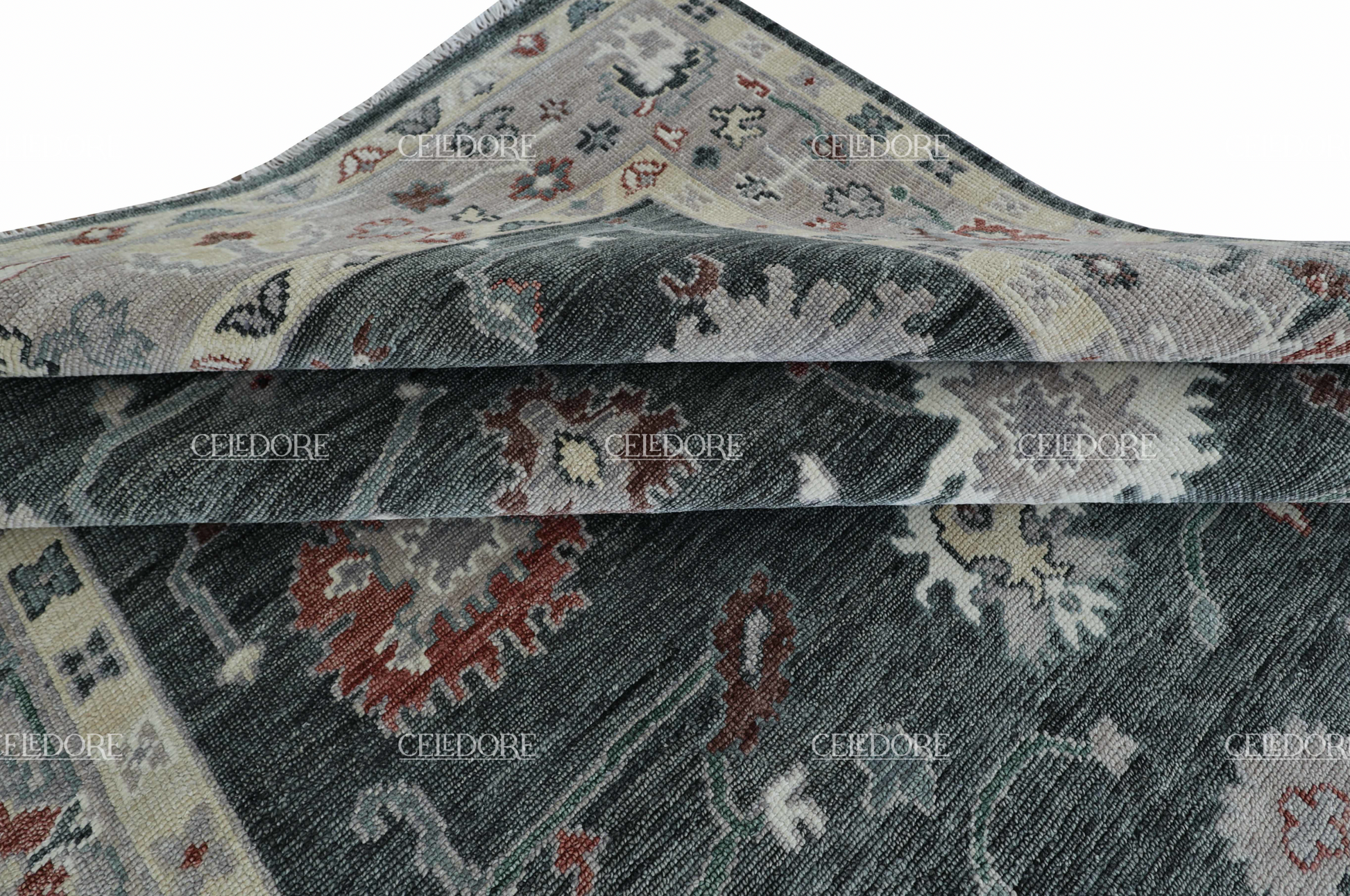Hand-Knotted Oushak Rug, meticulously crafted with the finest quality wool. This rug embodies the rich tapestry of Indian craftsmanship, blending traditional design with a contemporary twist, reminiscent of the vibrant villages of India.