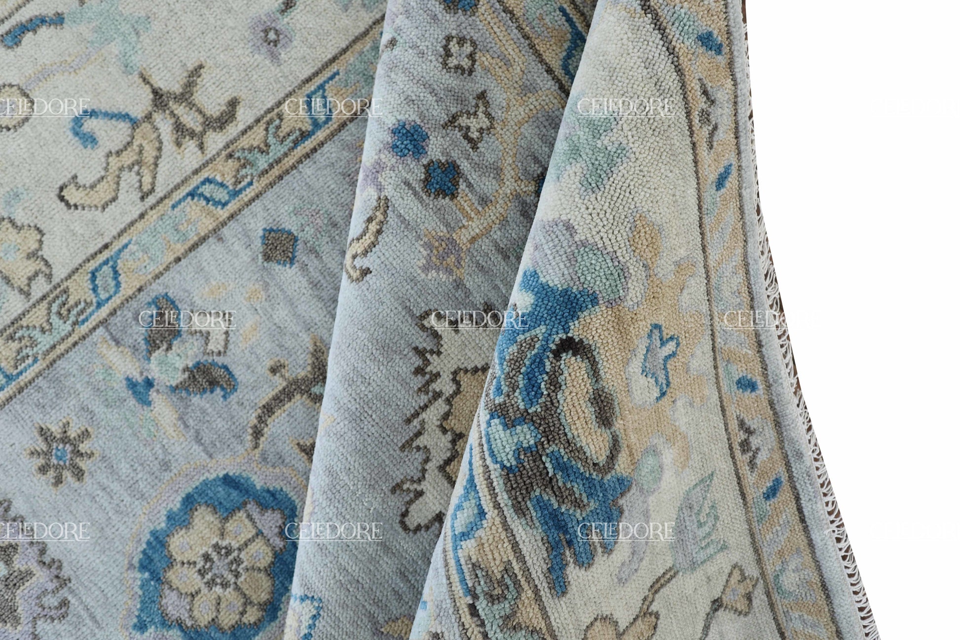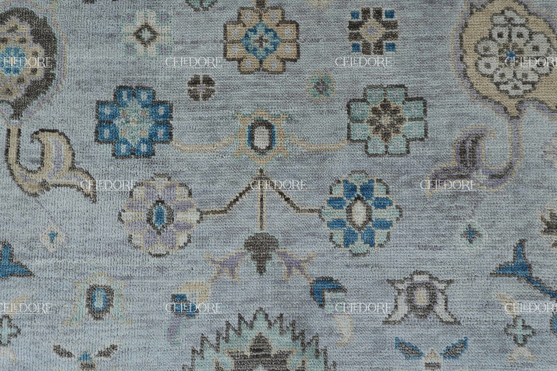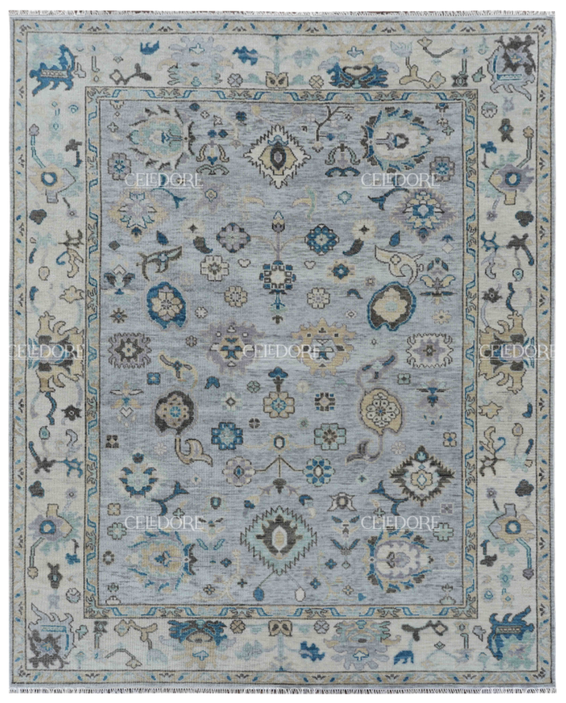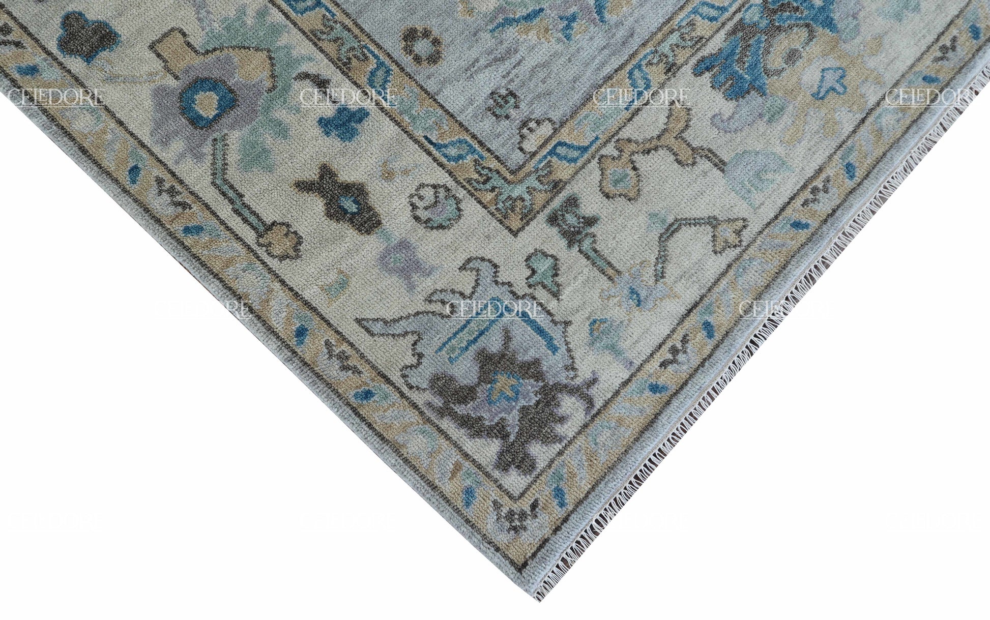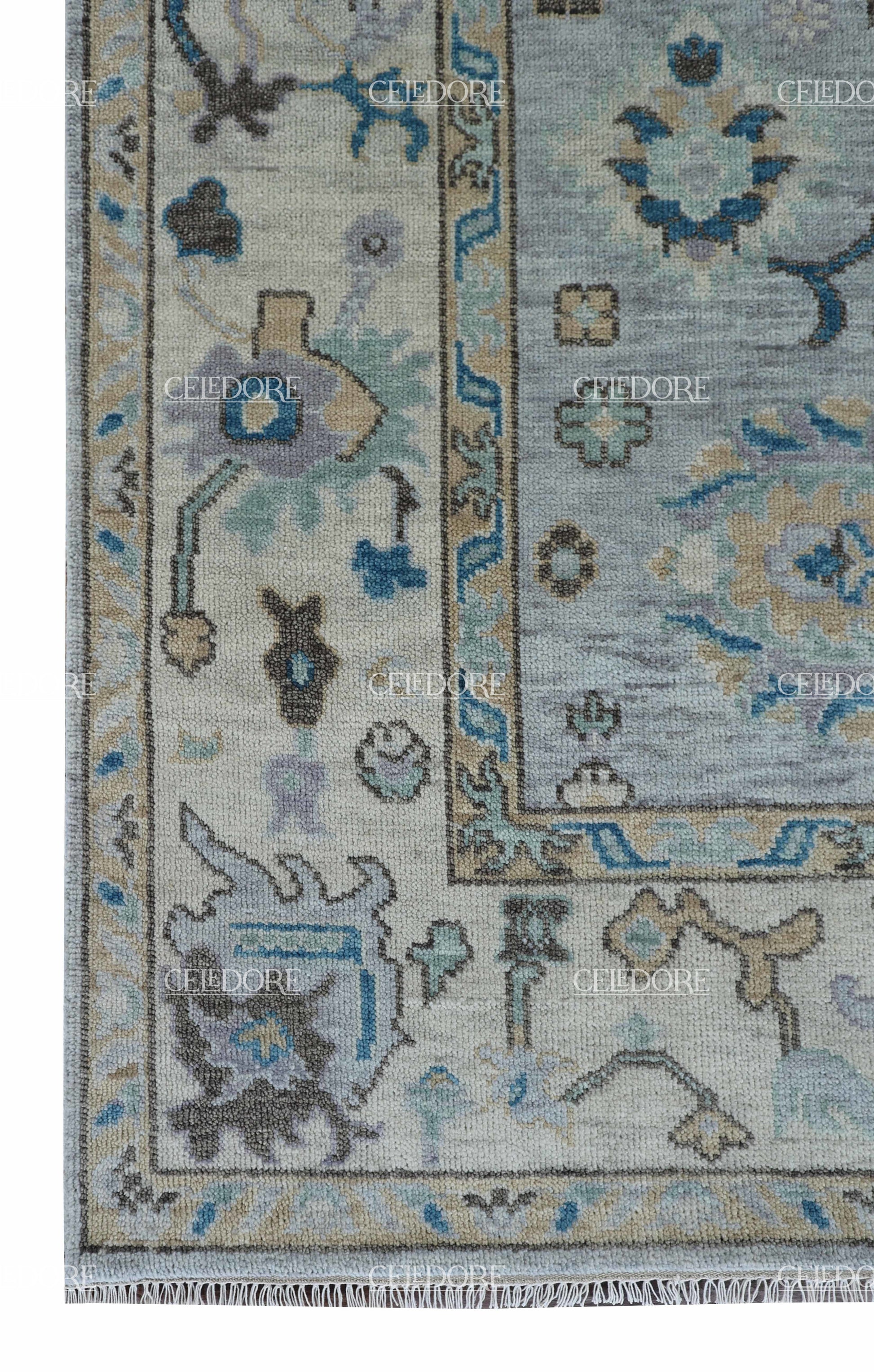 Hand-Knotted Oushak Rug, meticulously crafted with the finest quality wool. This rug embodies the rich tapestry of Indian craftsmanship, blending traditional design with a contemporary twist, reminiscent of the vibrant villages of India.