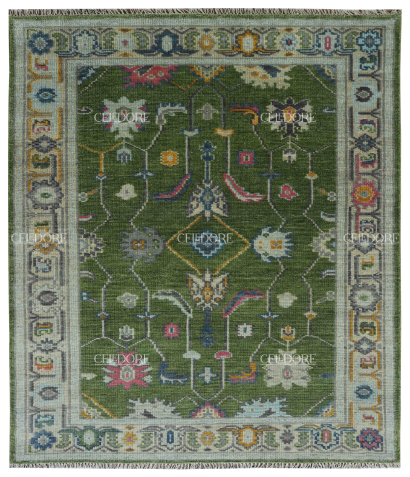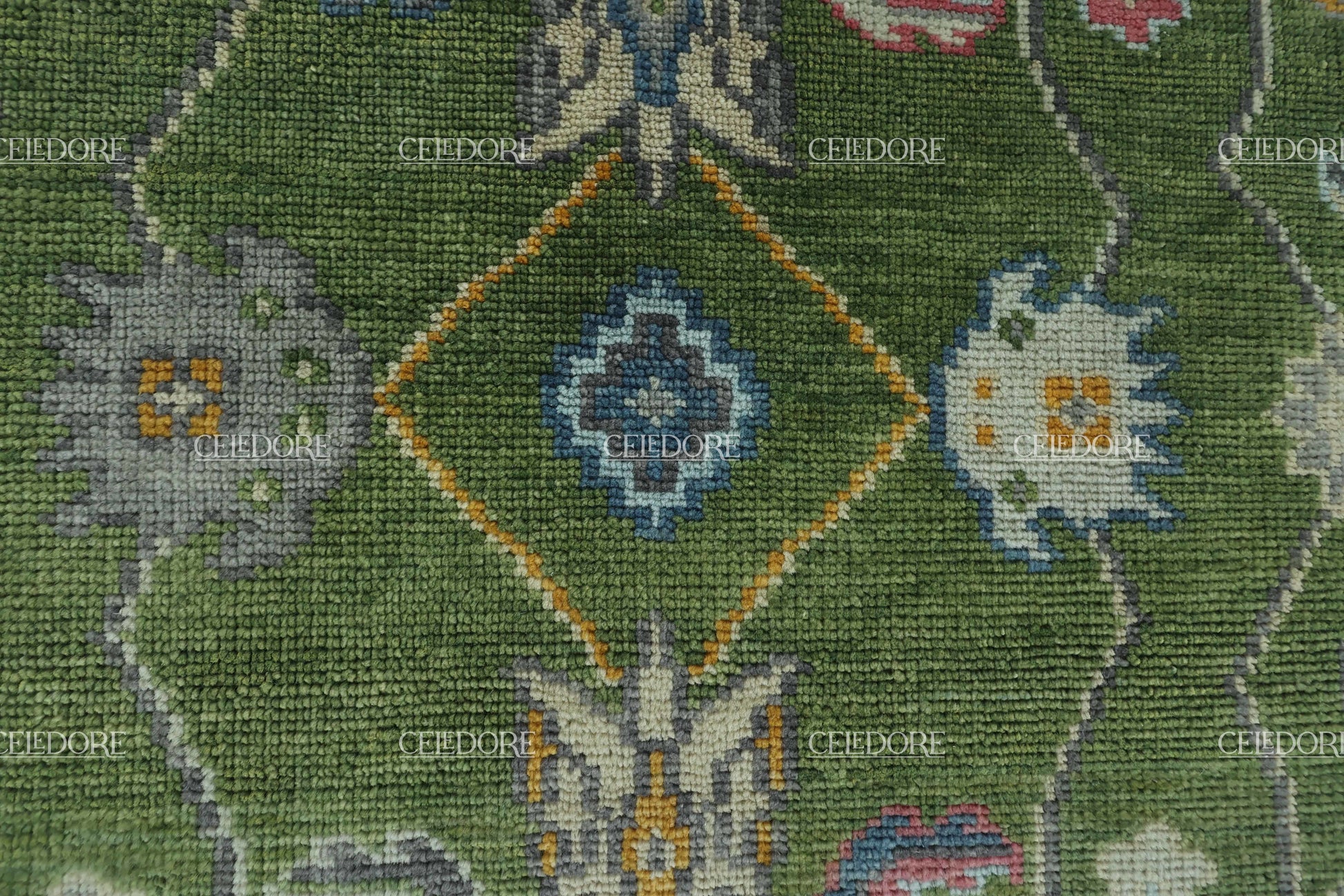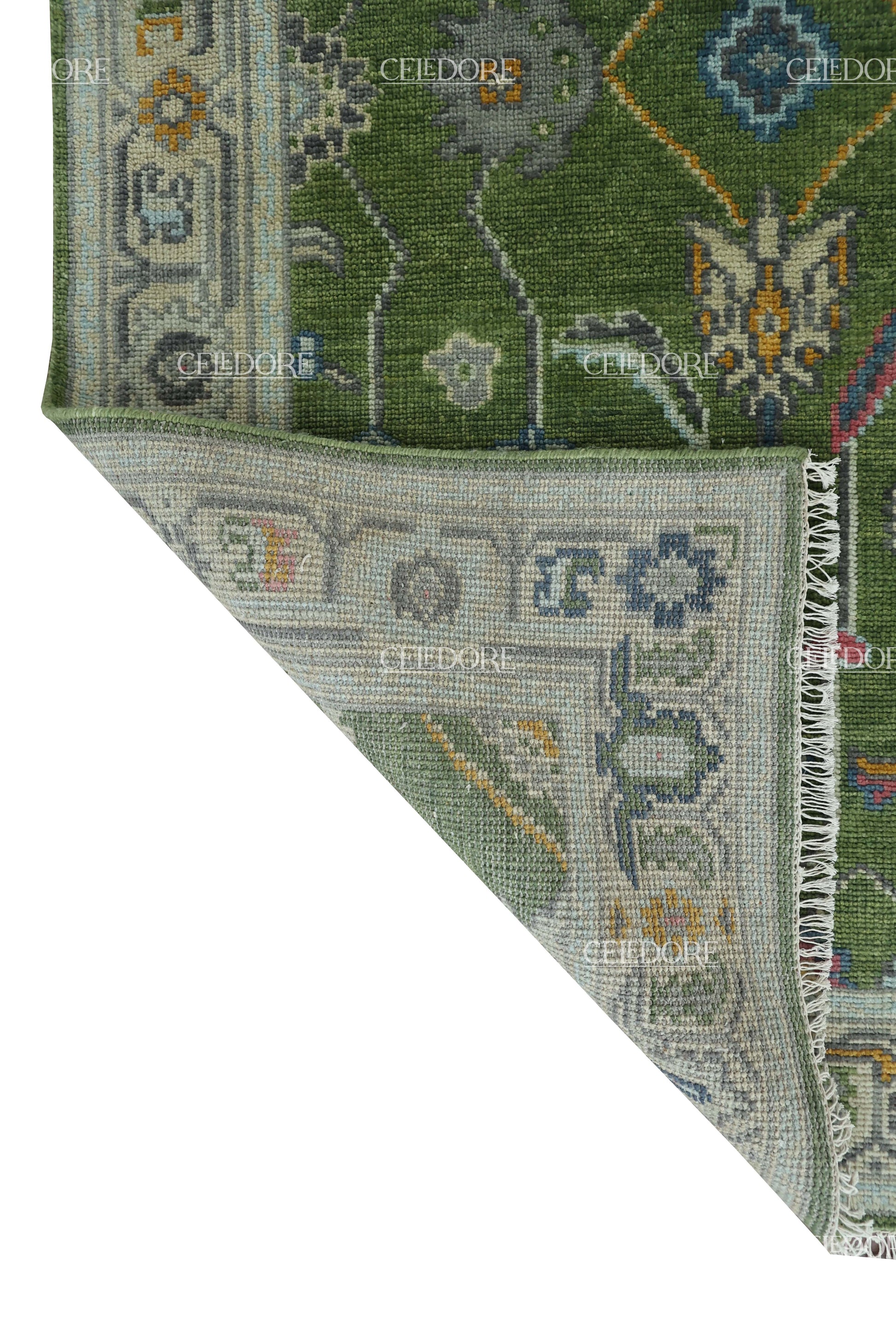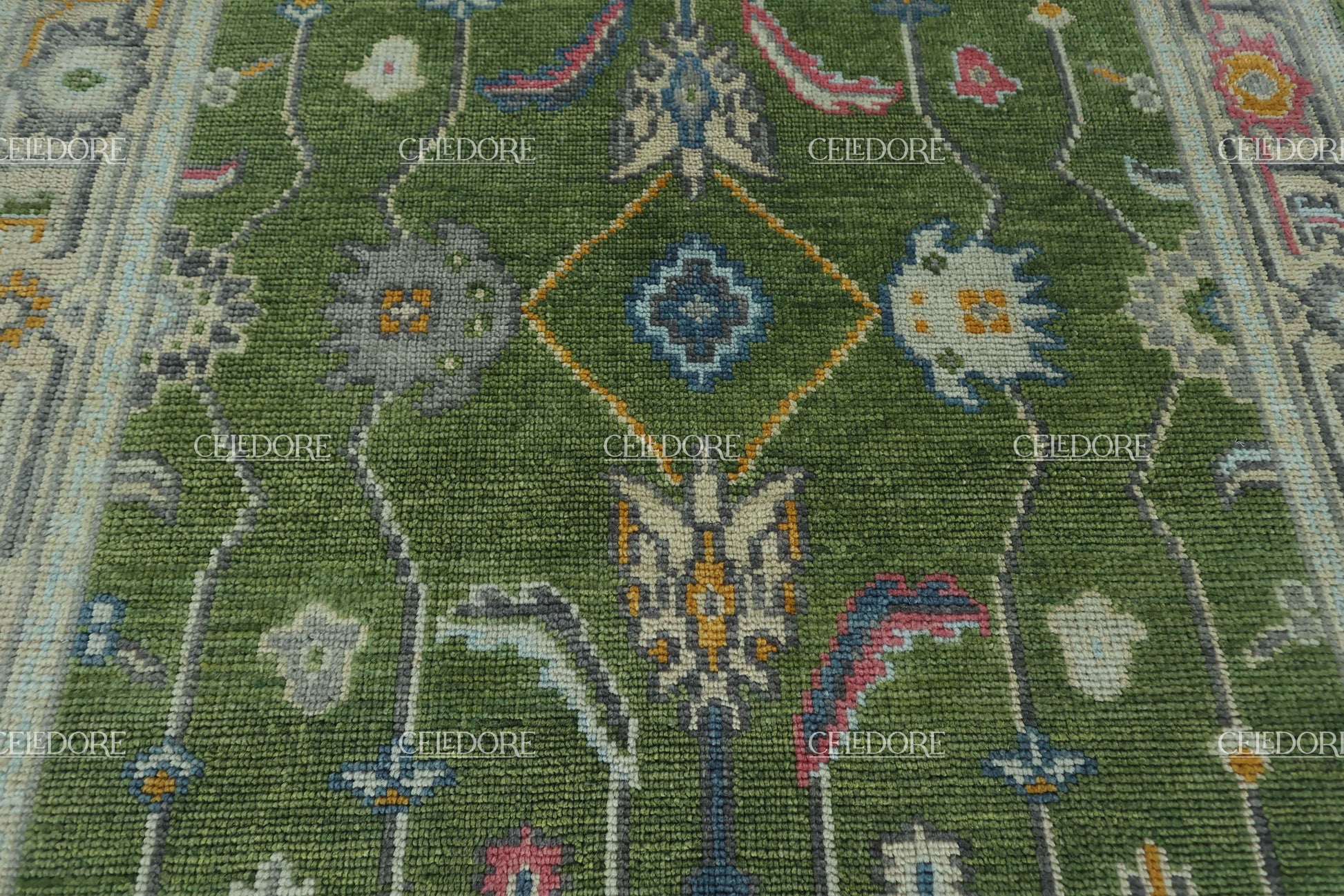 Hand-Knotted Oushak Rug, meticulously crafted with the finest quality wool. This rug embodies the rich tapestry of Indian craftsmanship, blending traditional design with a contemporary twist, reminiscent of the vibrant villages of India.
