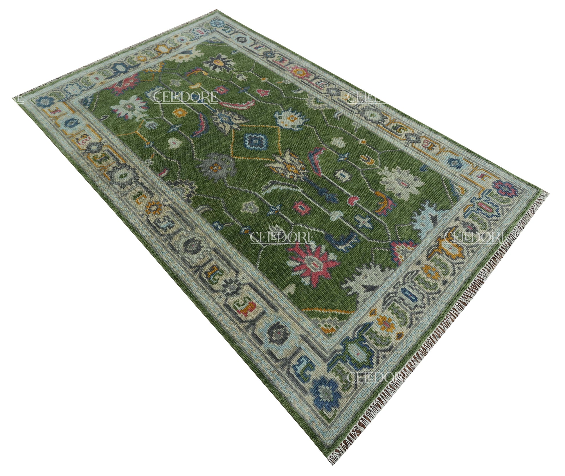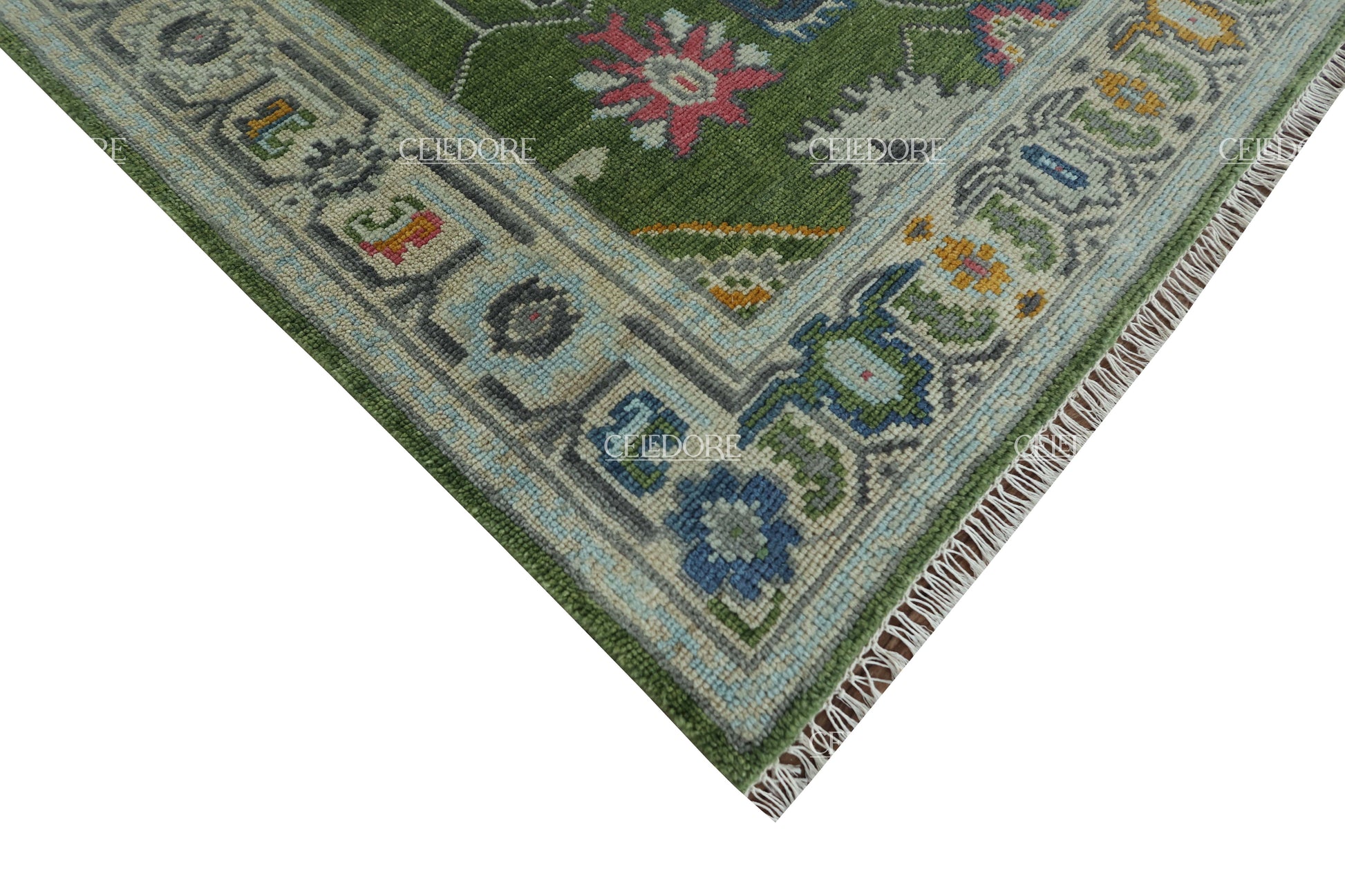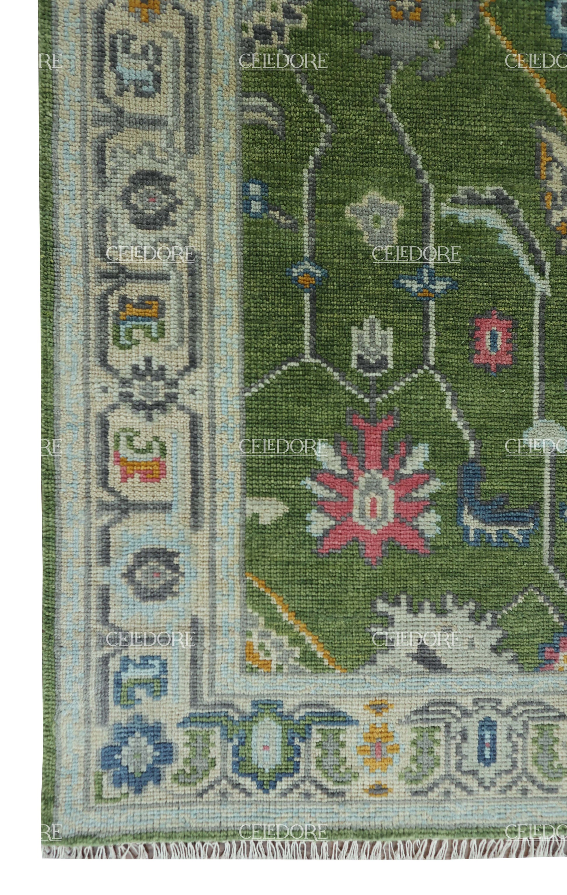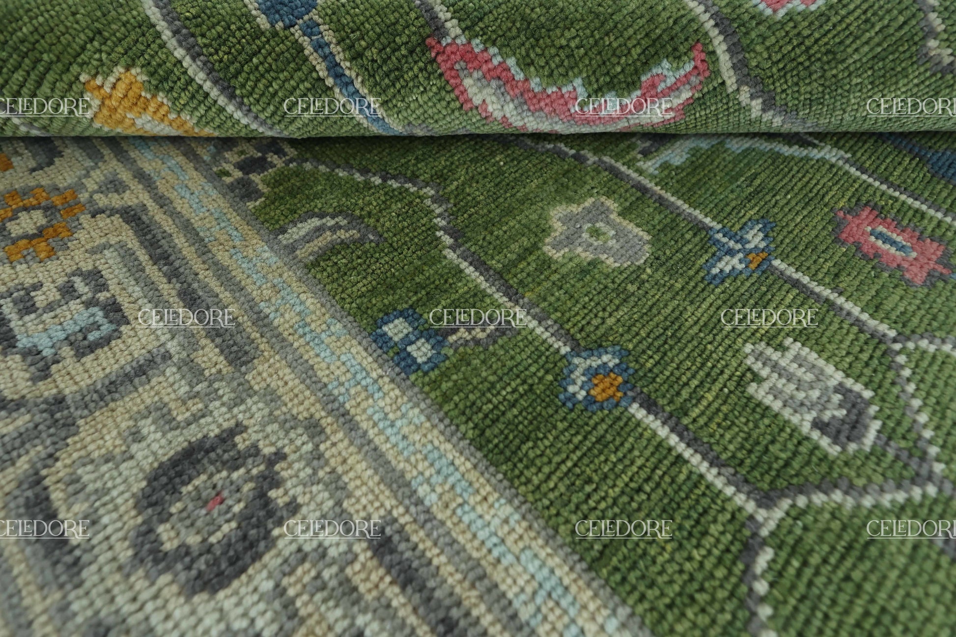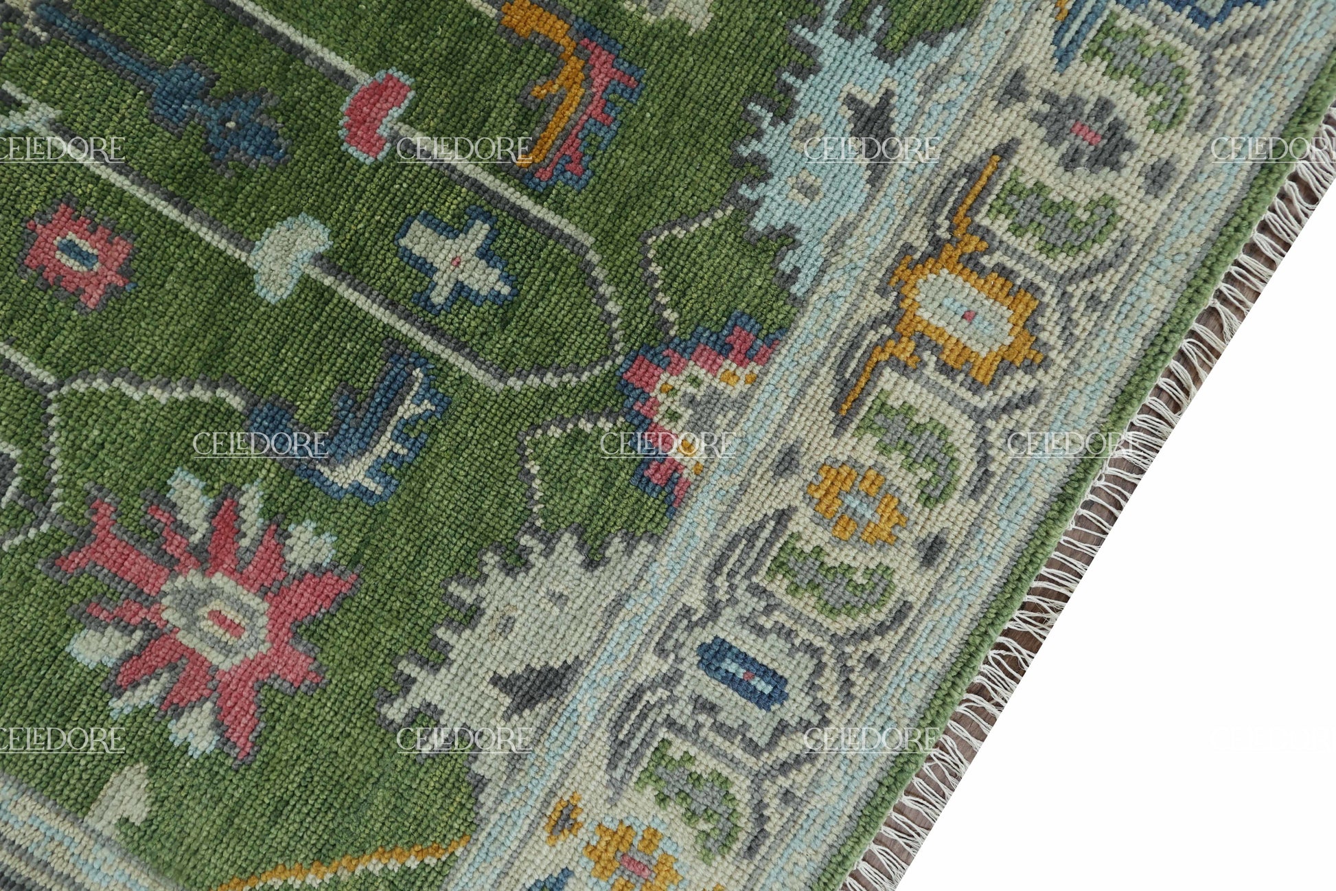 Hand-Knotted Oushak Rug, meticulously crafted with the finest quality wool. This rug embodies the rich tapestry of Indian craftsmanship, blending traditional design with a contemporary twist, reminiscent of the vibrant villages of India.